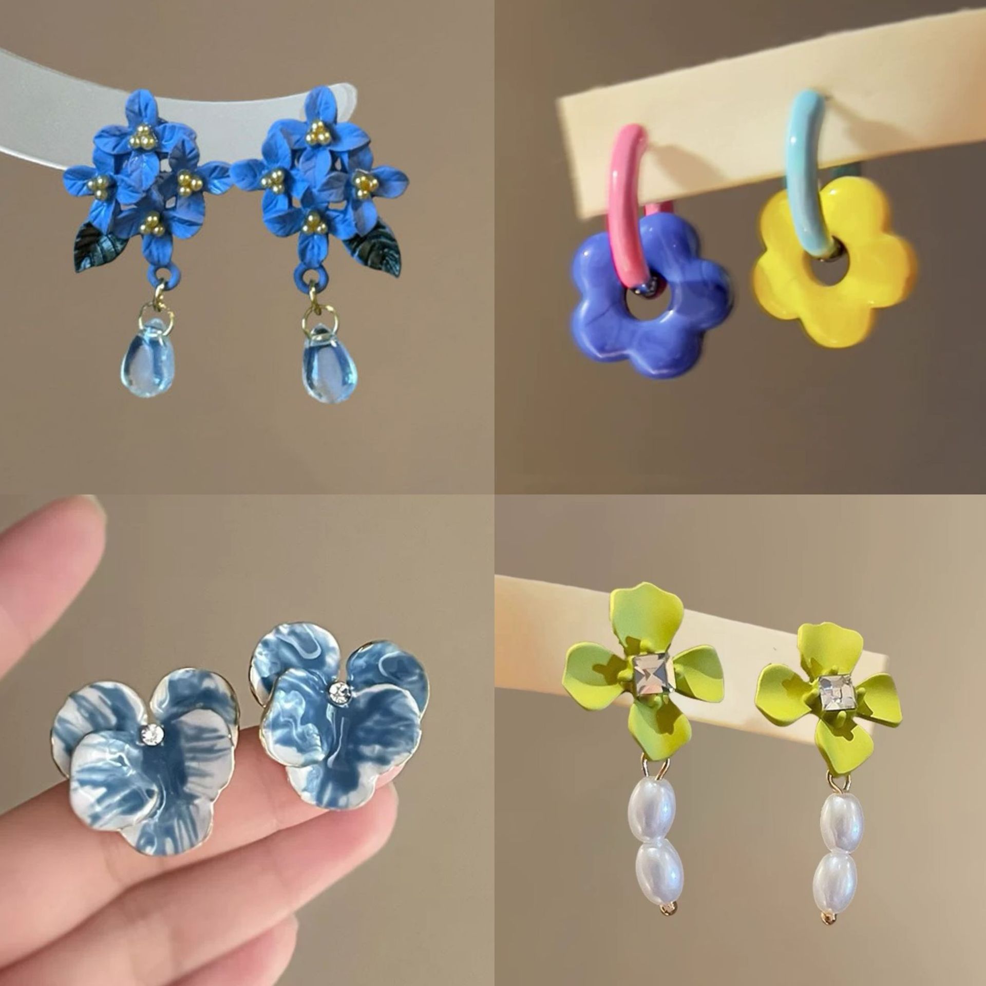 夏日多巴胺饰品银针花朵耳环女甜美小清新耳钉小众高级感耳饰批发