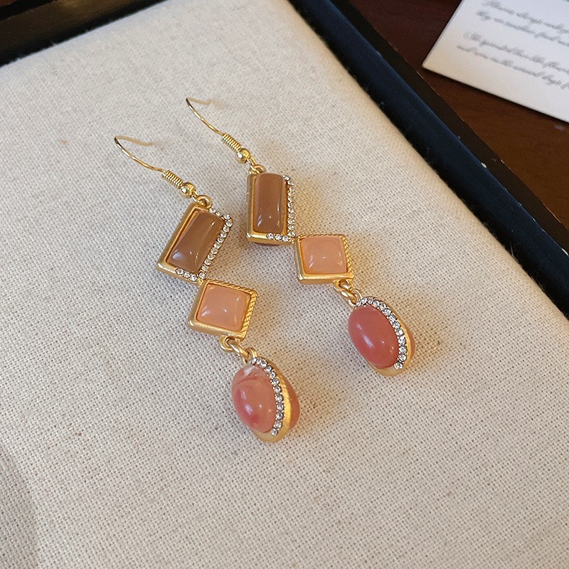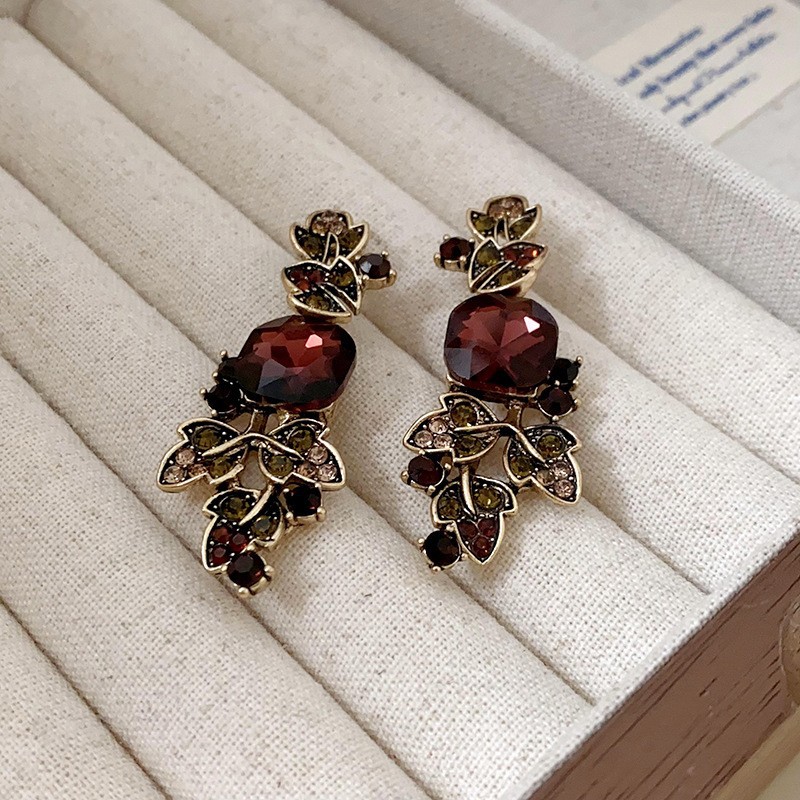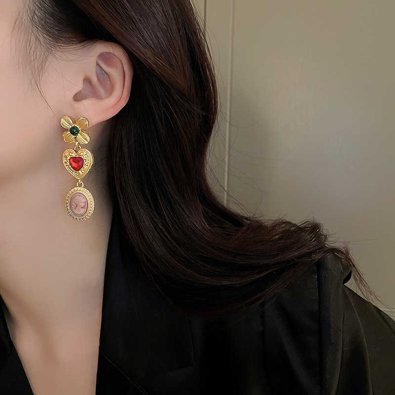 中古银针镶钻爱心花朵耳环女时尚个性复古耳钉百搭气质设计感耳饰