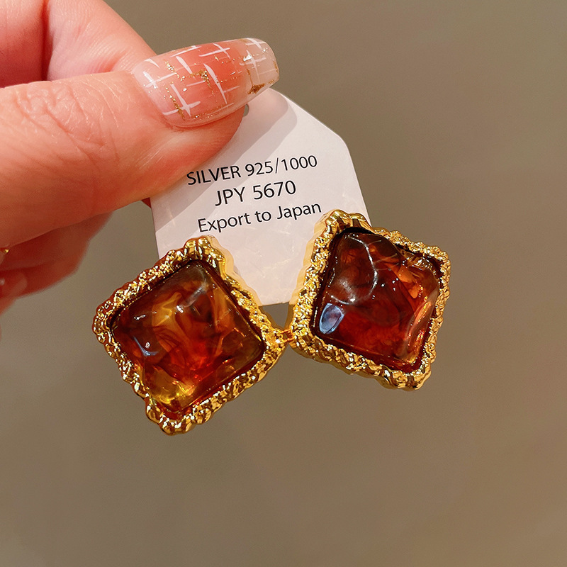 美拉德银针虎眼石款耳环港风复古高级感耳钉小众百搭气质耳饰批发