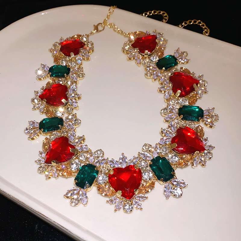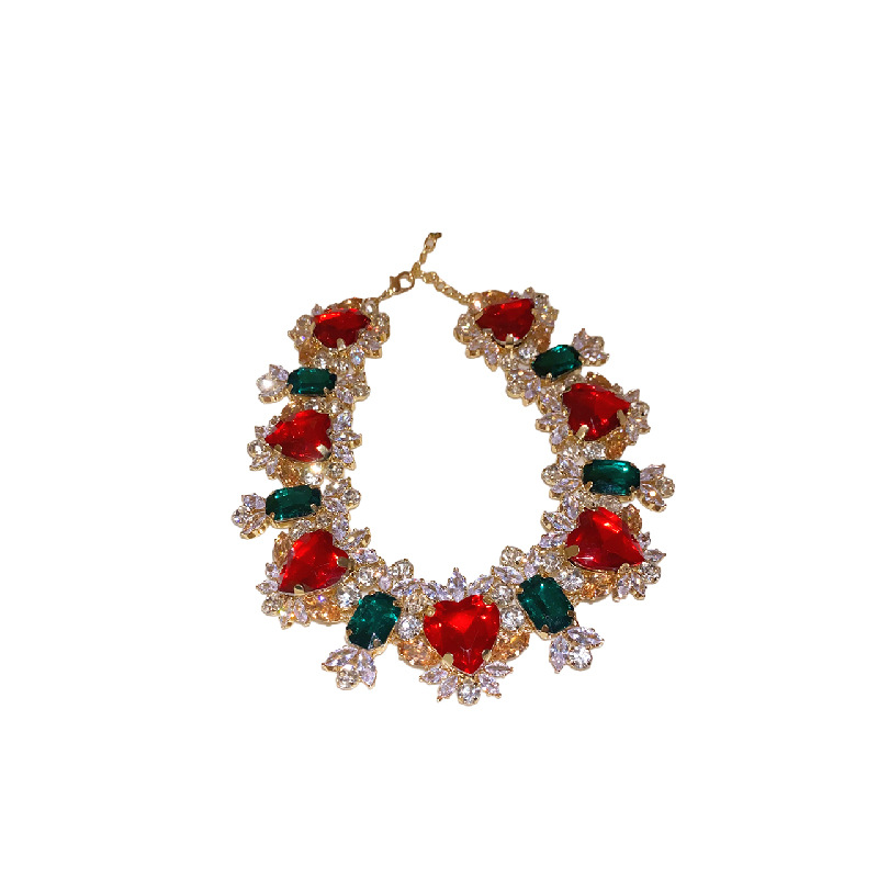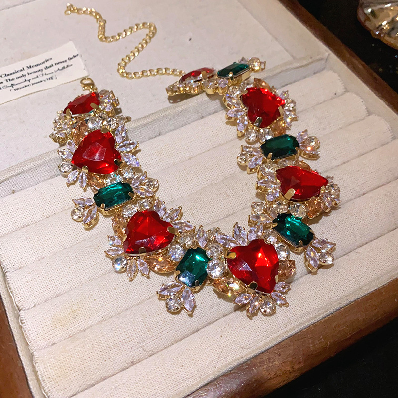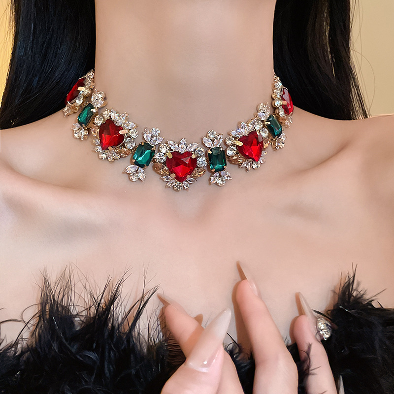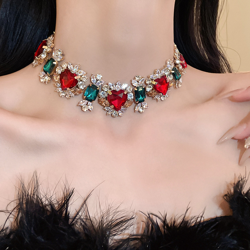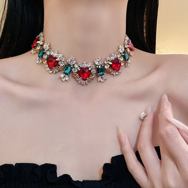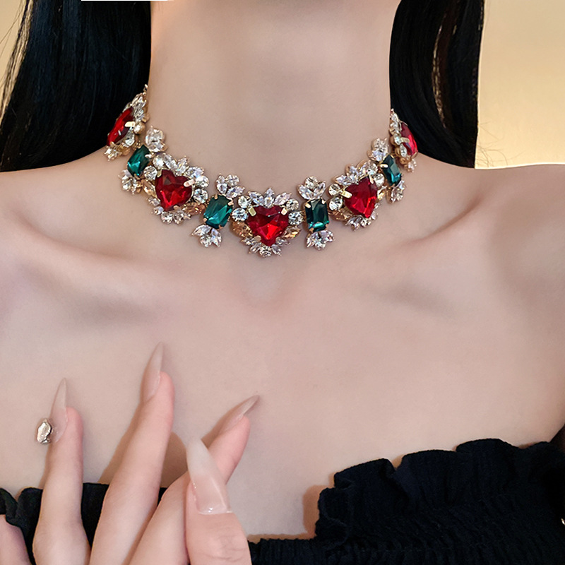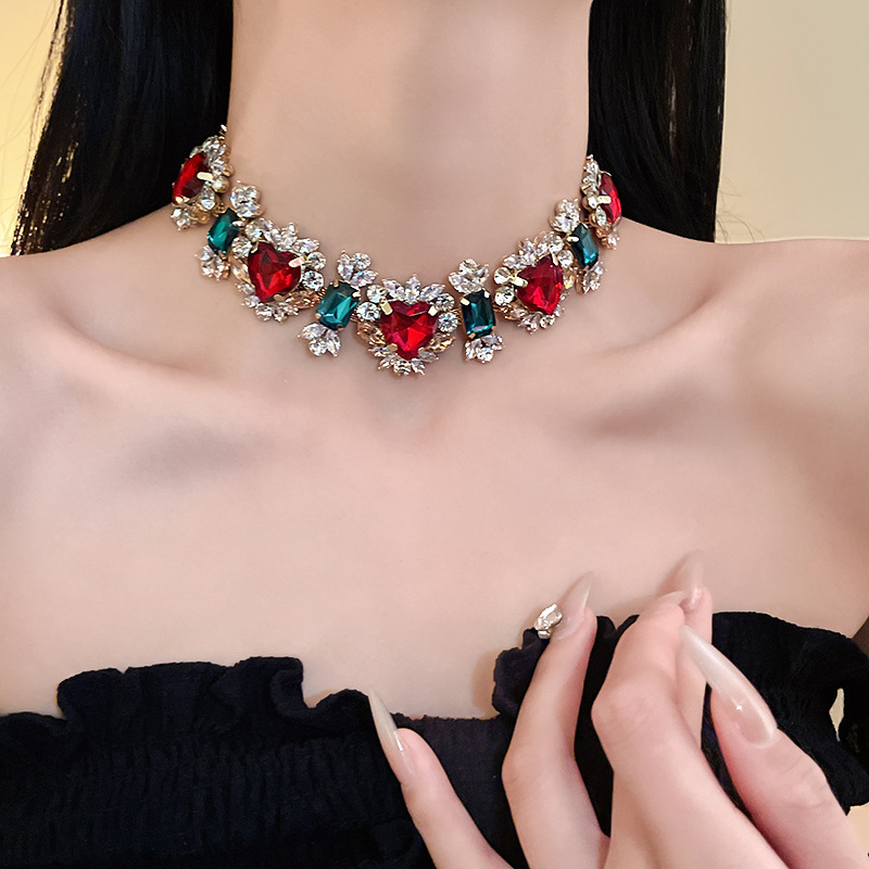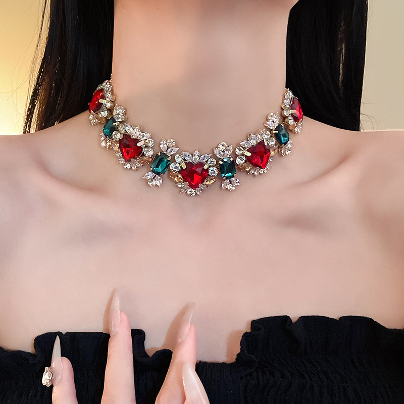 锆石爱心拼接项链欧美跨境高级感复古锁骨链百搭新款独特饰品批发