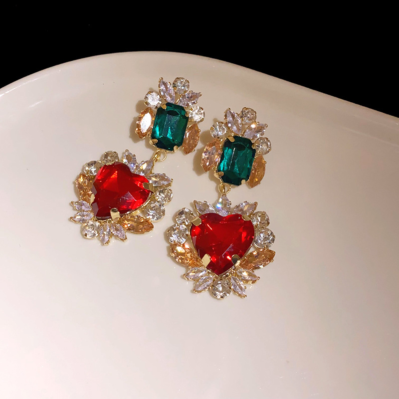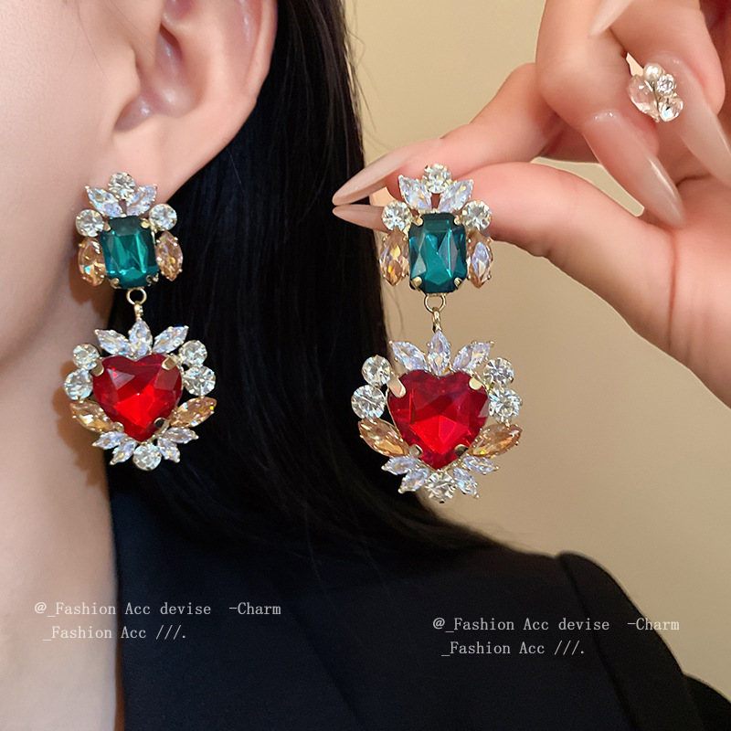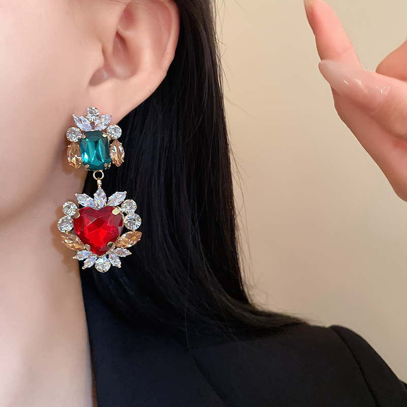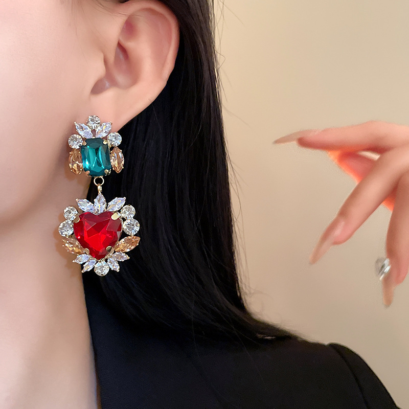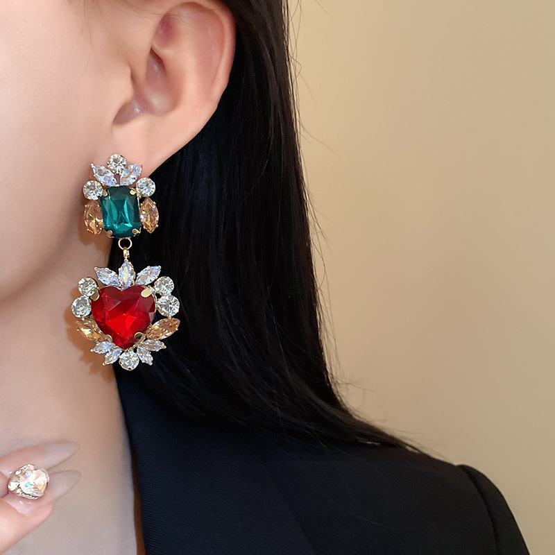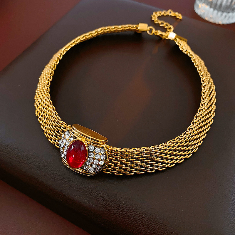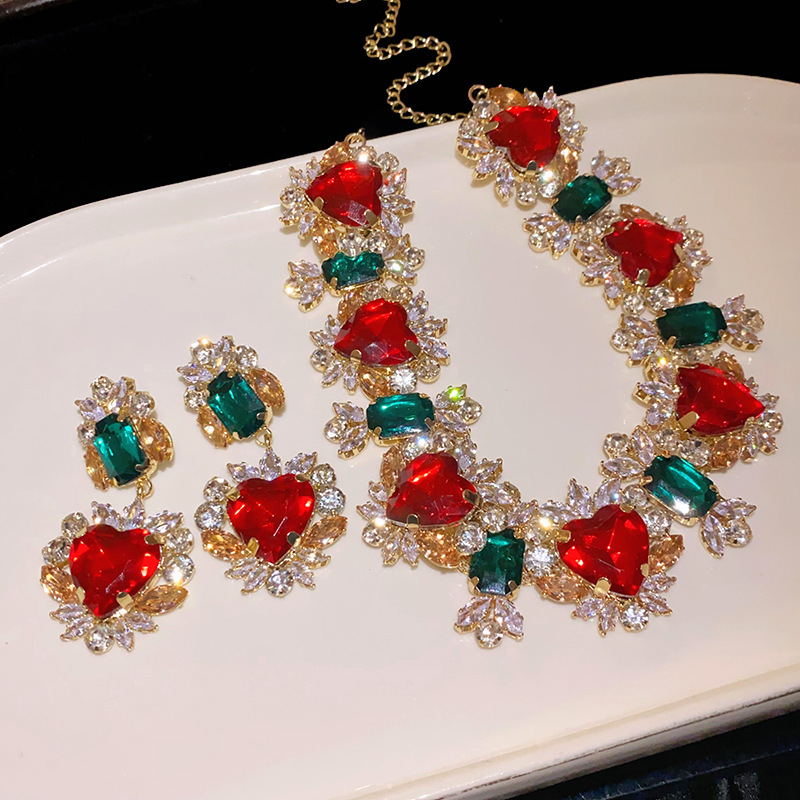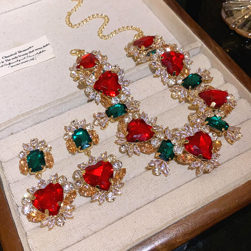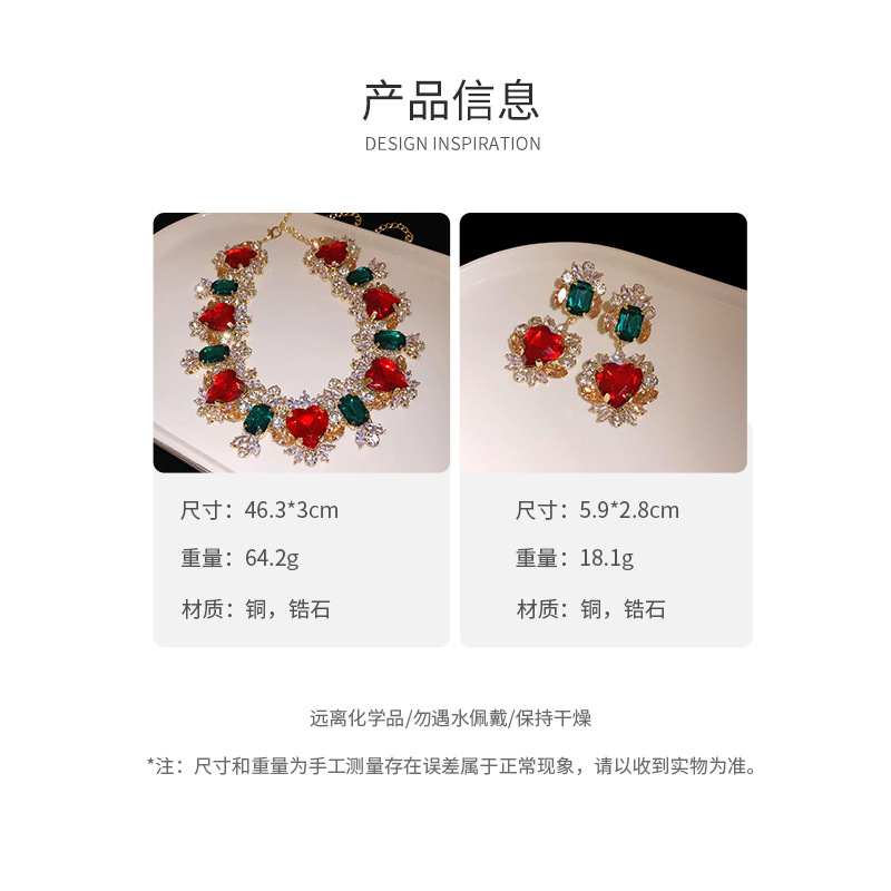 锆石爱心拼接项链欧美跨境高级感复古锁骨链百搭新款独特饰品批发