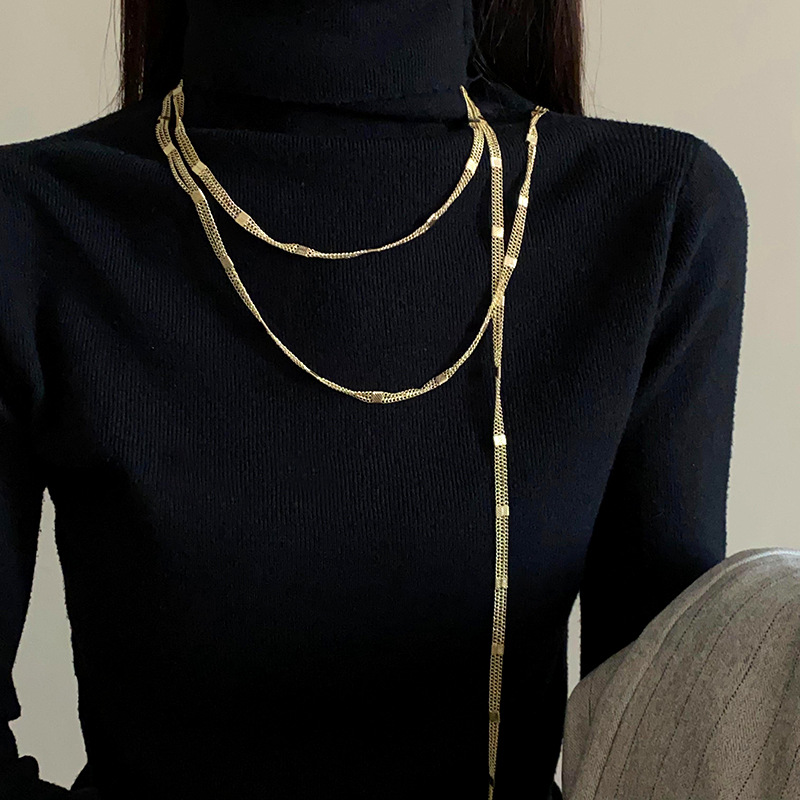 欧美跨境链条长款项链简约个性冷淡风毛衣链高级感通勤项饰女批发