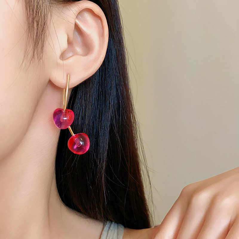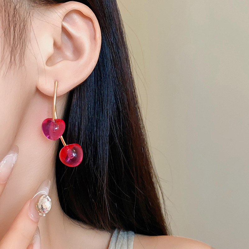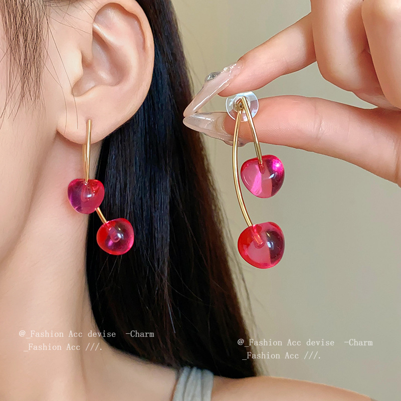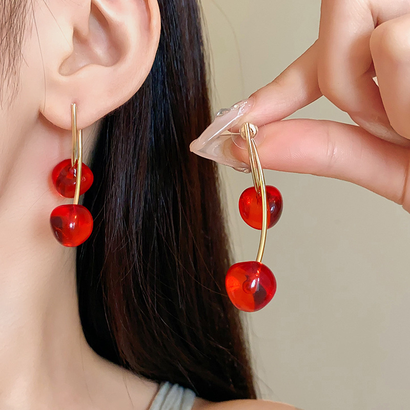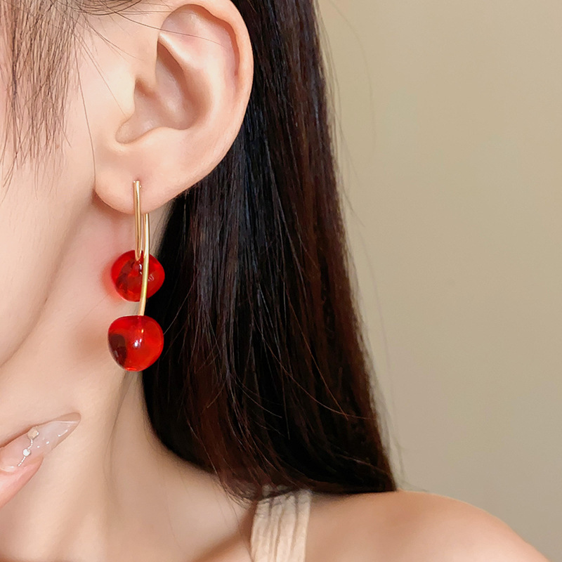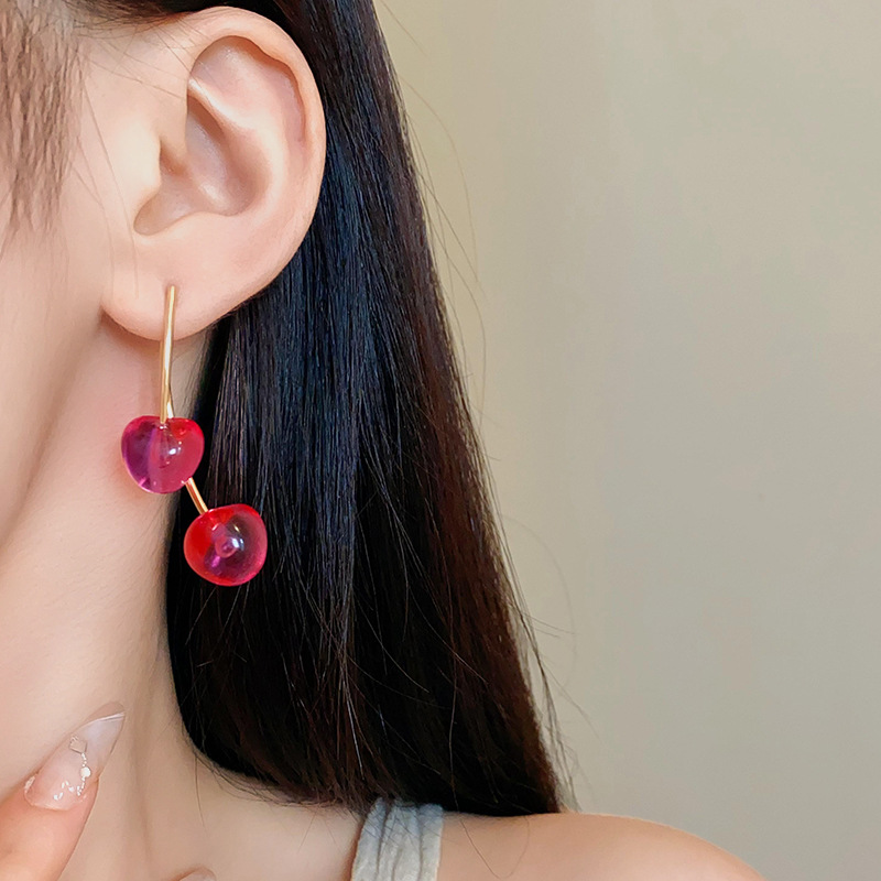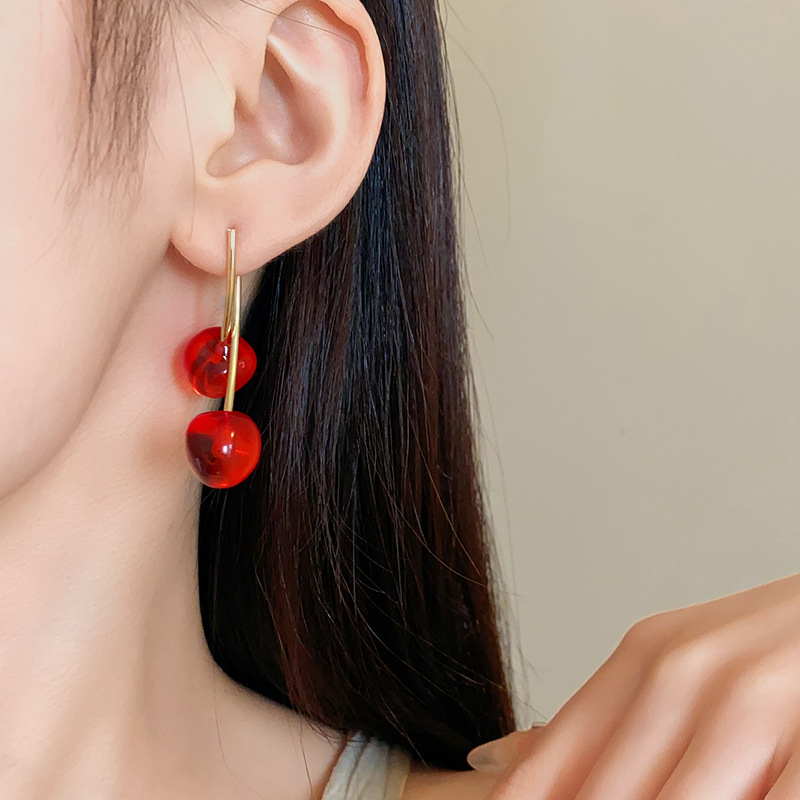 银针樱桃树脂耳环韩系简约设计感耳坠夏季高级感通勤新款耳饰批发