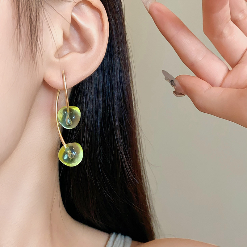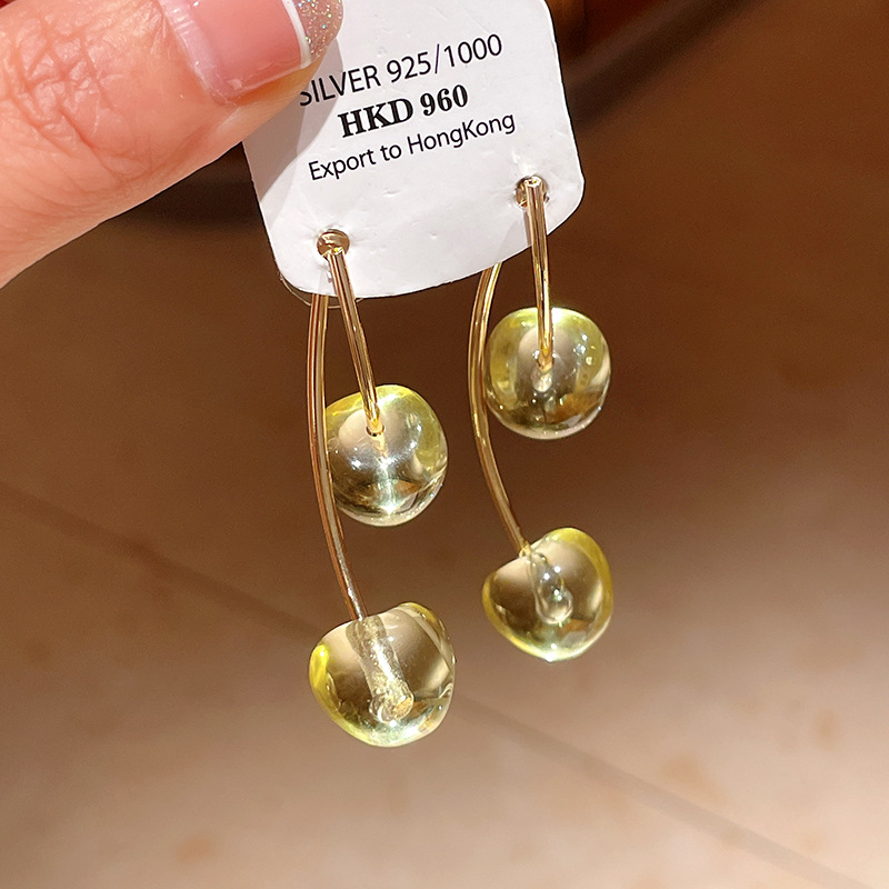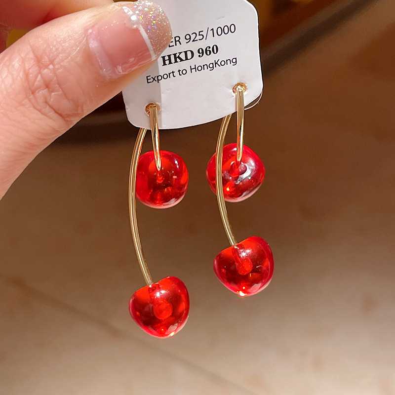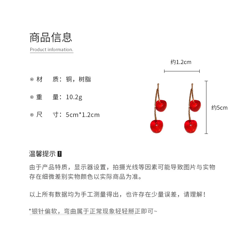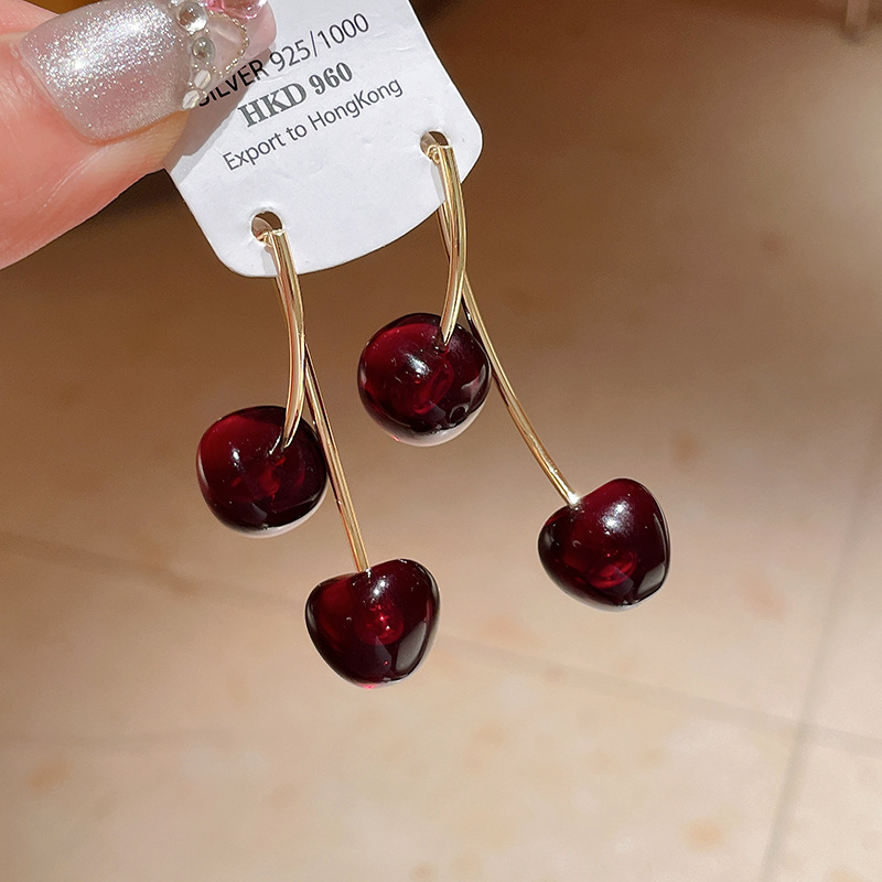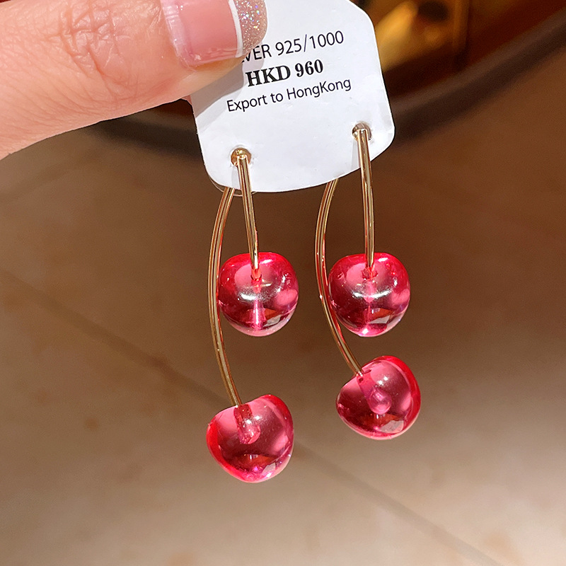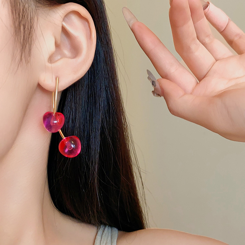 银针樱桃树脂耳环韩系简约设计感耳坠夏季高级感通勤新款耳饰批发