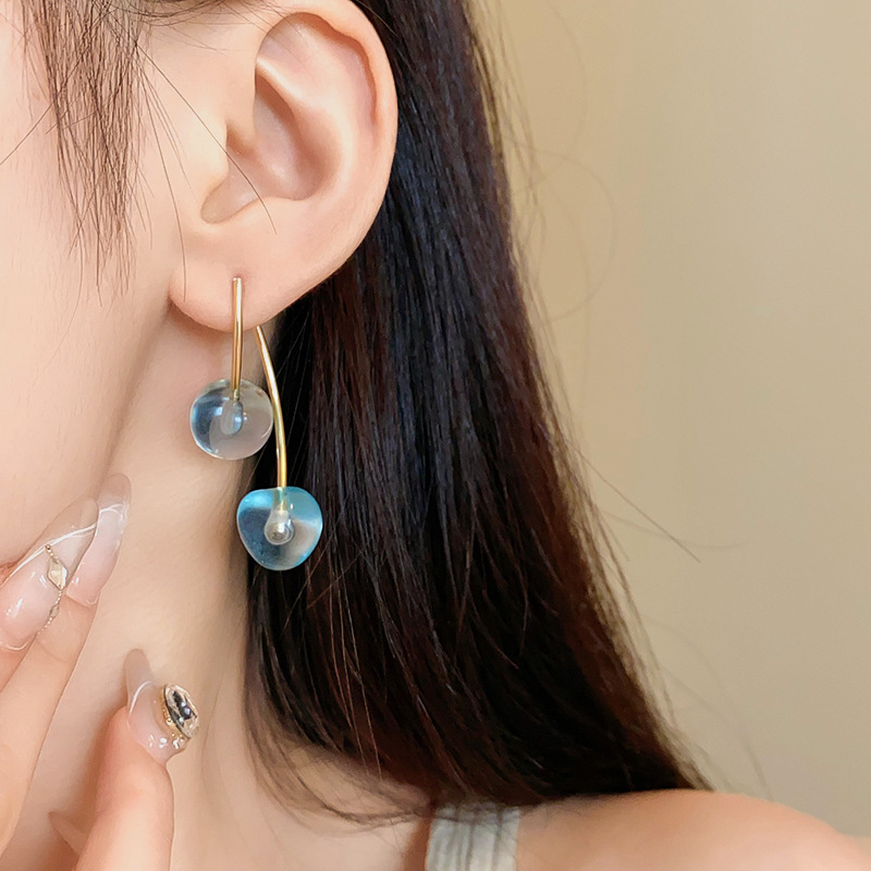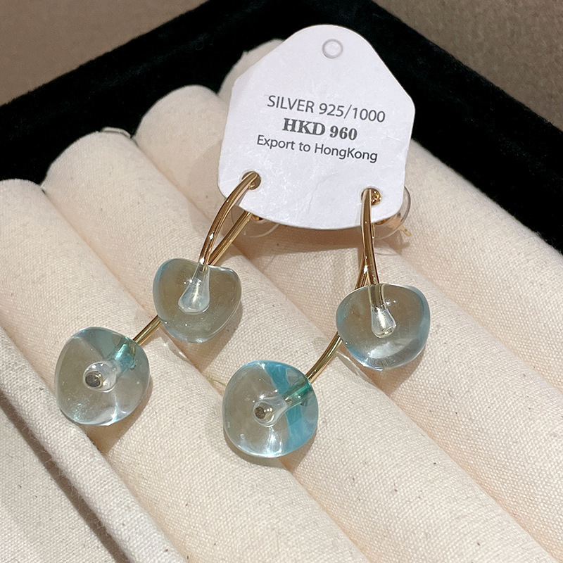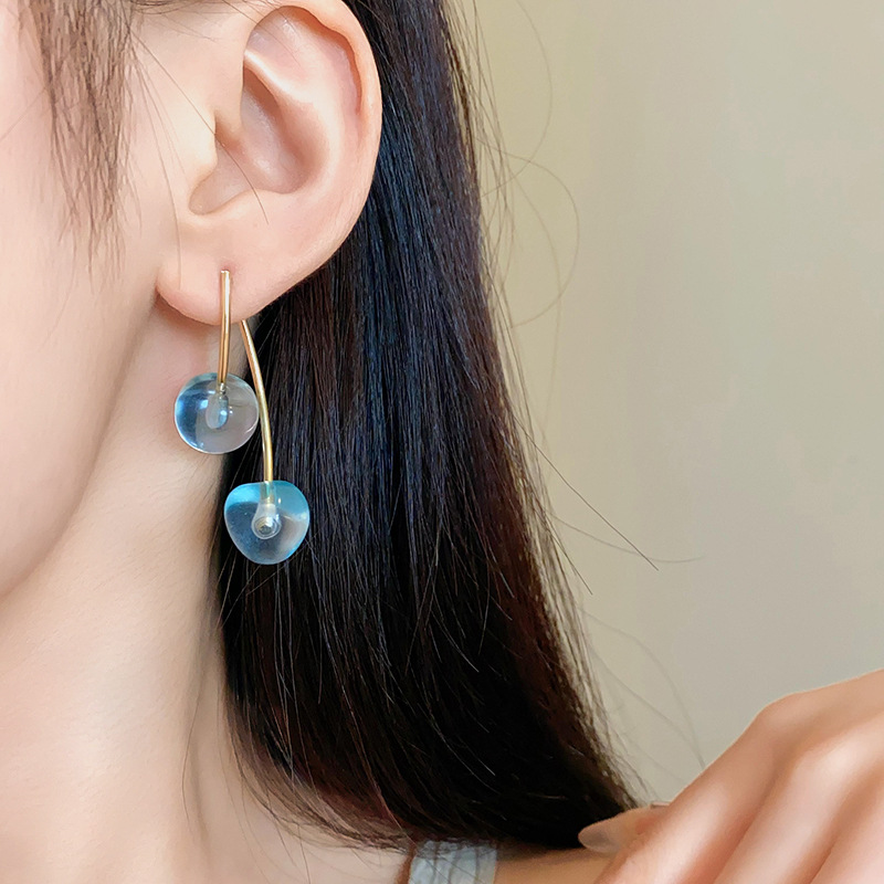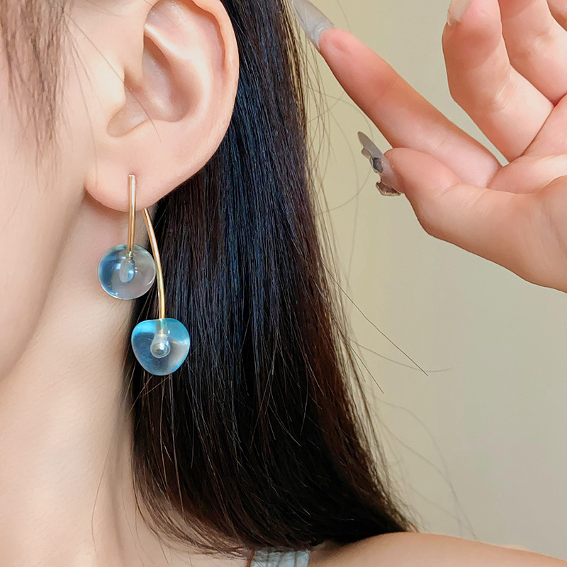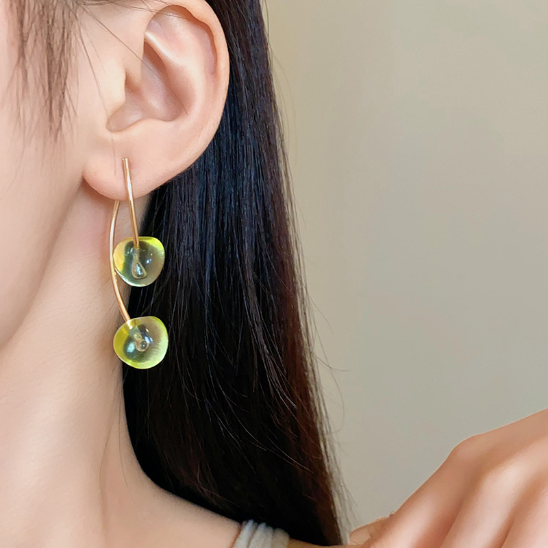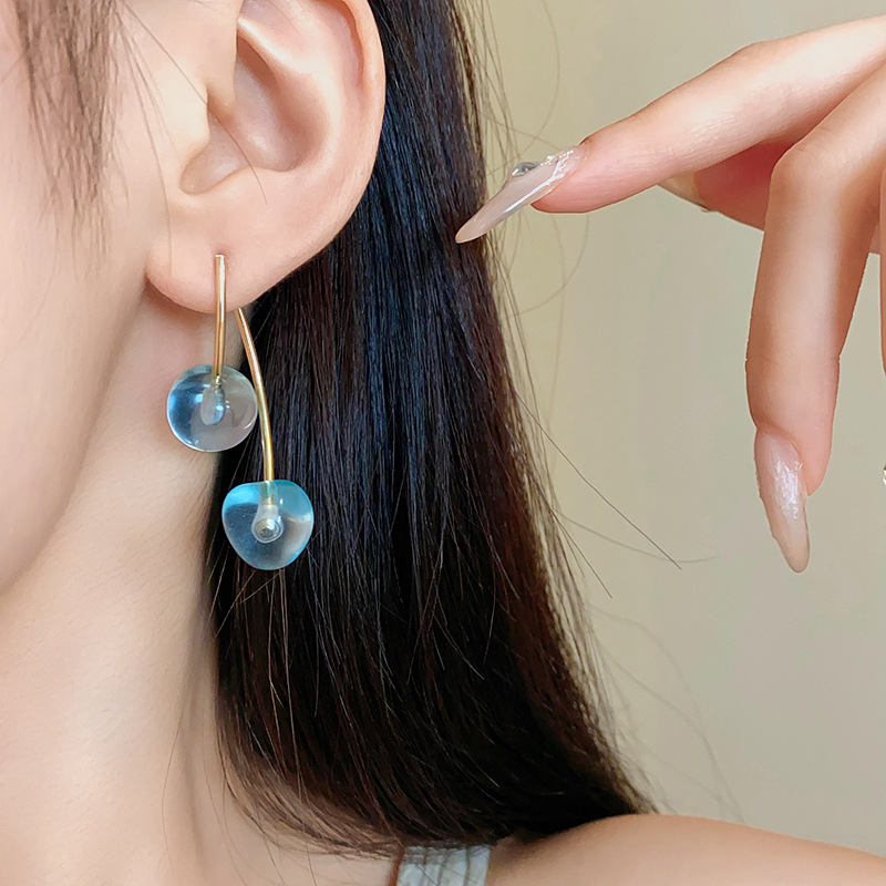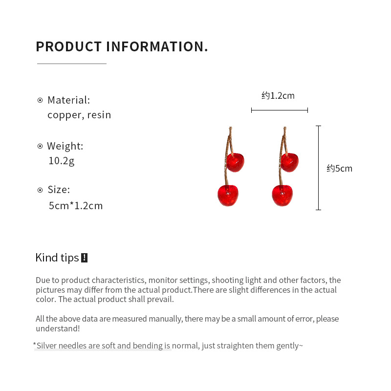 银针樱桃树脂耳环韩系简约设计感耳坠夏季高级感通勤新款耳饰批发