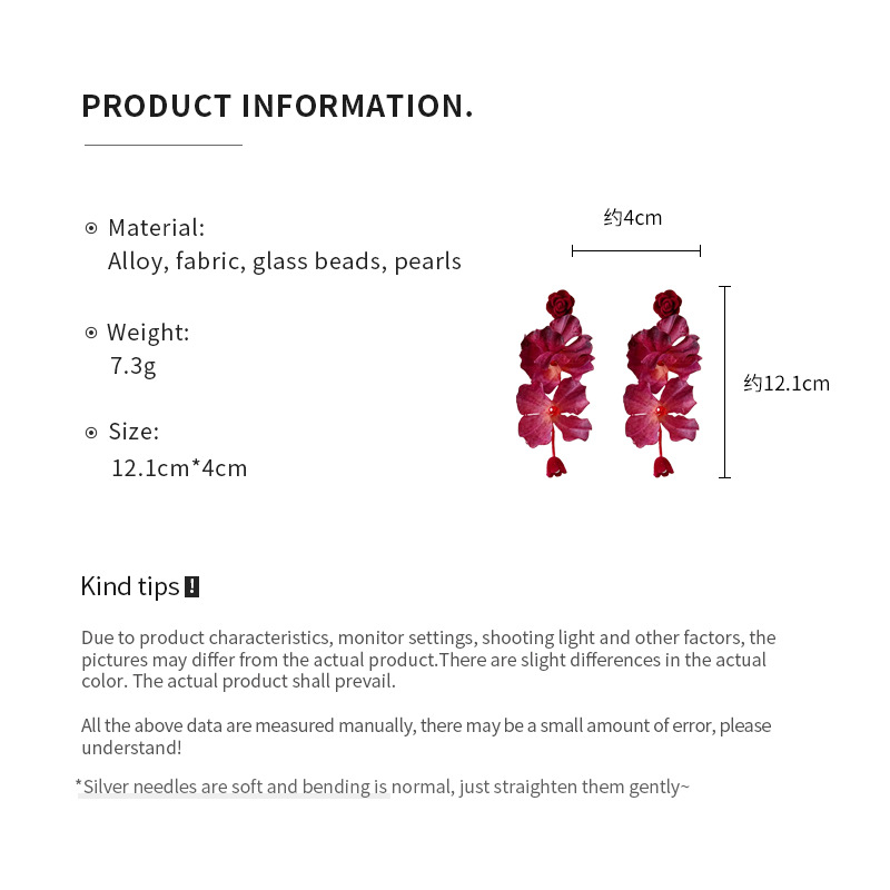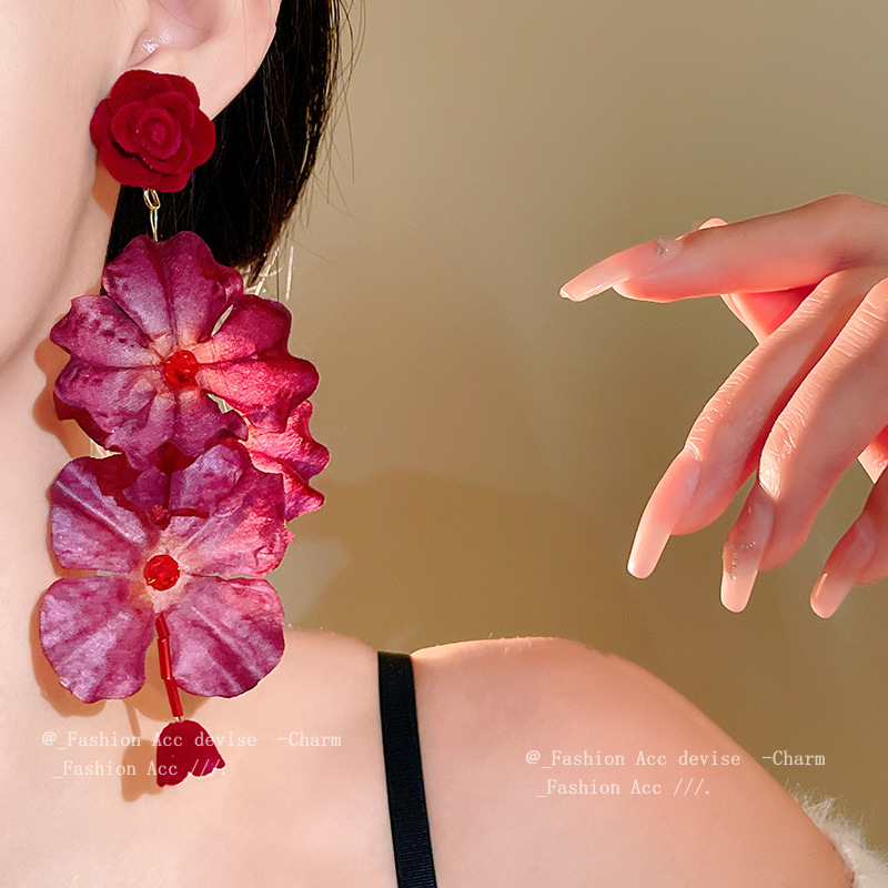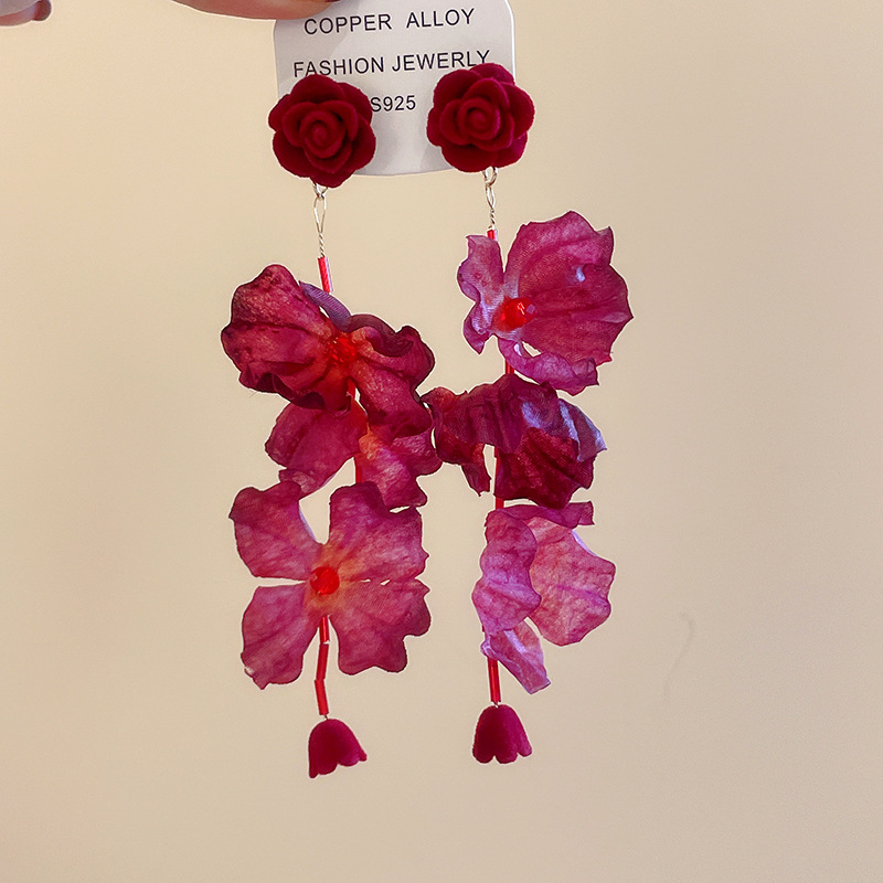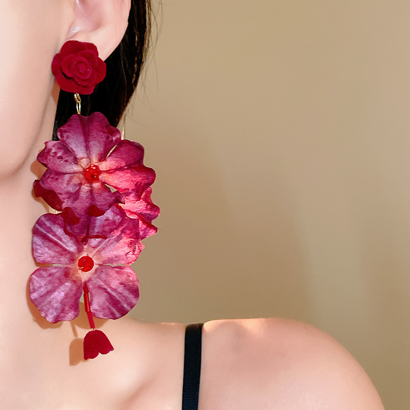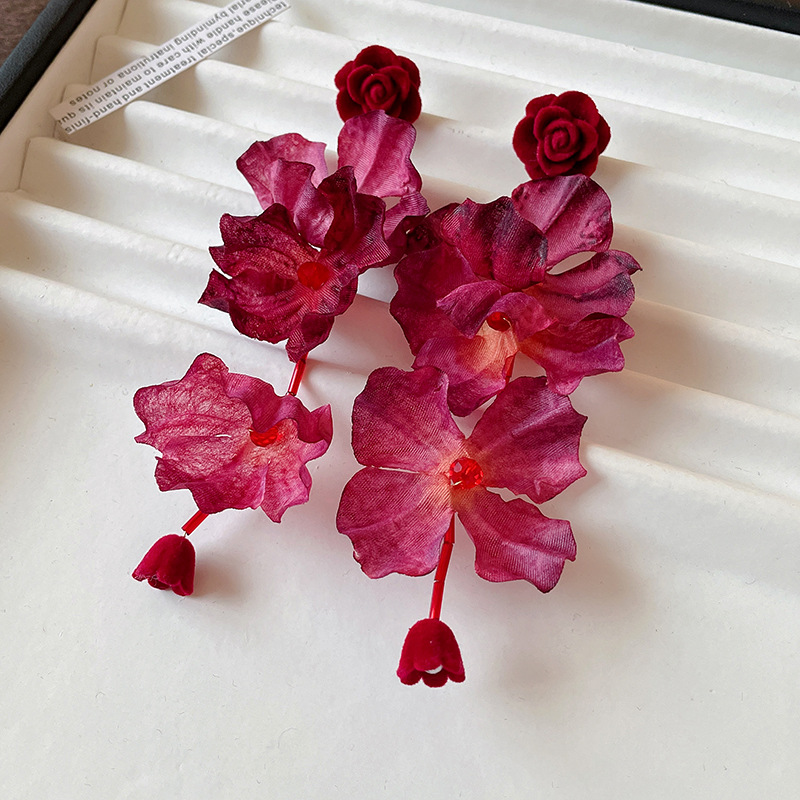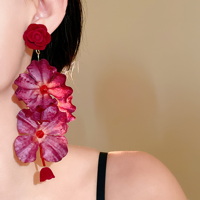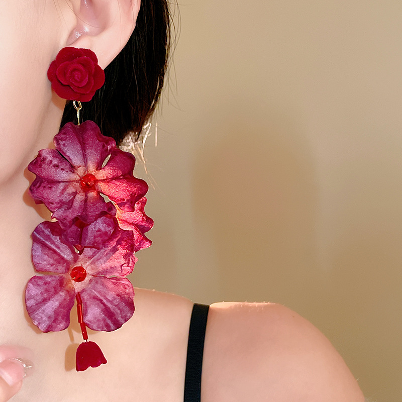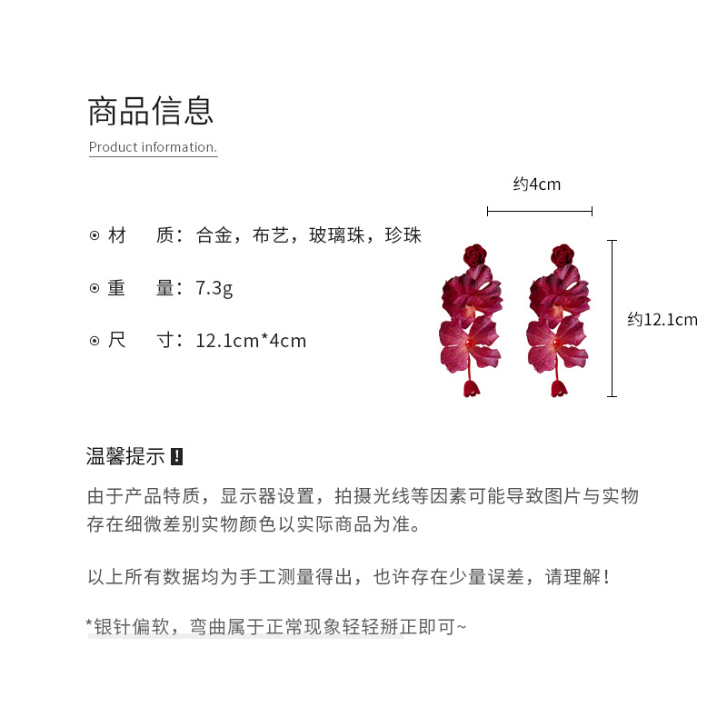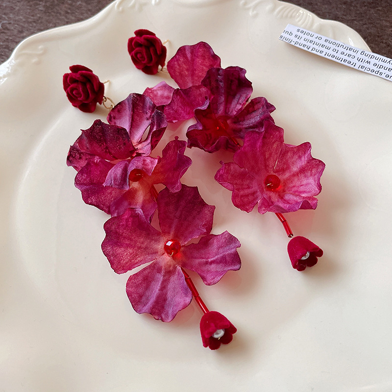 银针植绒玫瑰花玻璃珠珍珠耳钉轻奢优雅气质耳环法式高级感耳饰女