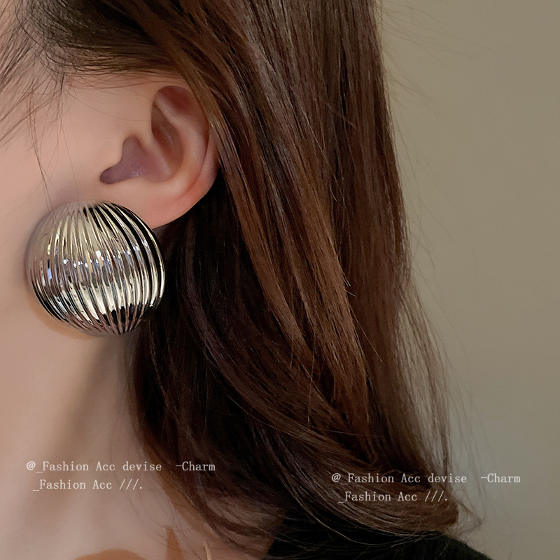 银针金属条纹半圆耳环欧美夸张冷淡风耳钉小众时尚气质耳饰批发女