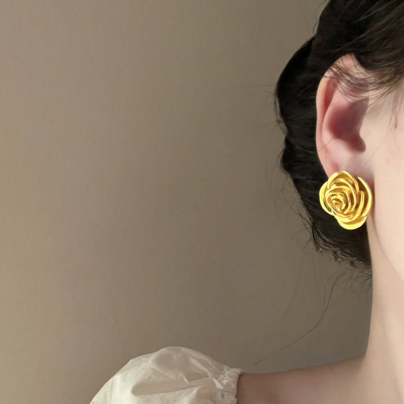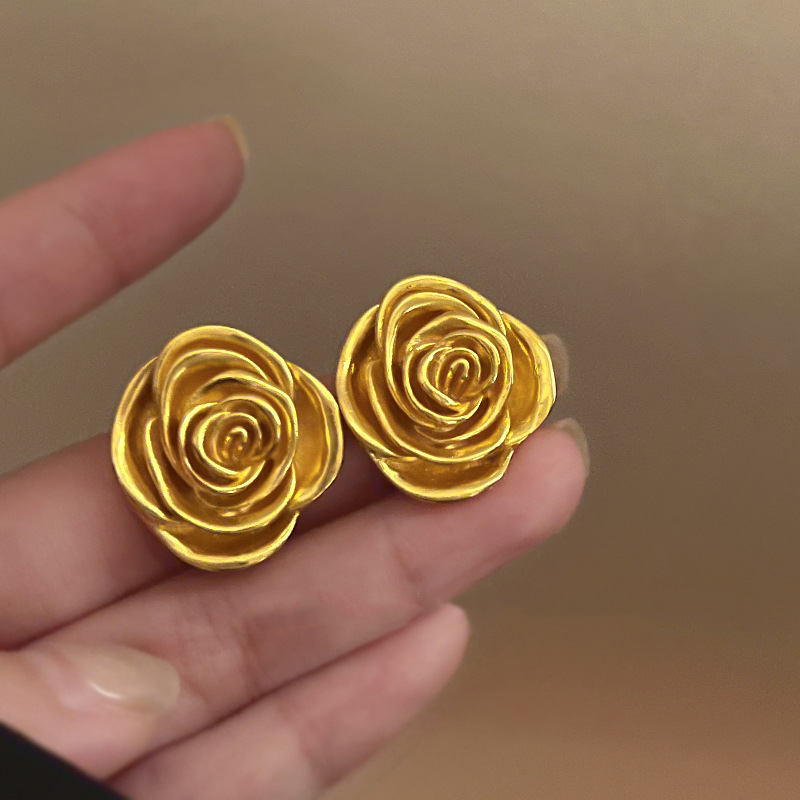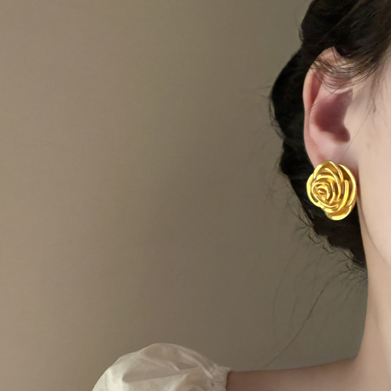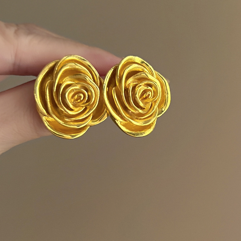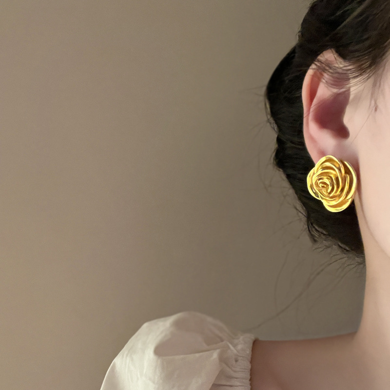 银针中古vintage花朵耳钉小众简约百搭耳环复古轻奢高级感耳饰女