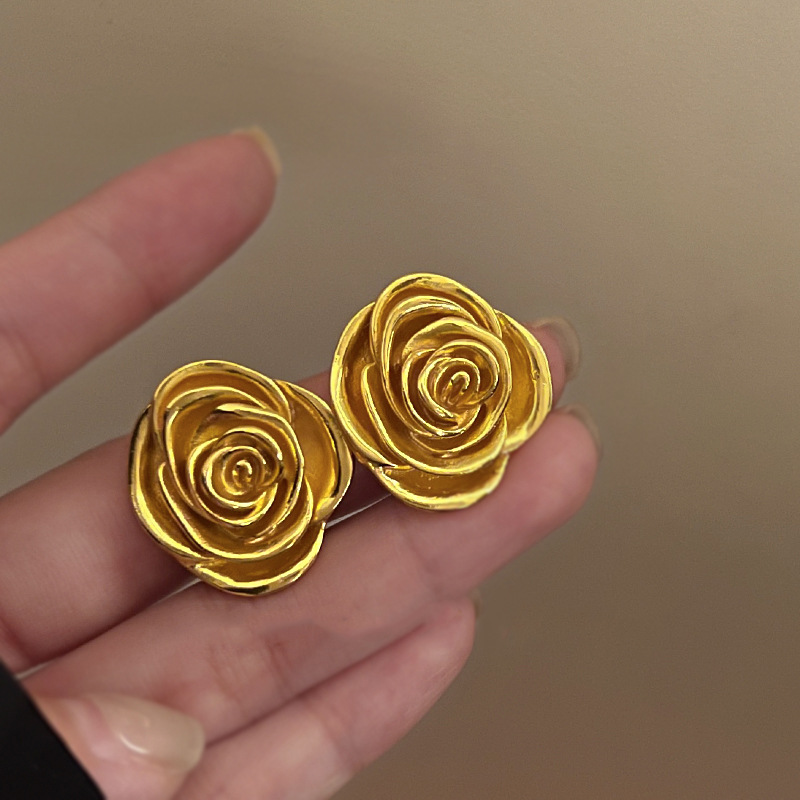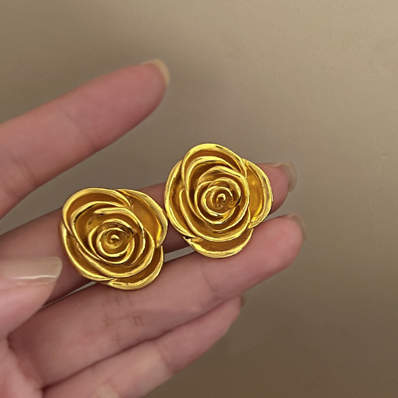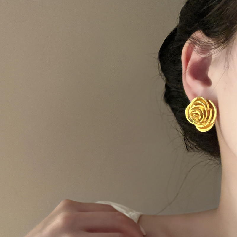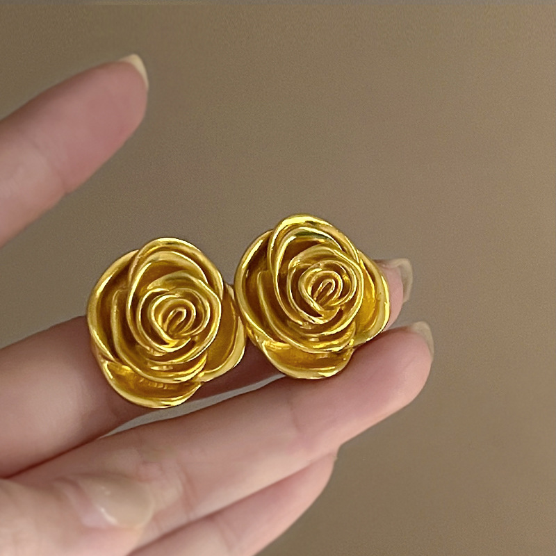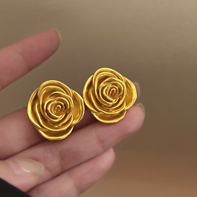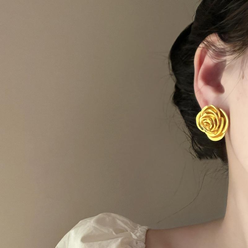 银针中古vintage花朵耳钉小众简约百搭耳环复古轻奢高级感耳饰女