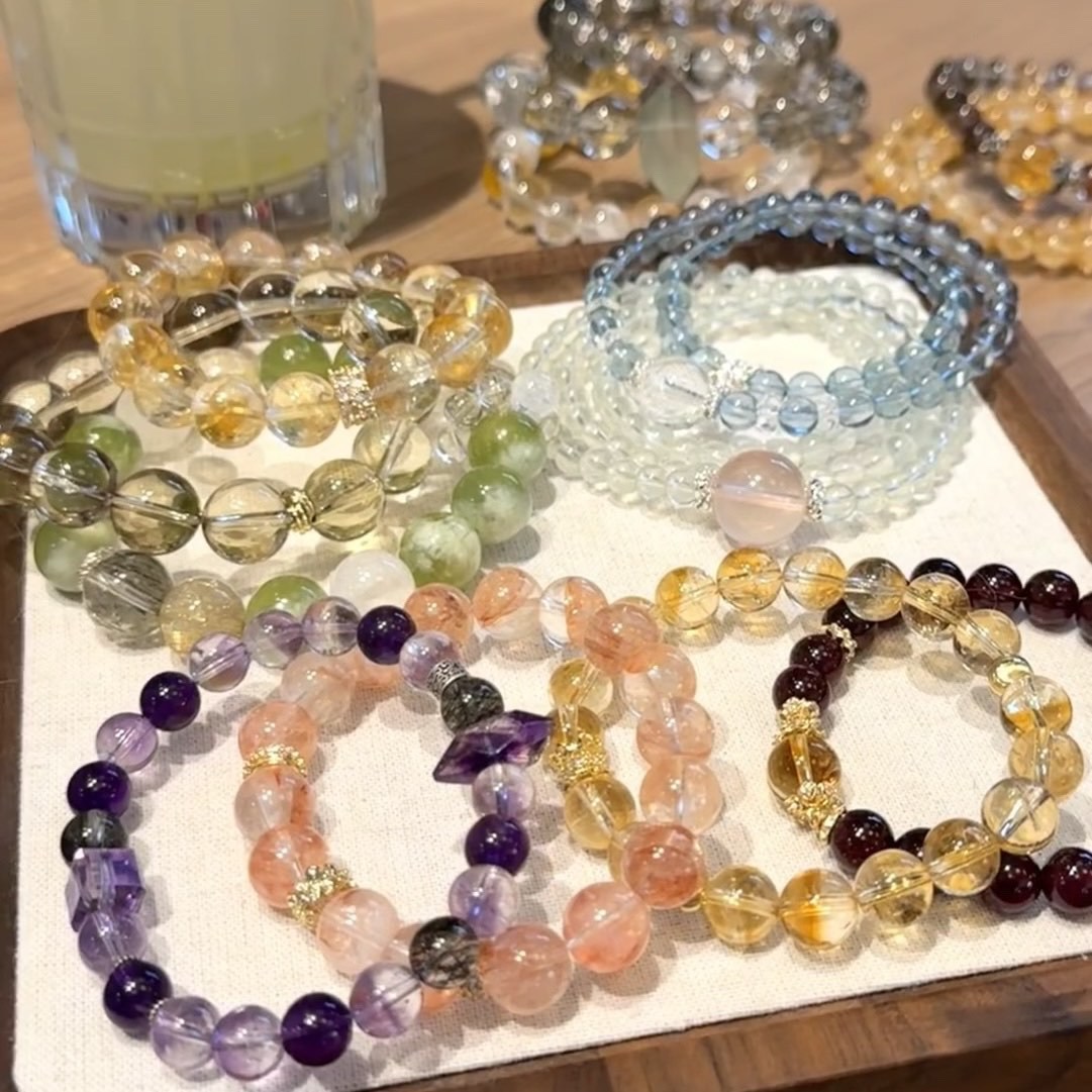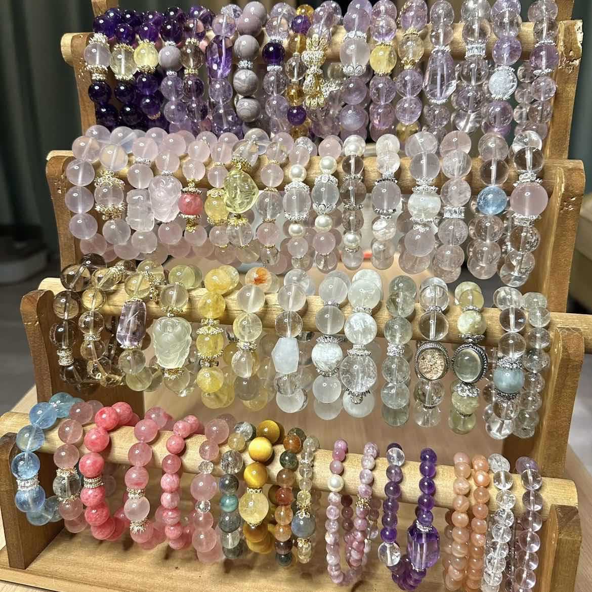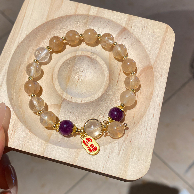 新中式玻璃晕染花朵吊坠手链甜美气质通勤串珠手串高级感手饰批发
