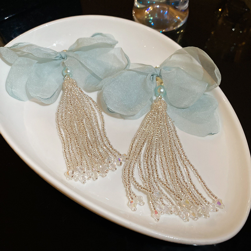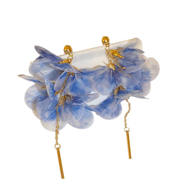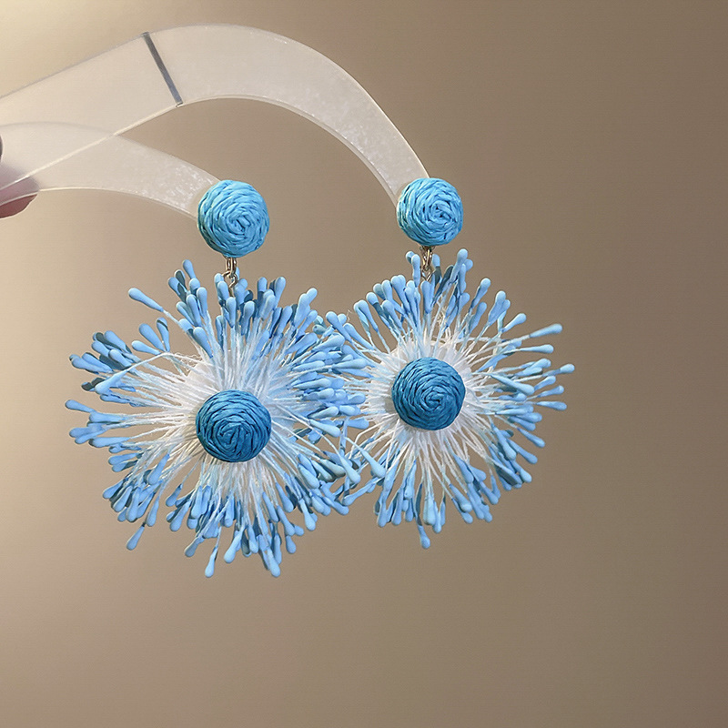 银针彩色多巴胺花朵流苏耳环甜美清新耳钉耳坠气质高级感耳饰批发