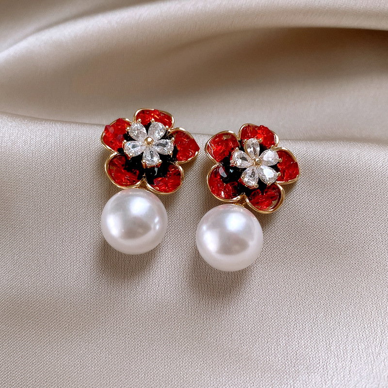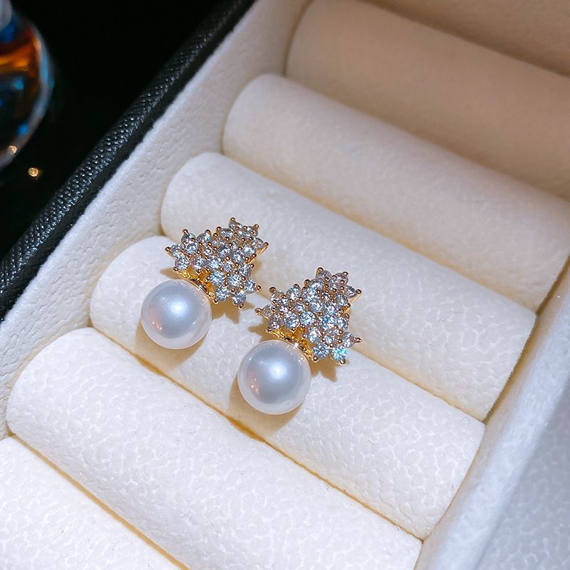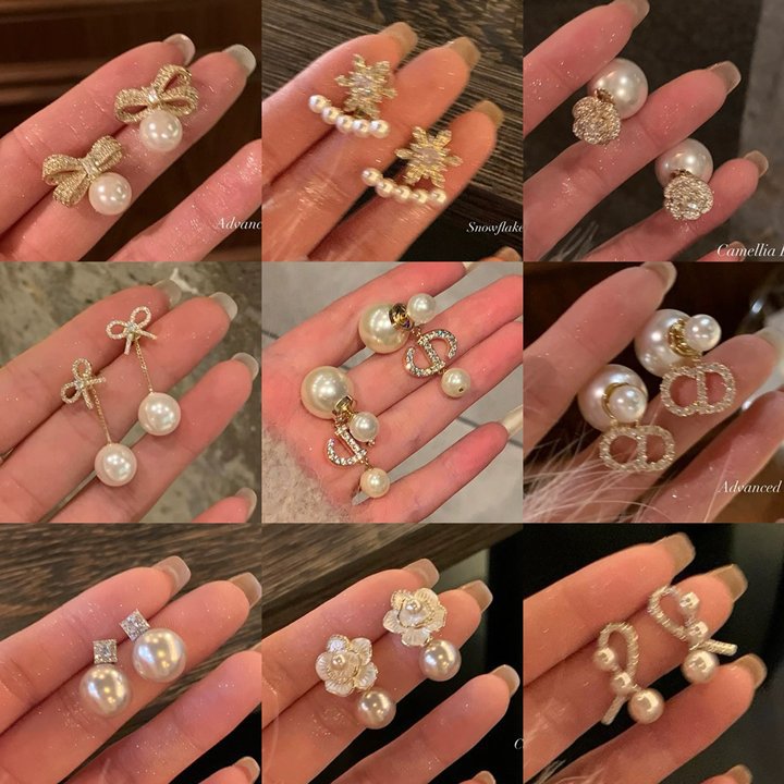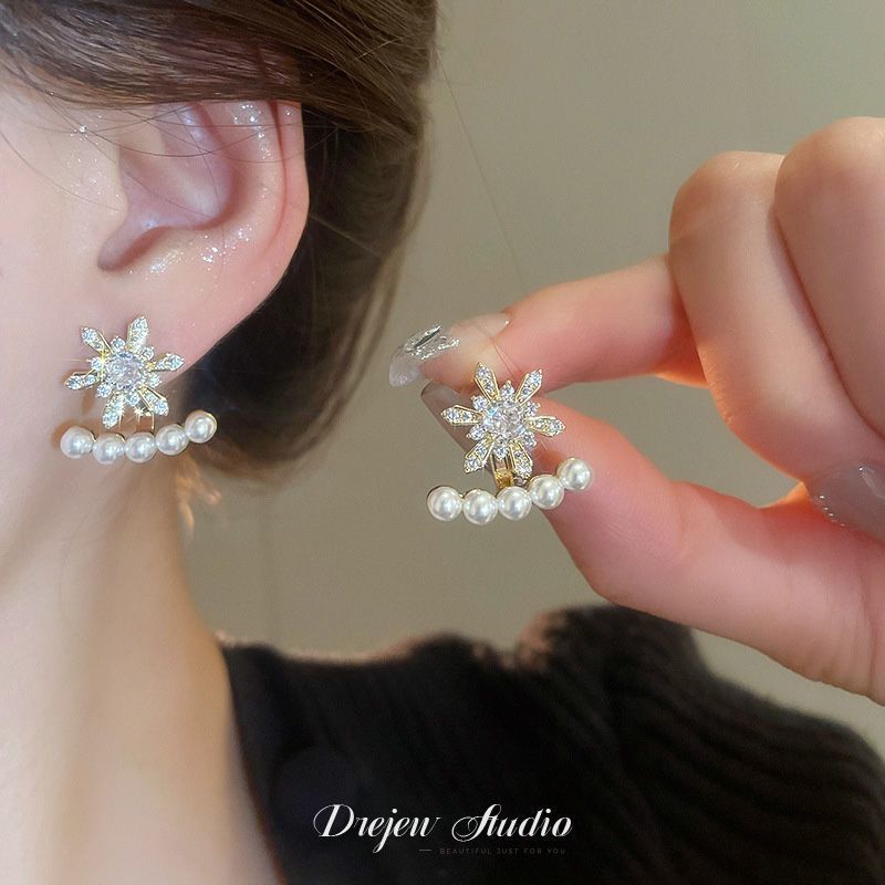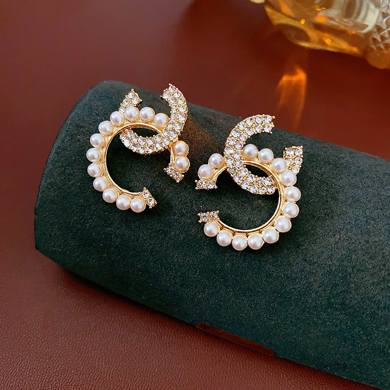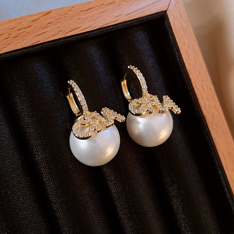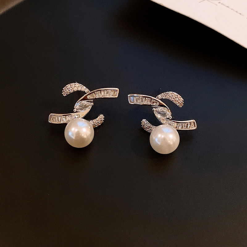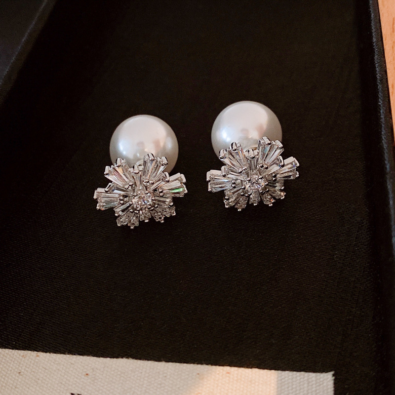 银针锆石花朵字母人造珍珠耳环时尚高级感气质耳钉女轻奢独特饰品