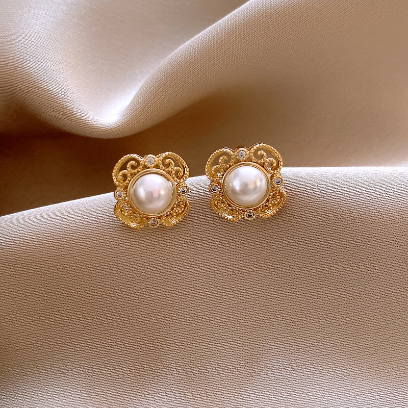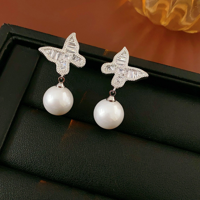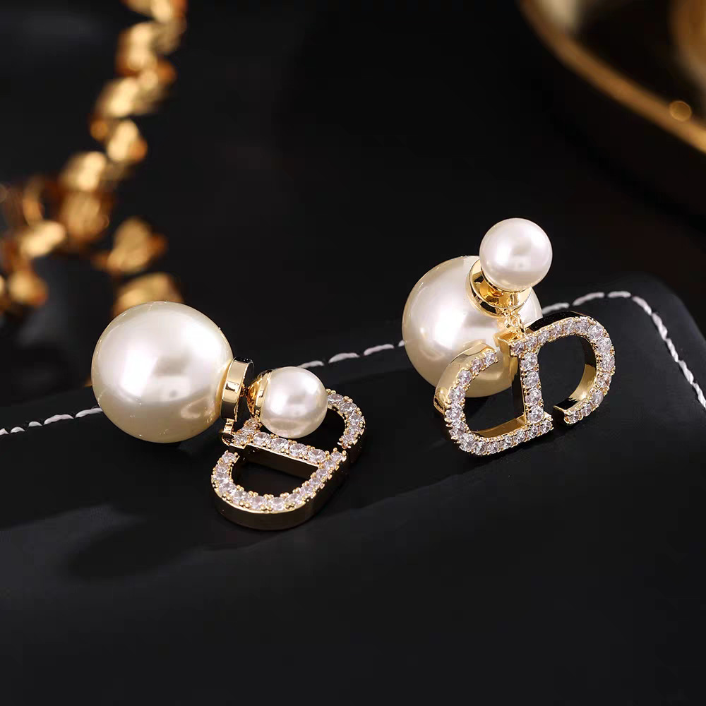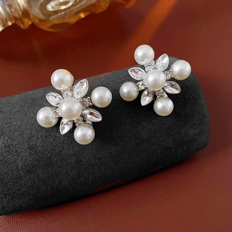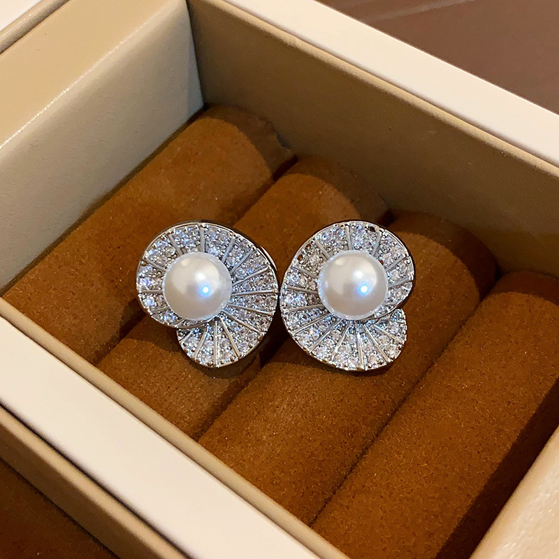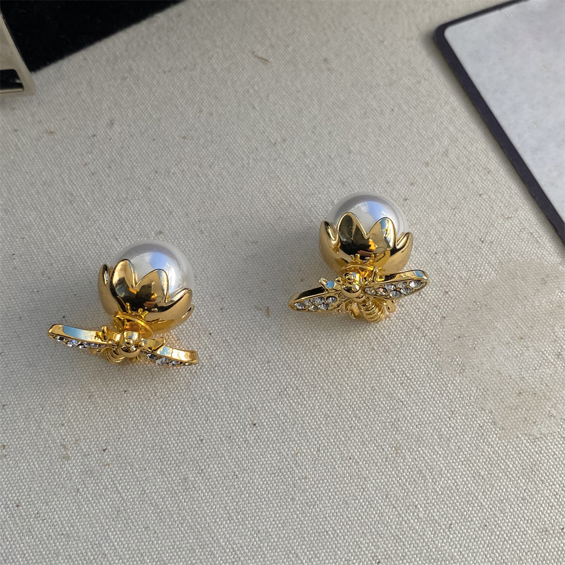 银针锆石花朵字母人造珍珠耳环时尚高级感气质耳钉女轻奢独特饰品