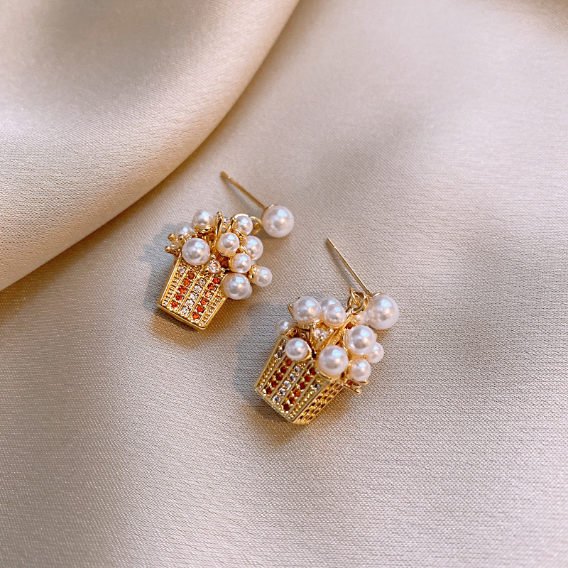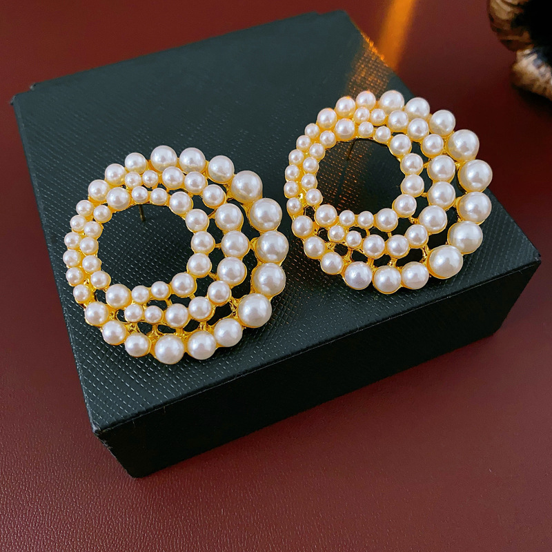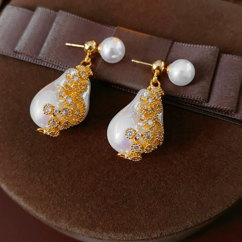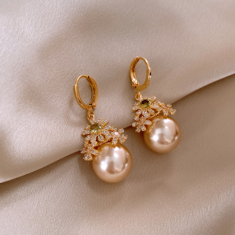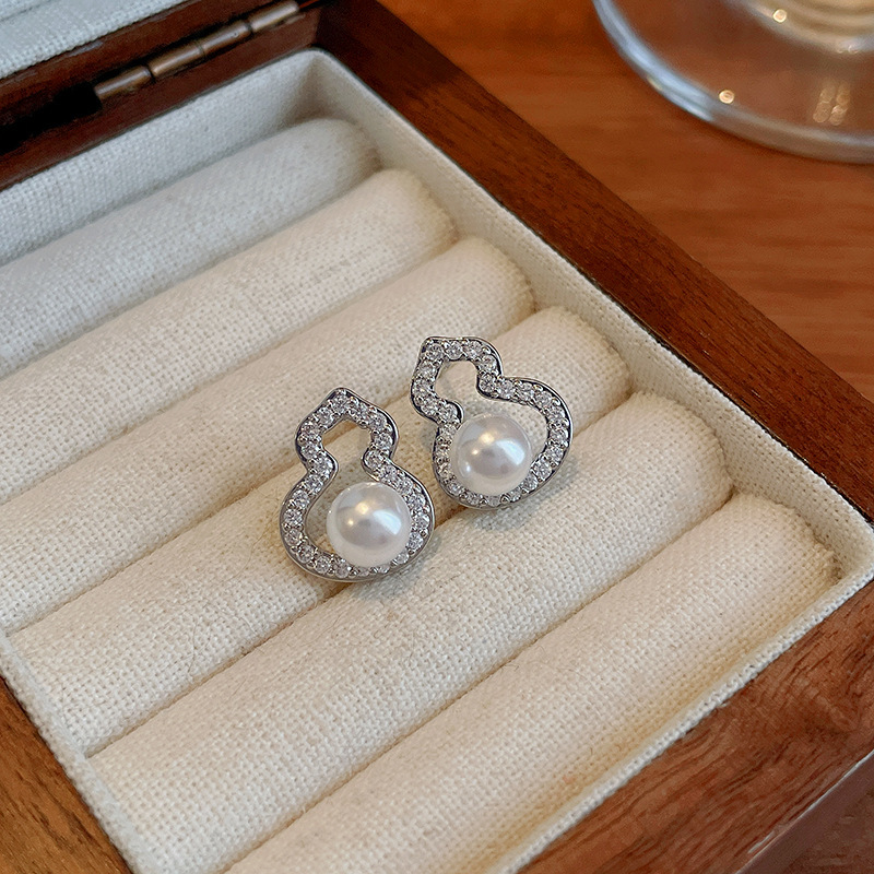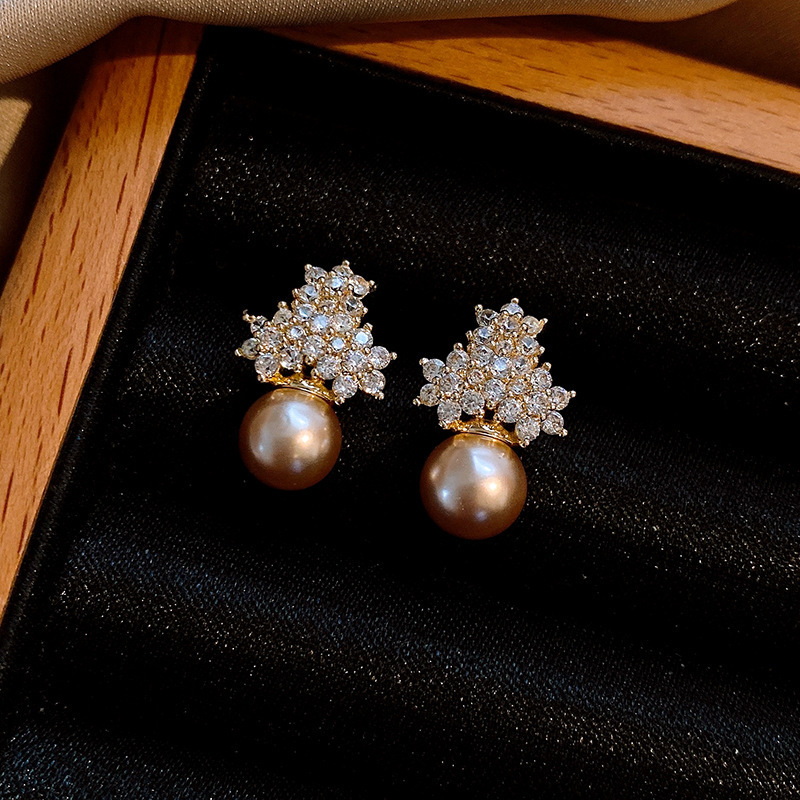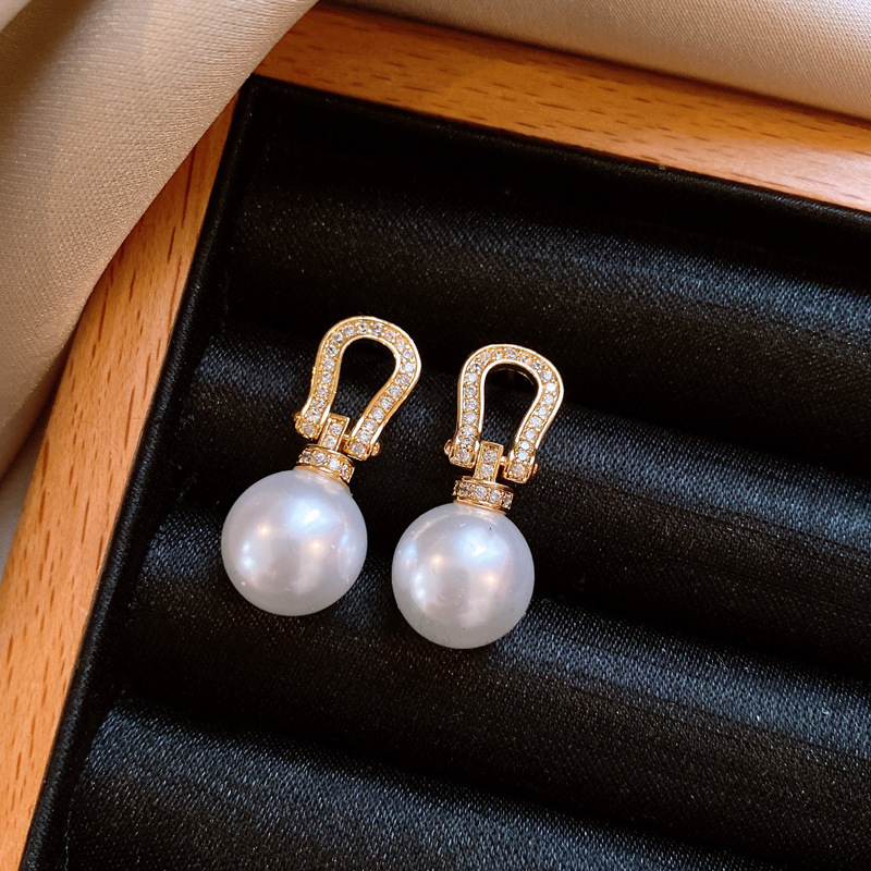 银针锆石花朵字母人造珍珠耳环时尚高级感气质耳钉女轻奢独特饰品