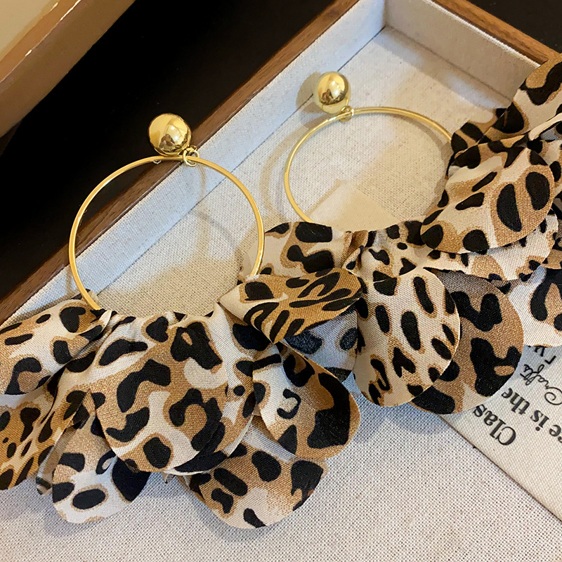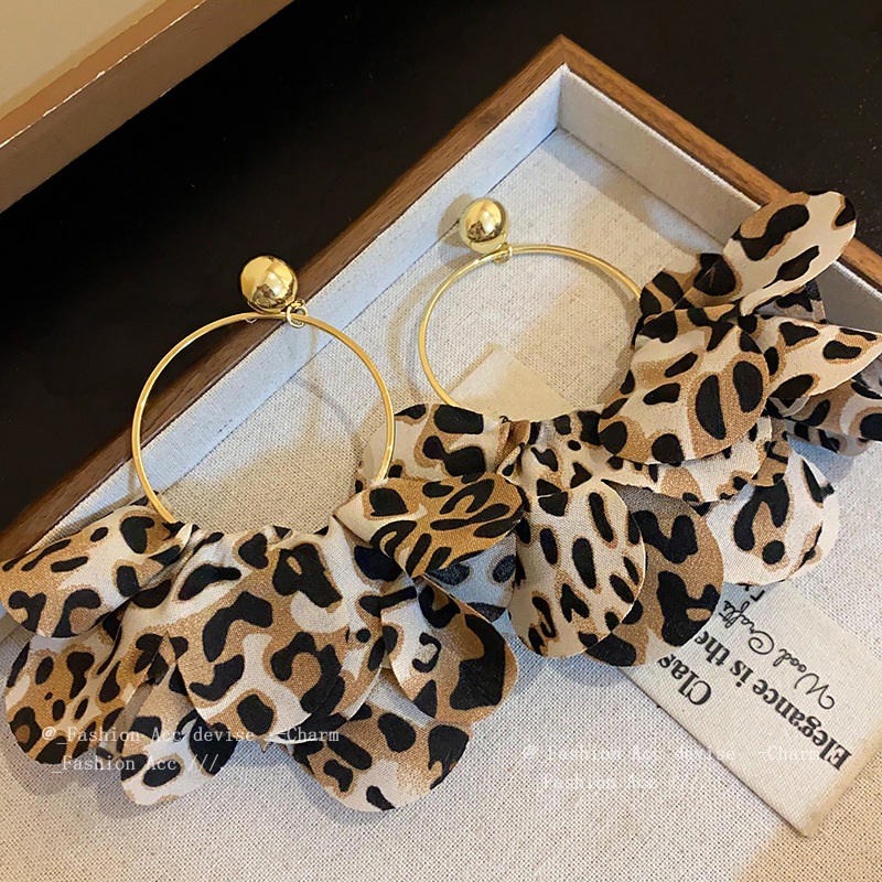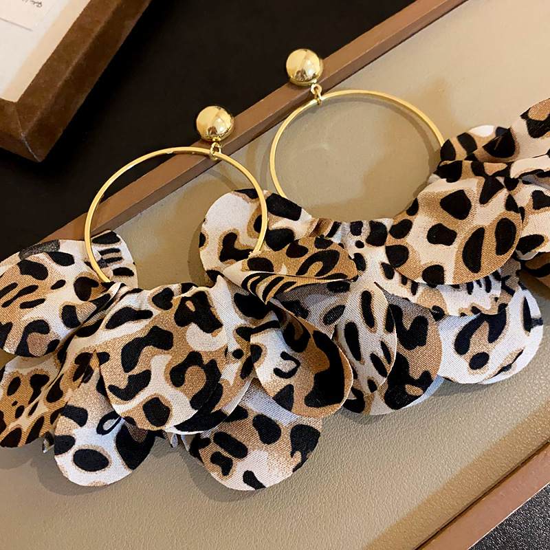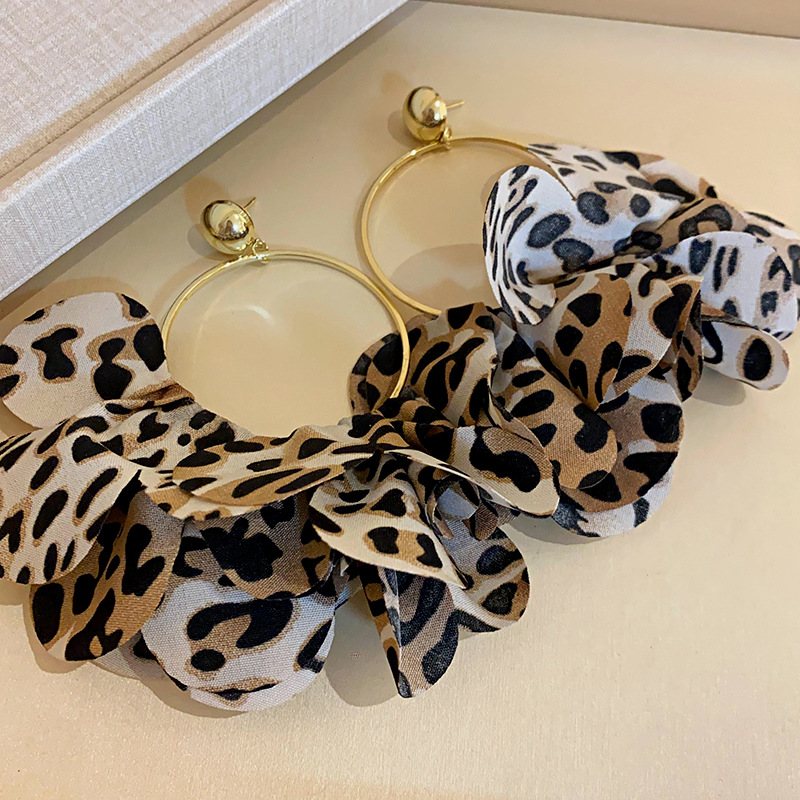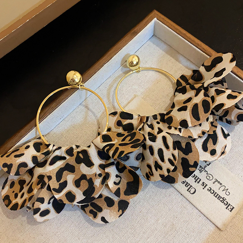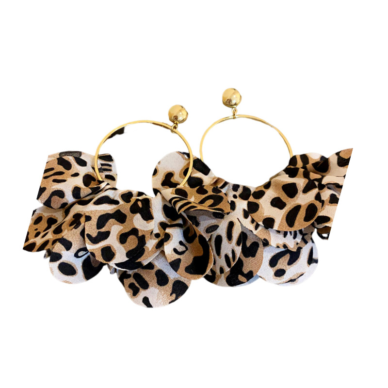 银针圆形花瓣豹纹耳环民族风复古气质耳坠小众高级感百搭耳饰批发
