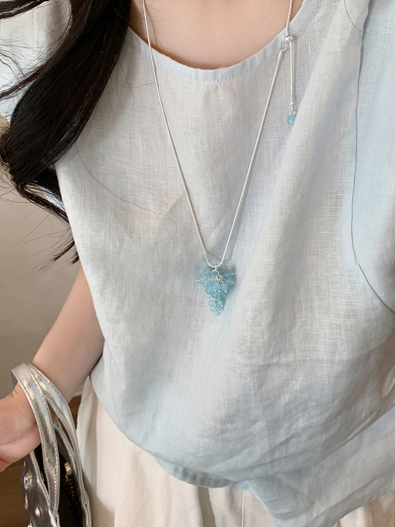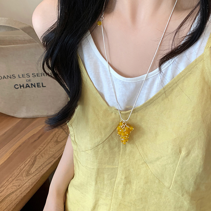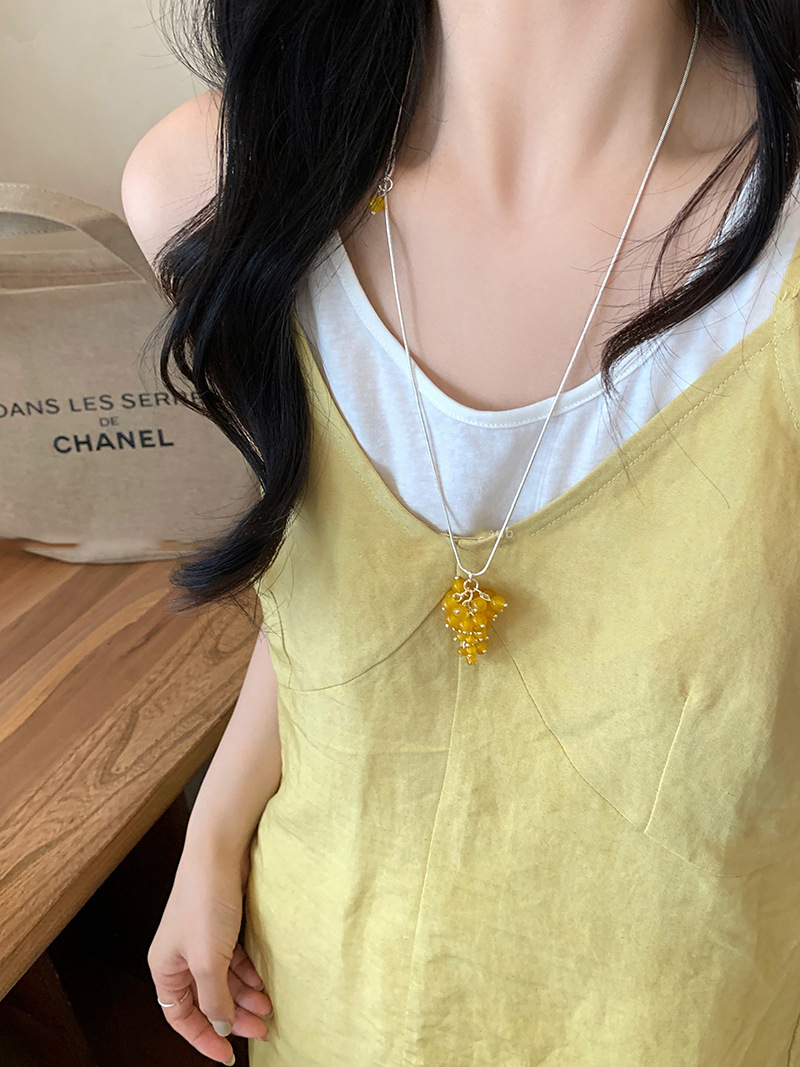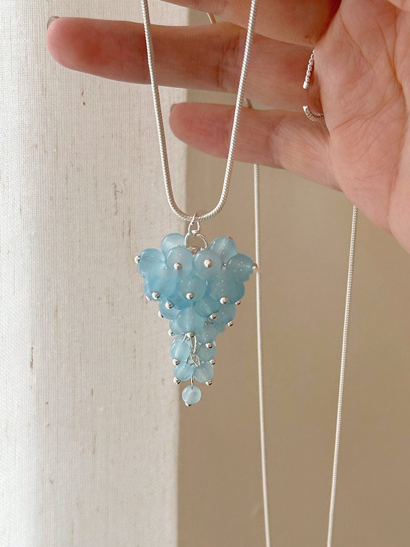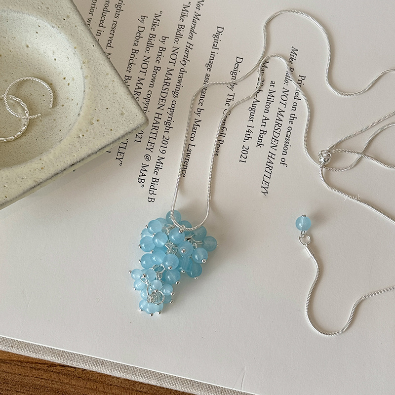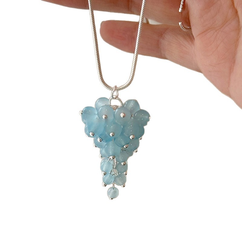 圆形玻璃珠葡萄形吊坠项链ins简约冷淡风锁骨链小众高级感项饰女