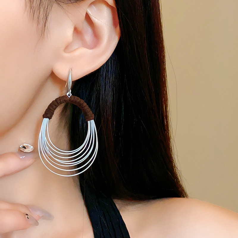 欧美夸张圈圈缠绕多层耳钩时尚个性冷淡风耳环小众独特跨境耳饰女