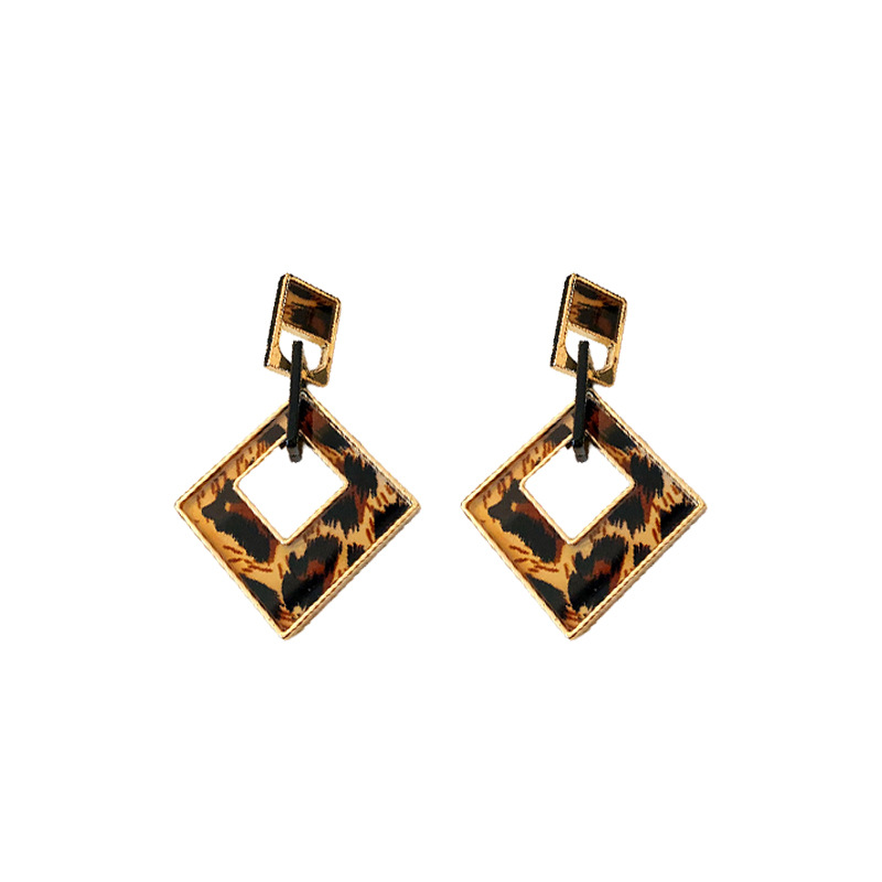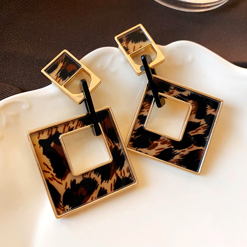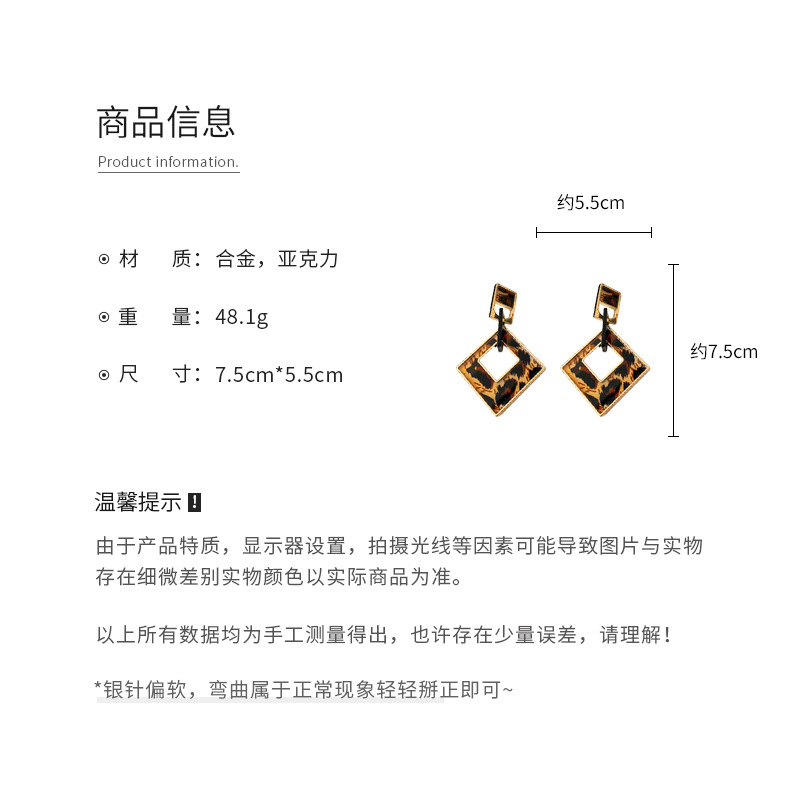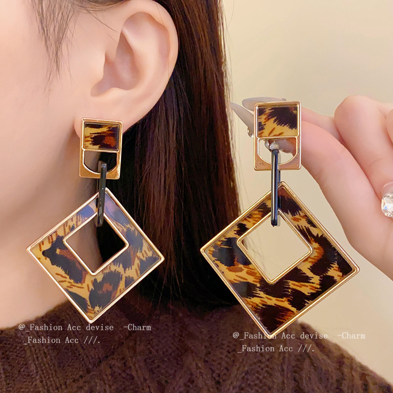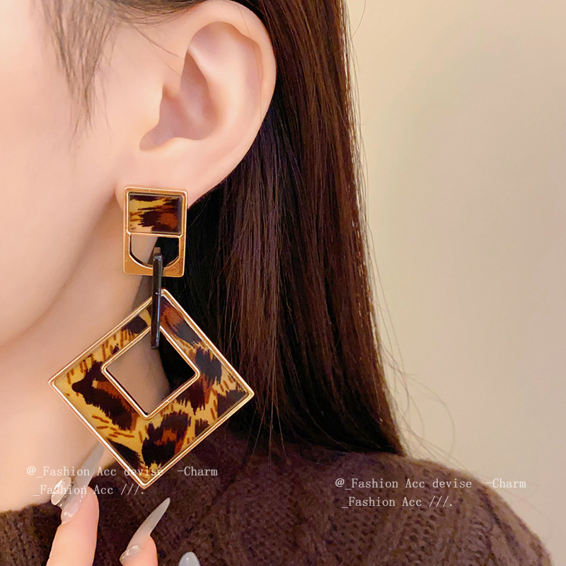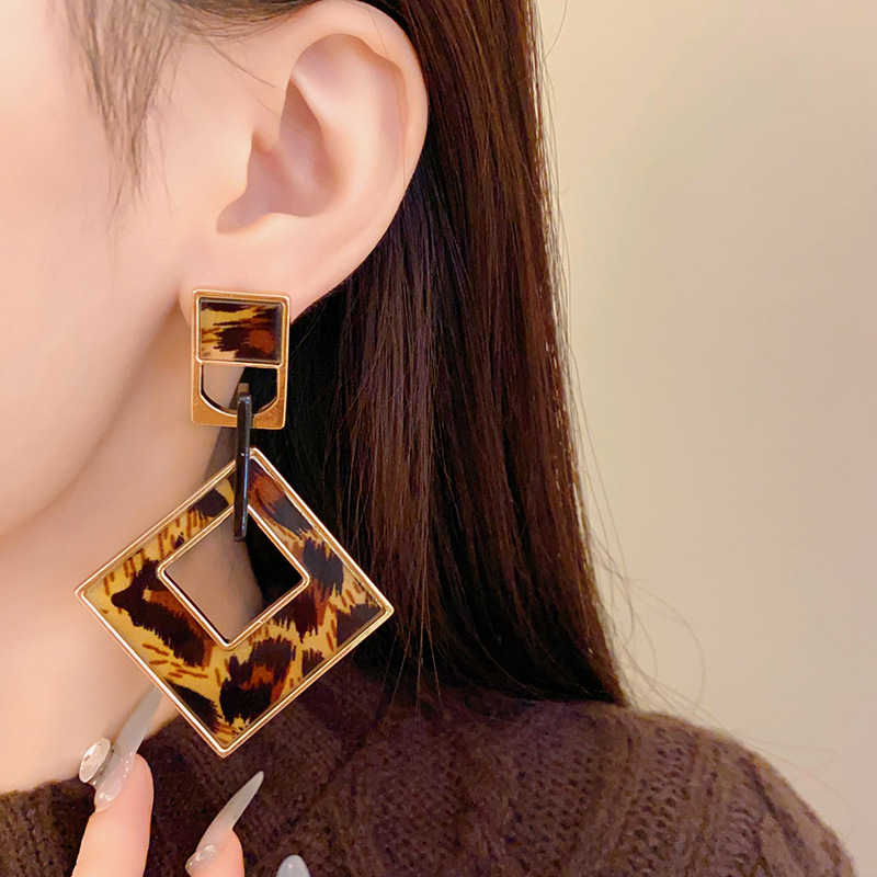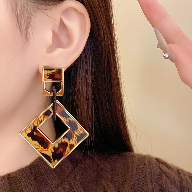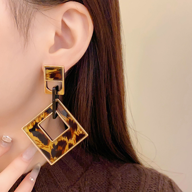 银针菱形镂空豹纹耳环欧美复古设计耳坠个性轻奢大气百搭耳饰批发
