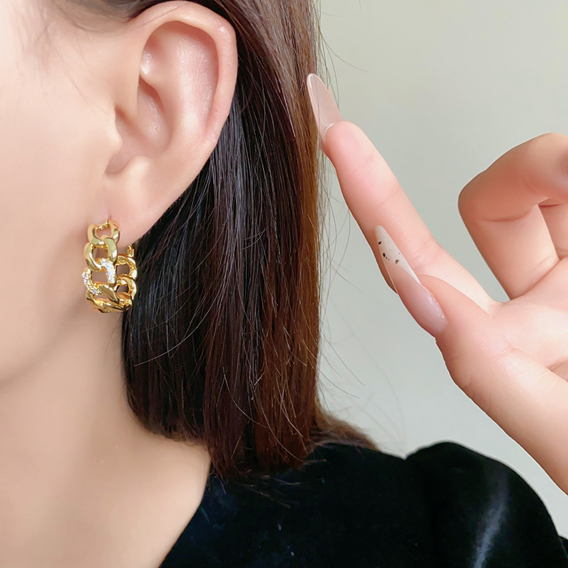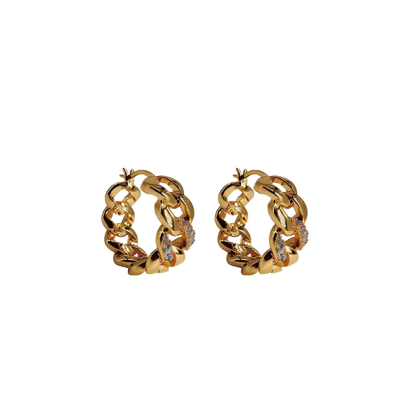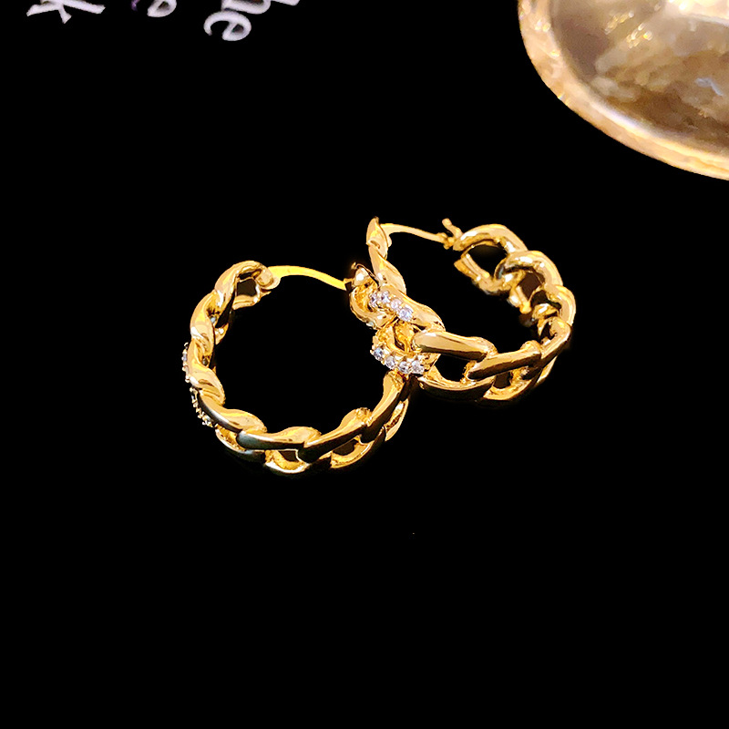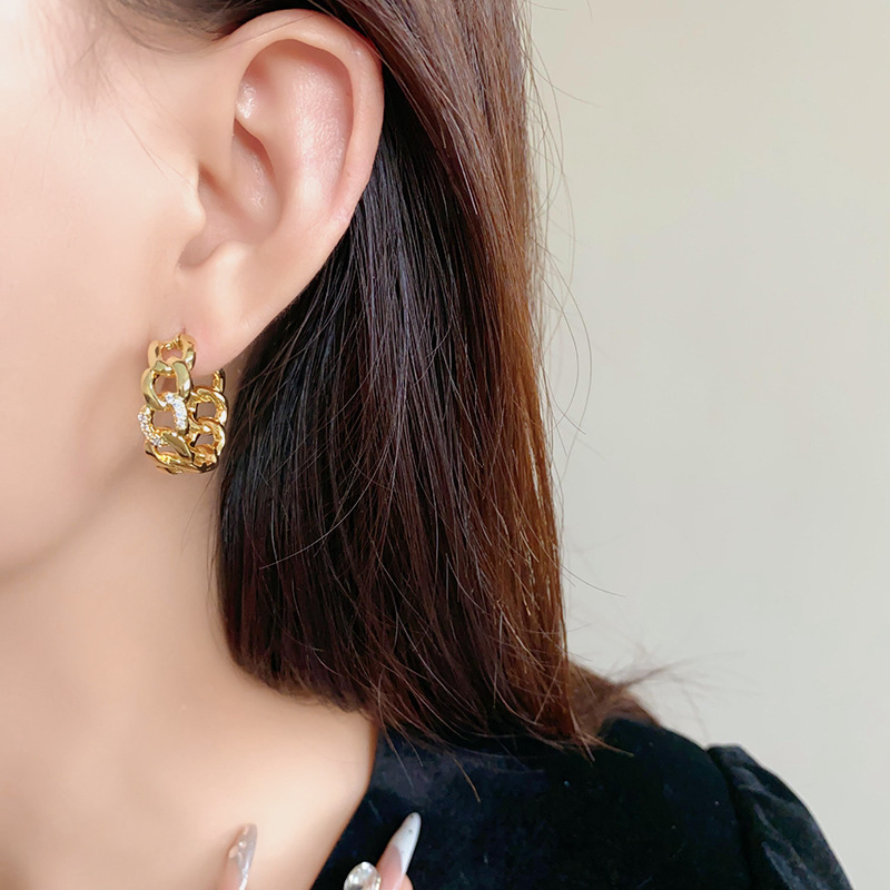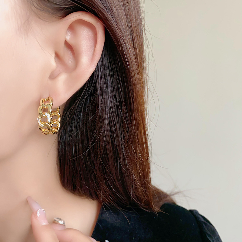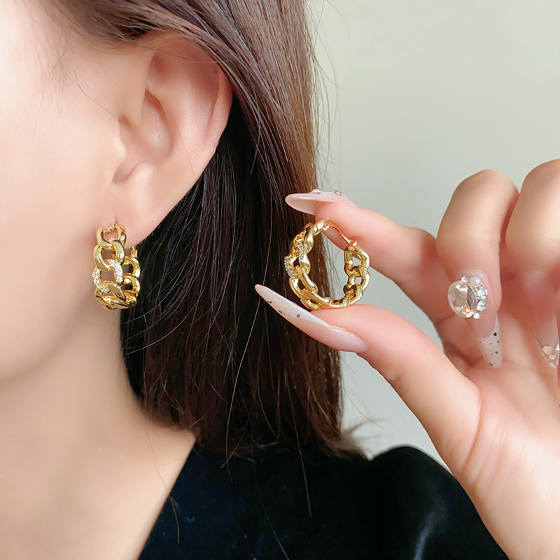 真金电镀锆石链条耳扣欧美跨境轻奢耳环时尚气质耳饰高级感女批发