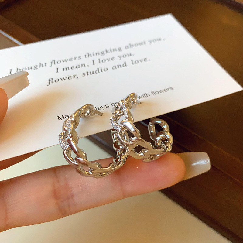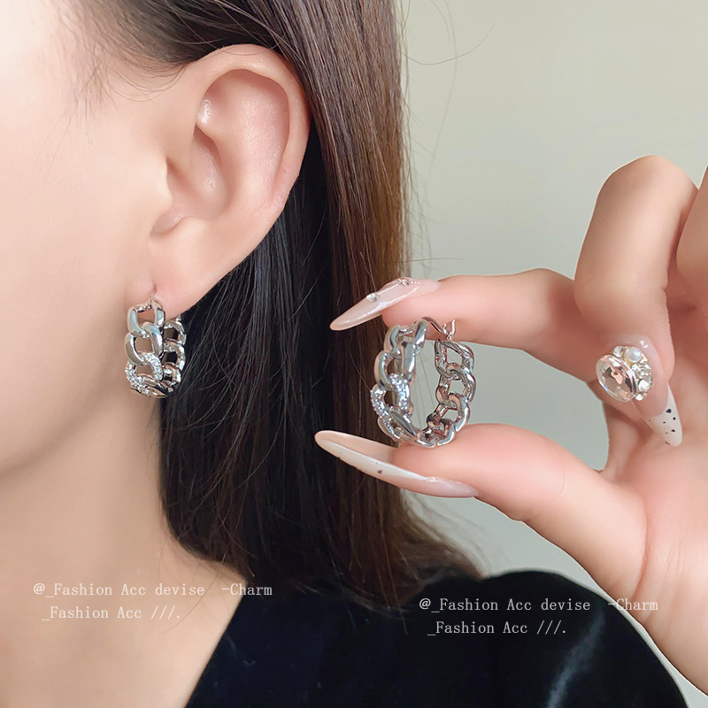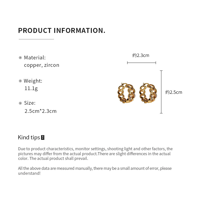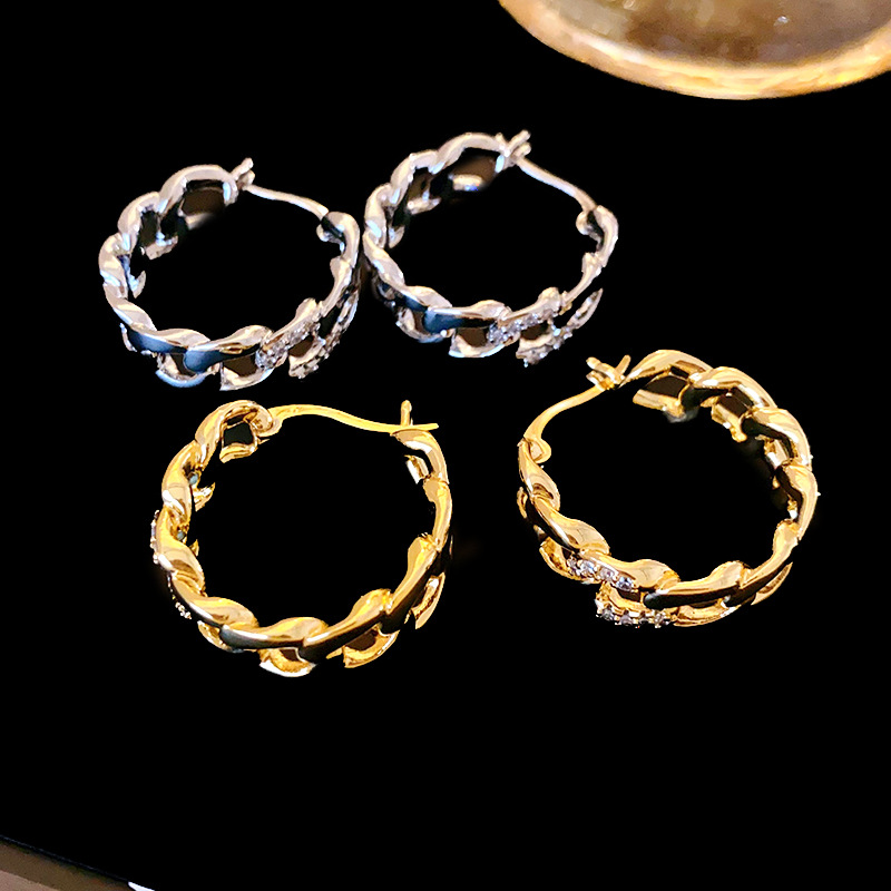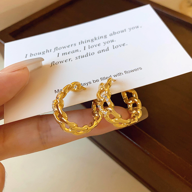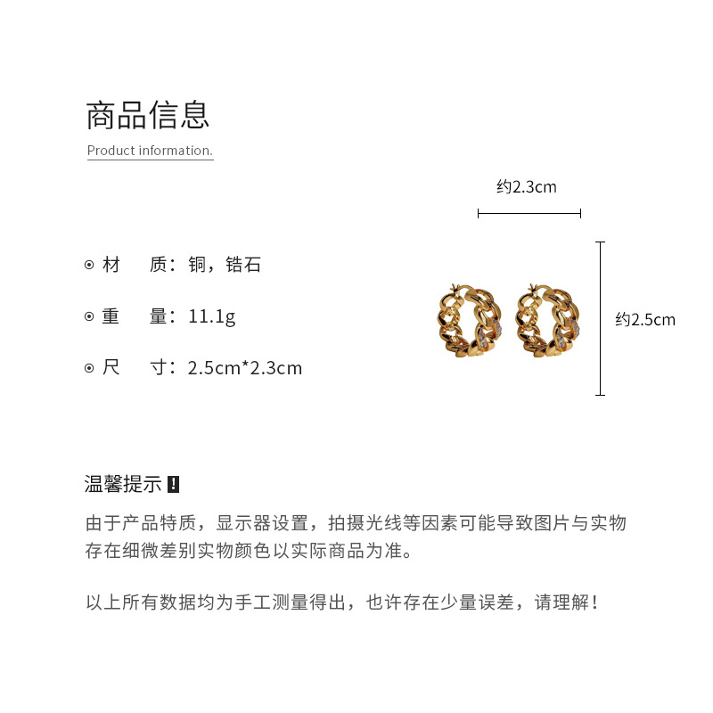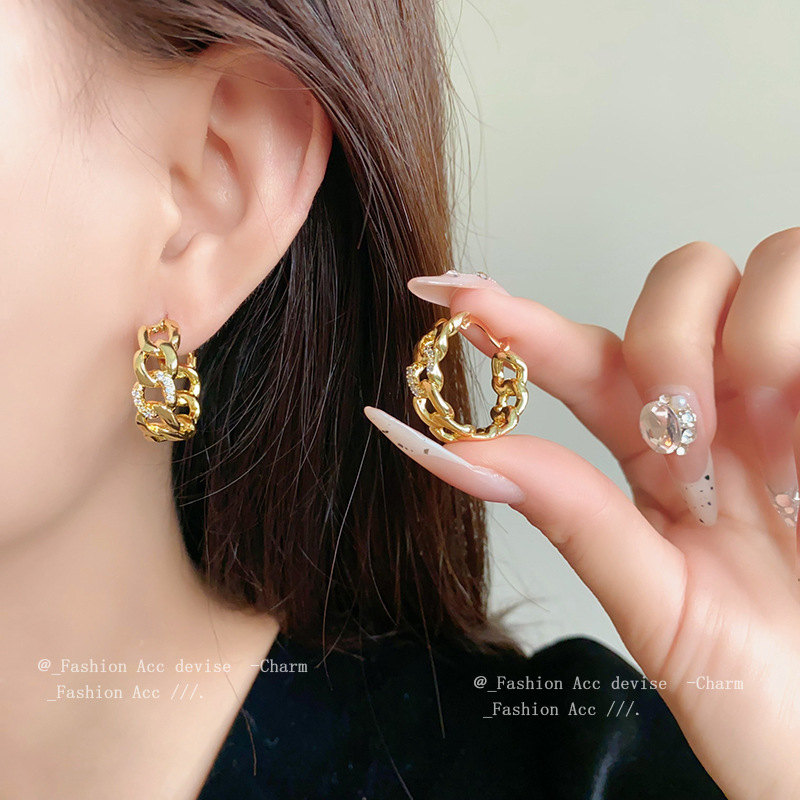 真金电镀锆石链条耳扣欧美跨境轻奢耳环时尚气质耳饰高级感女批发