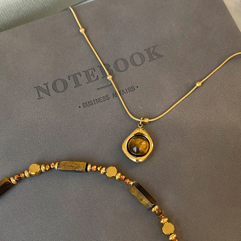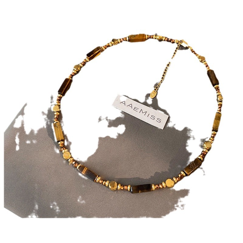 真金电镀圆形虎眼石款串珠项链新中式民族风锁骨链复古气质项饰女