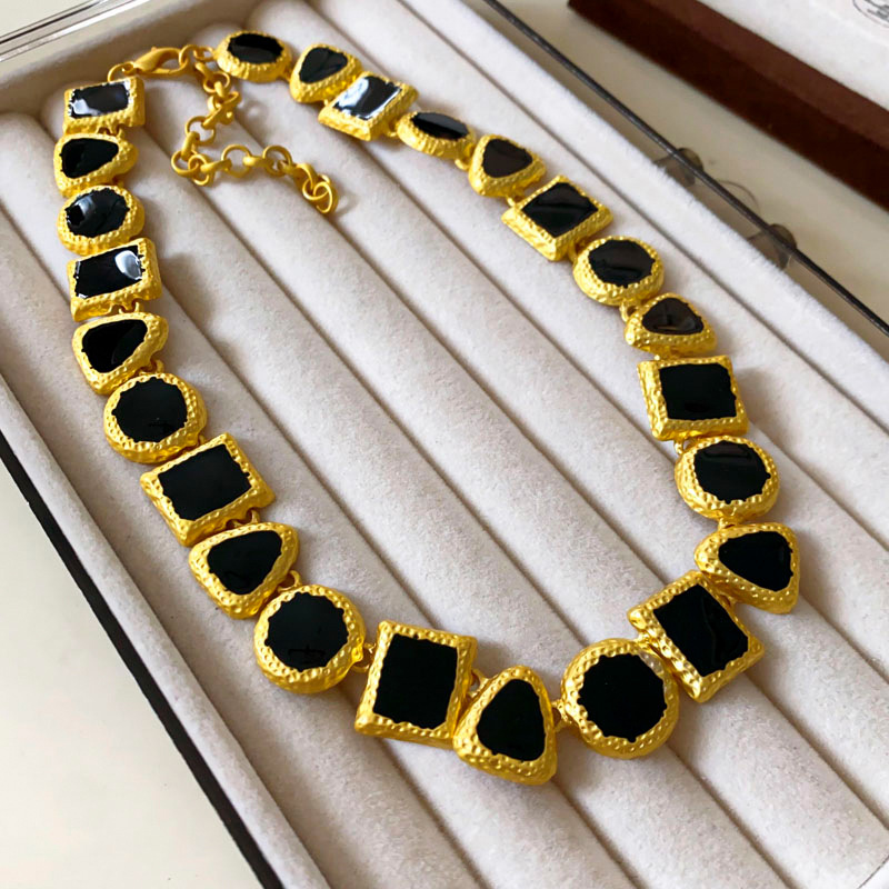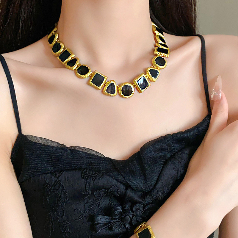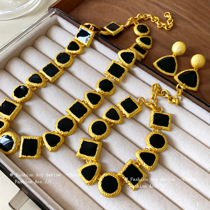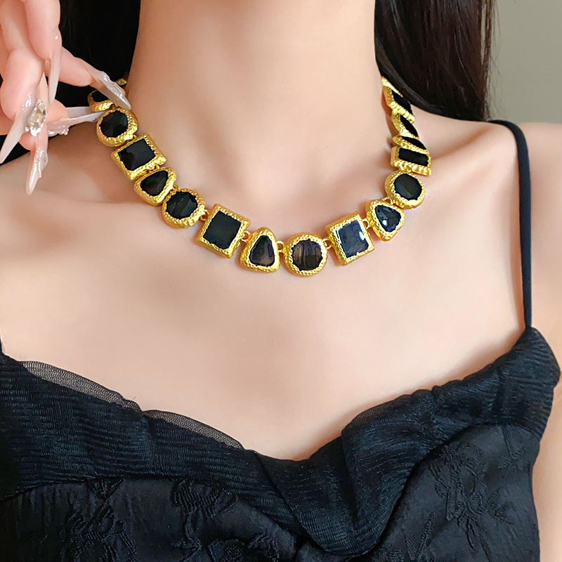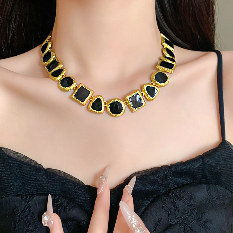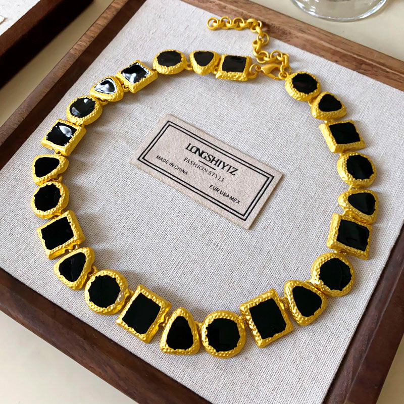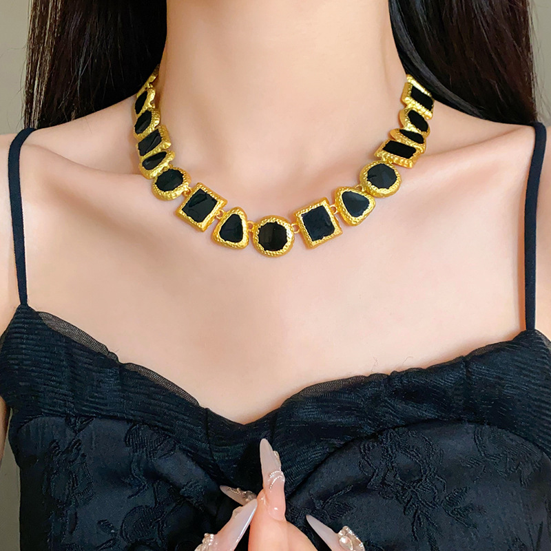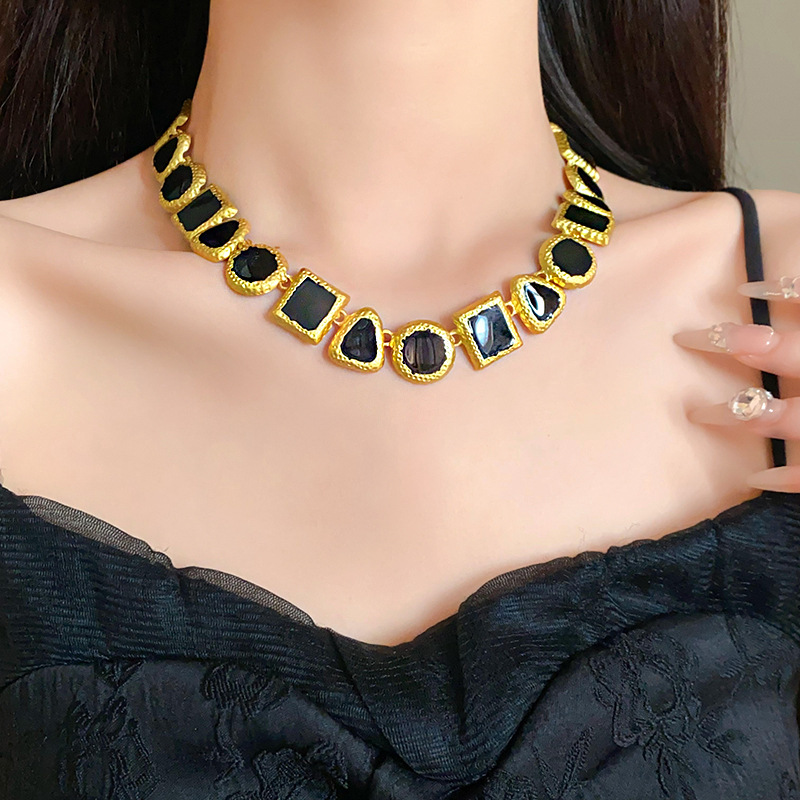 欧美滴油几何拼接项链宫廷风高级感锁骨链设计中古vintage项饰女