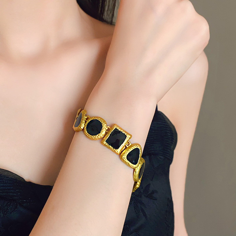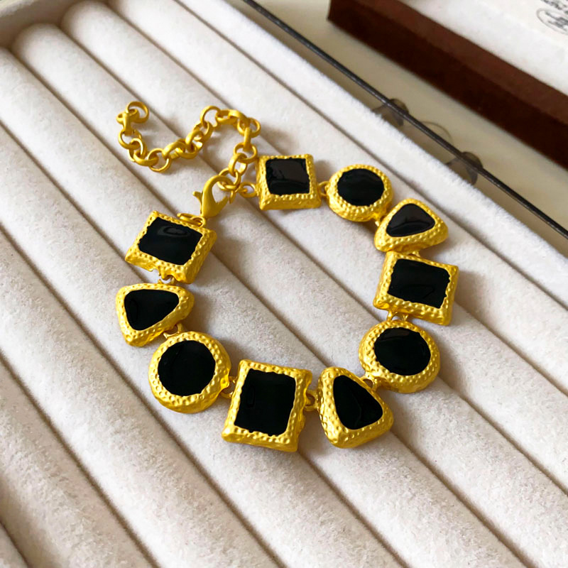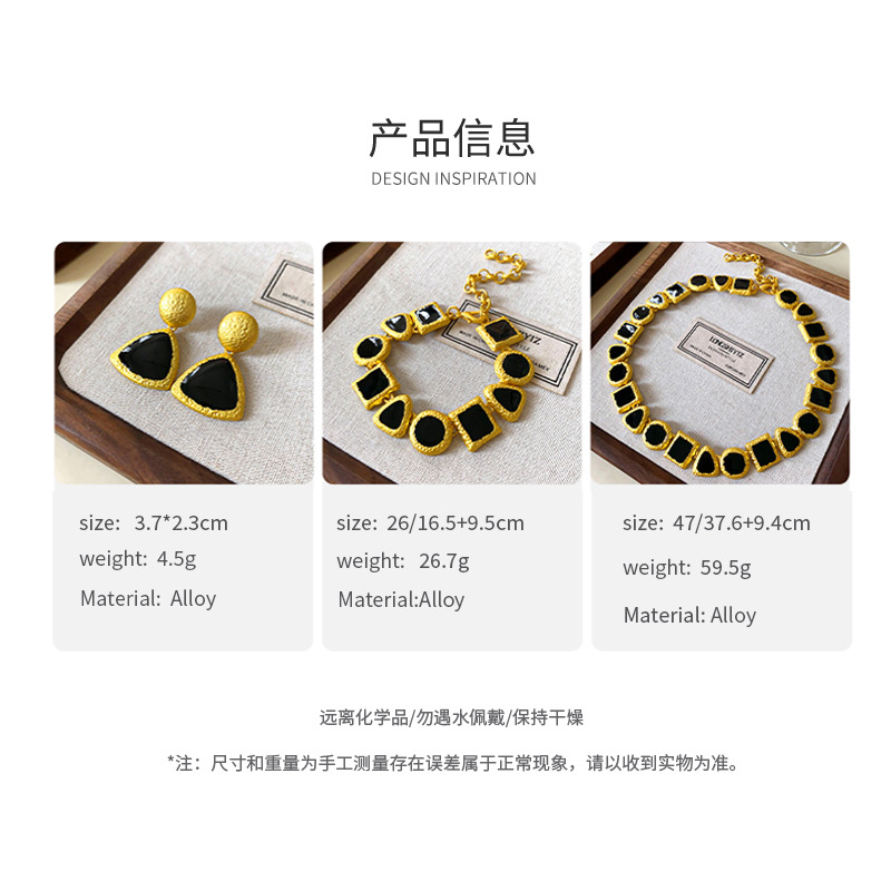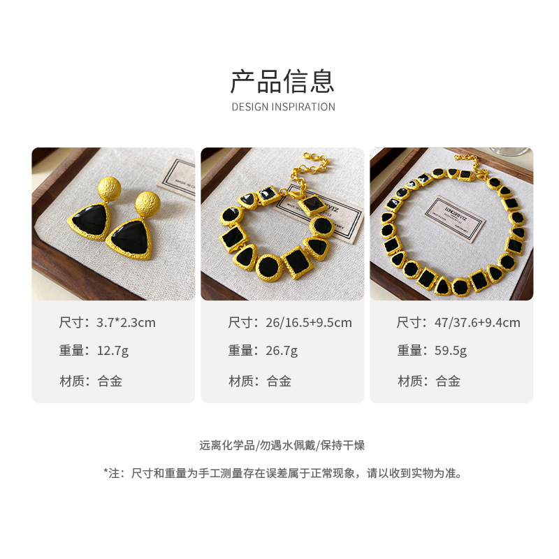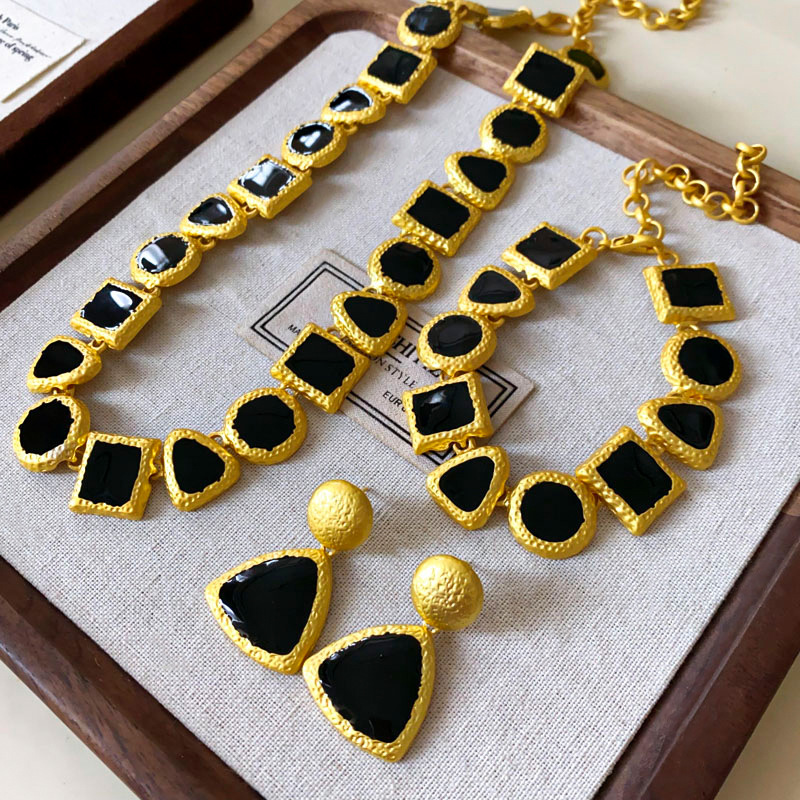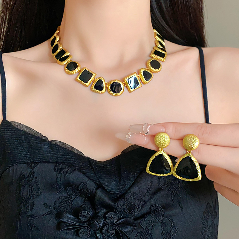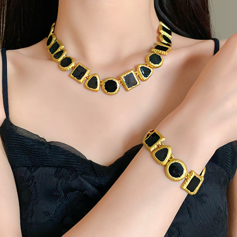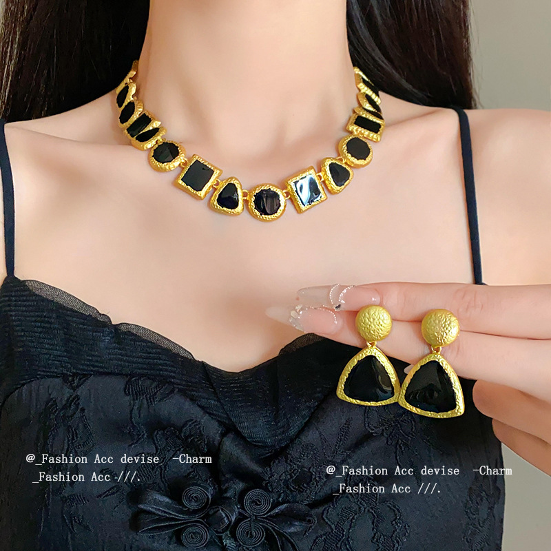 欧美滴油几何拼接项链宫廷风高级感锁骨链设计中古vintage项饰女