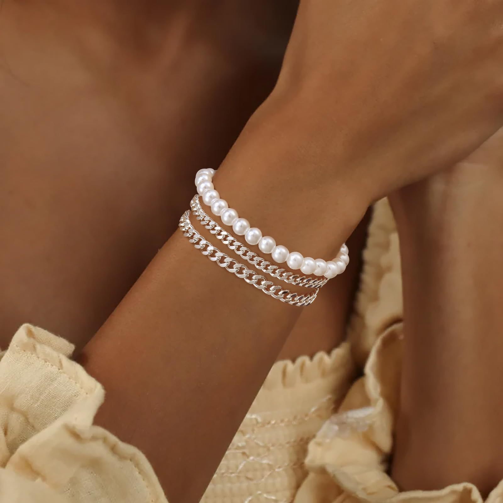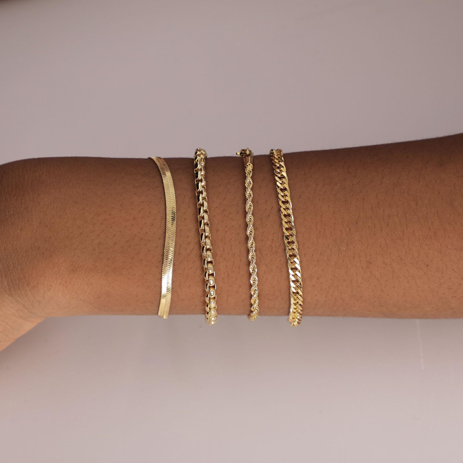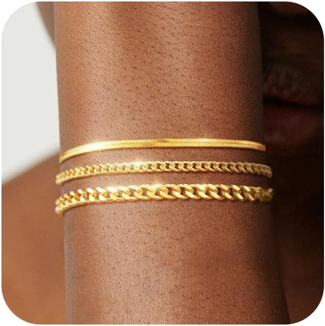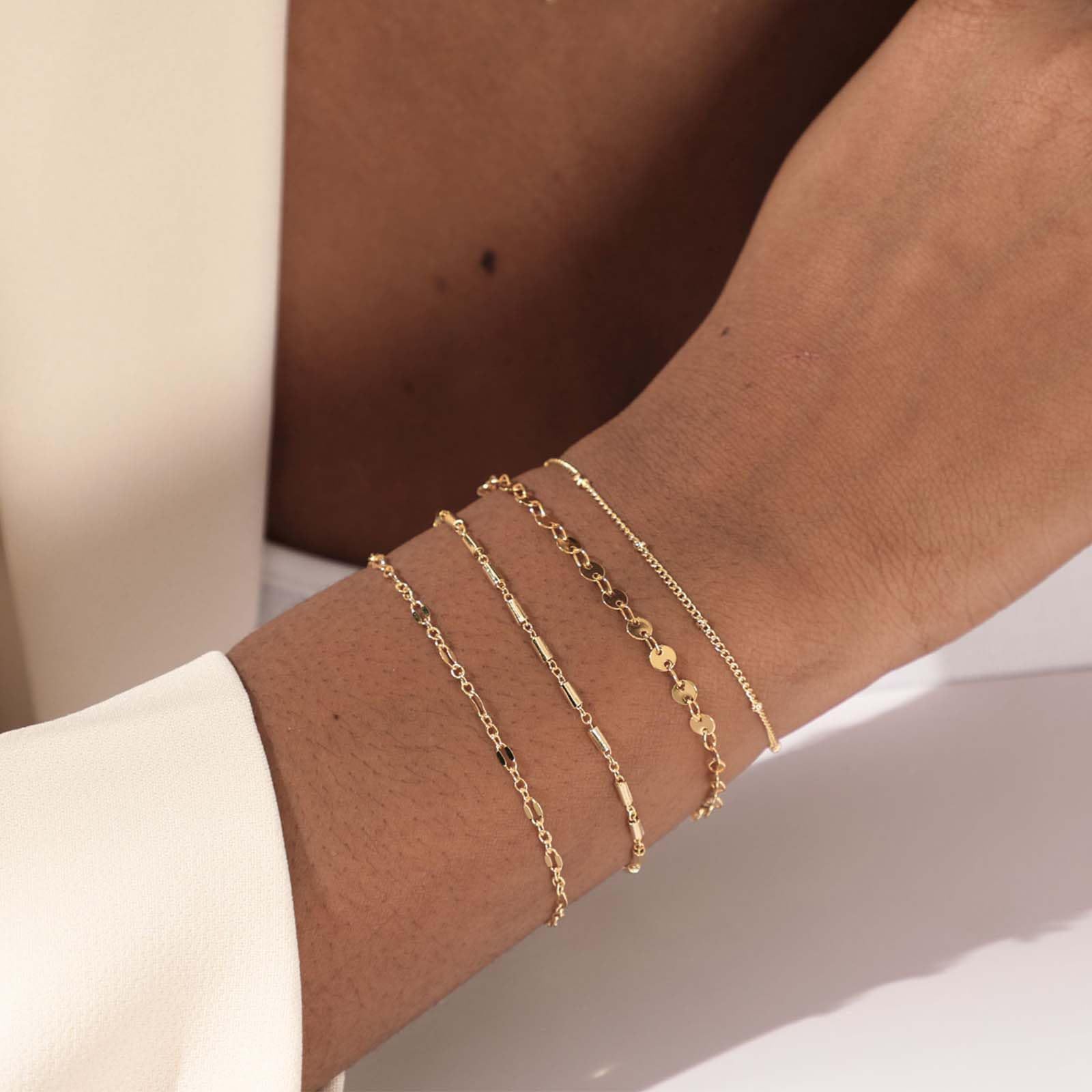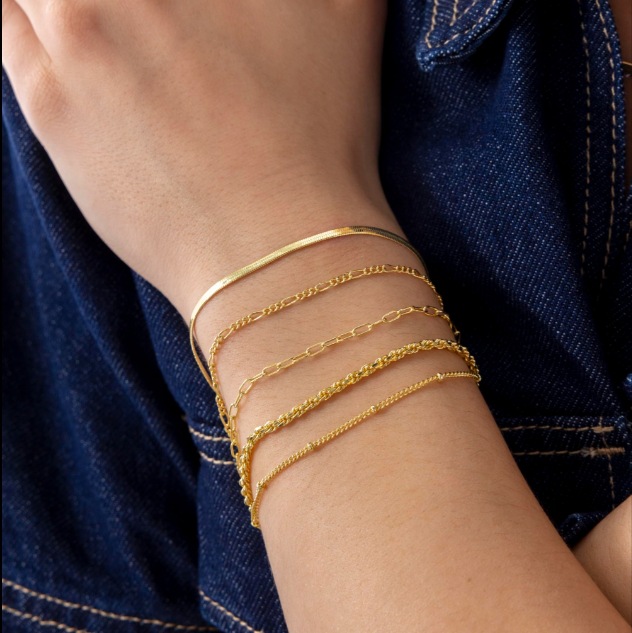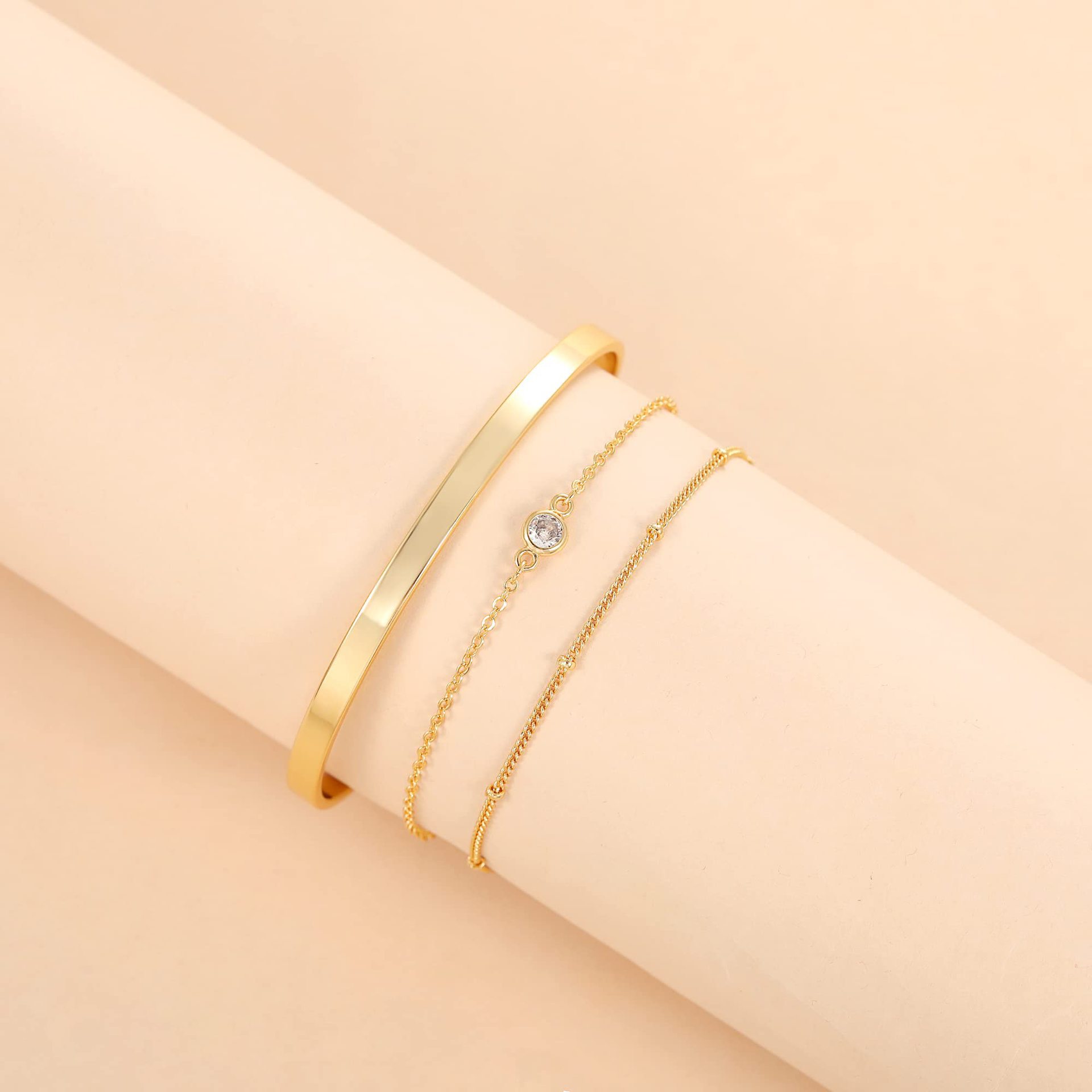 亚马逊新款ins风14k金手镯锆石手链小米珠链条三件套手镯