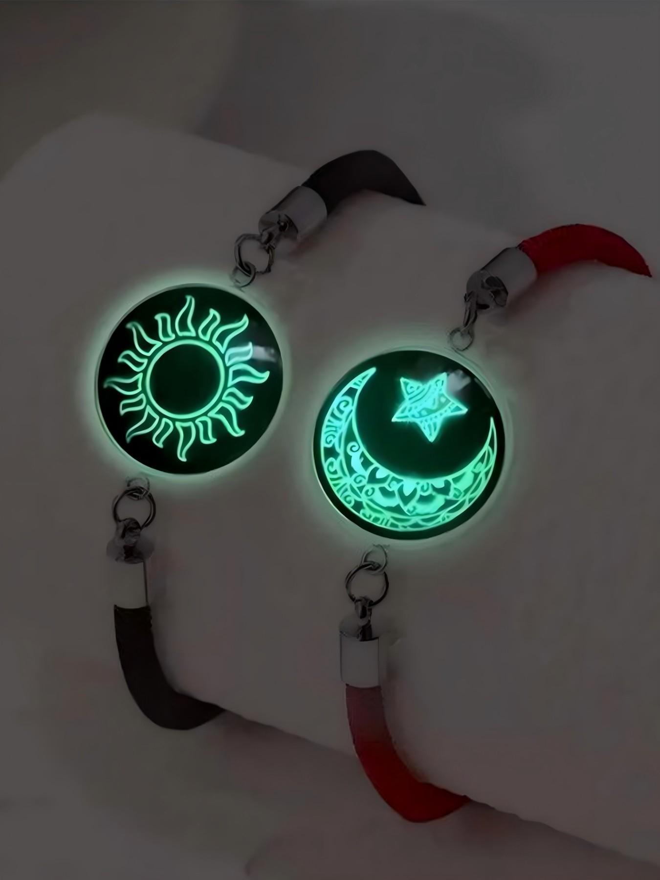 跨境夜光日月恋人时光宝石编织手绳情人节情侣手链手饰品工厂现货