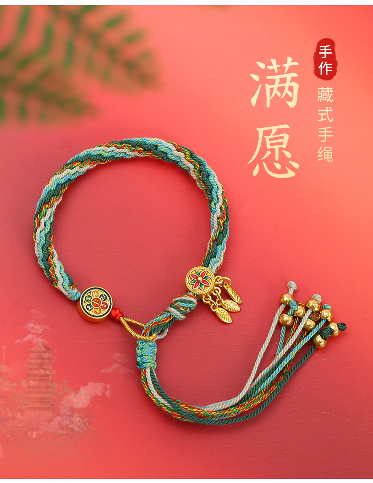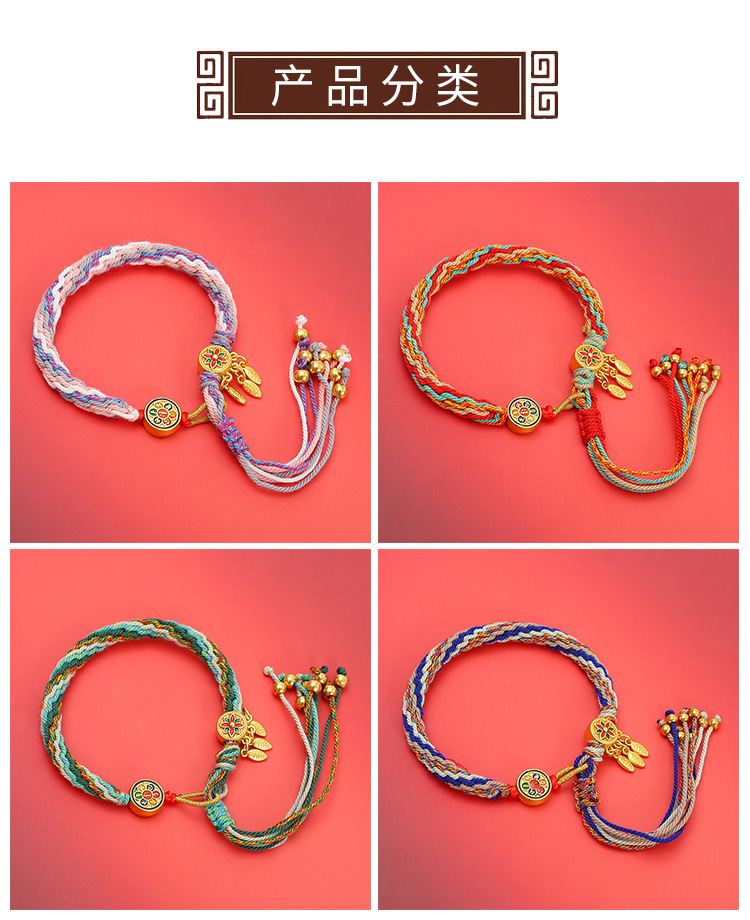手工编织棉线轮回手链民族风藏式六字真言捕梦网手绳手搓棉五彩绳