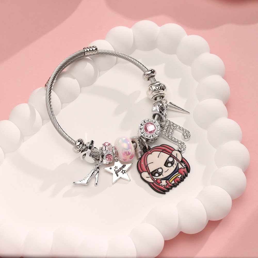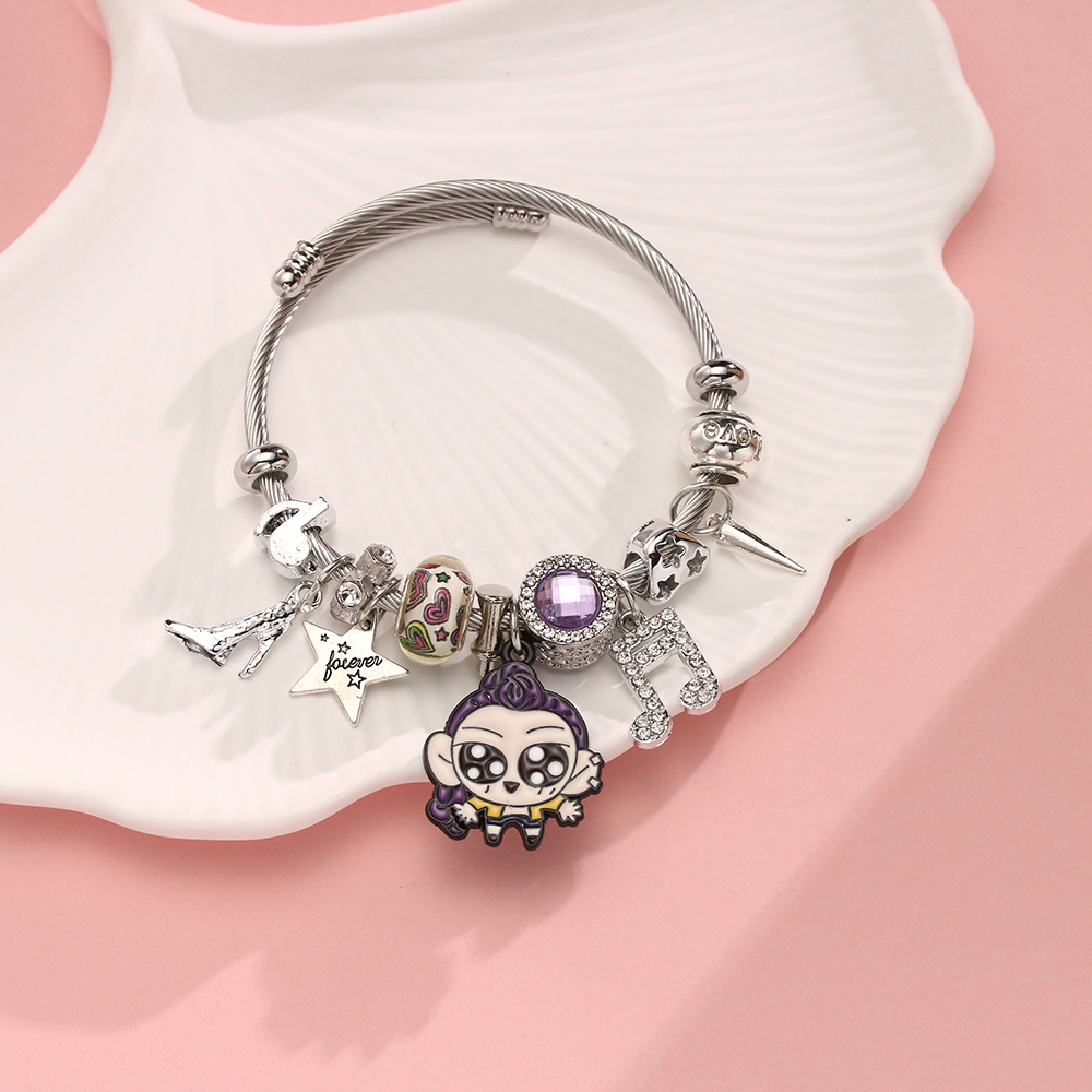 潘家新款K-POP:猎魔女团手镯女卡通镶钻吊坠开口不锈钢手环手串