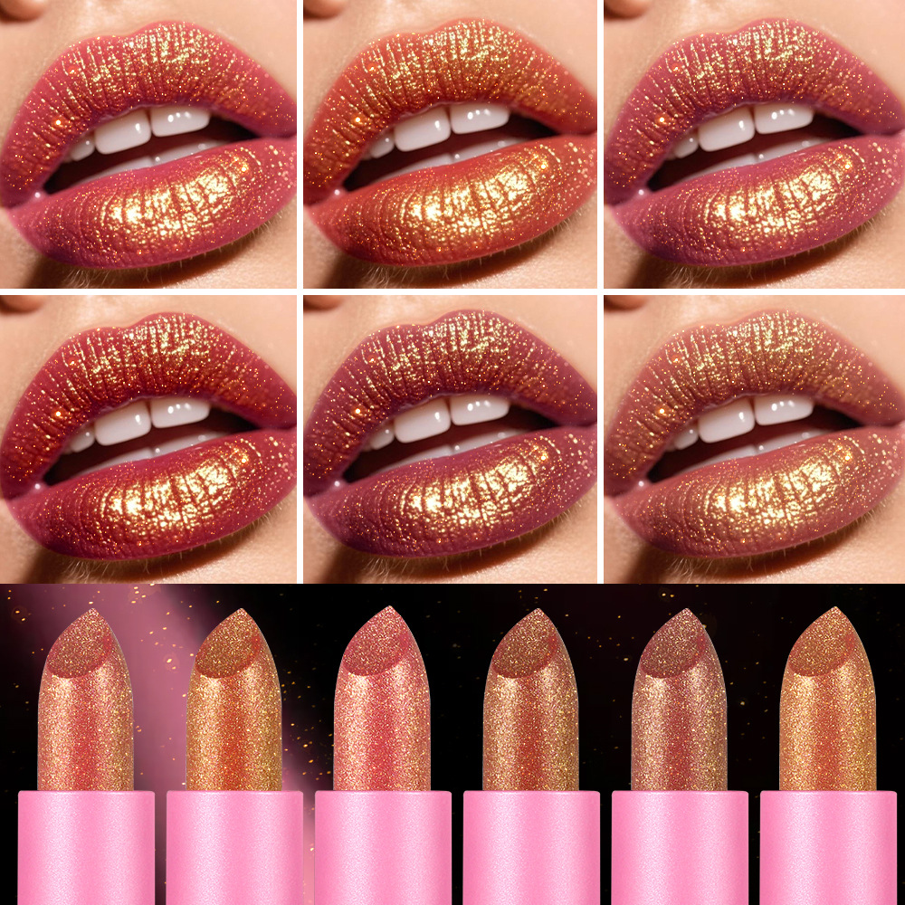 鎏金口红跨境爆款批发珠光炫彩金闪变色口红鎏金璀璨闪耀霓虹口红