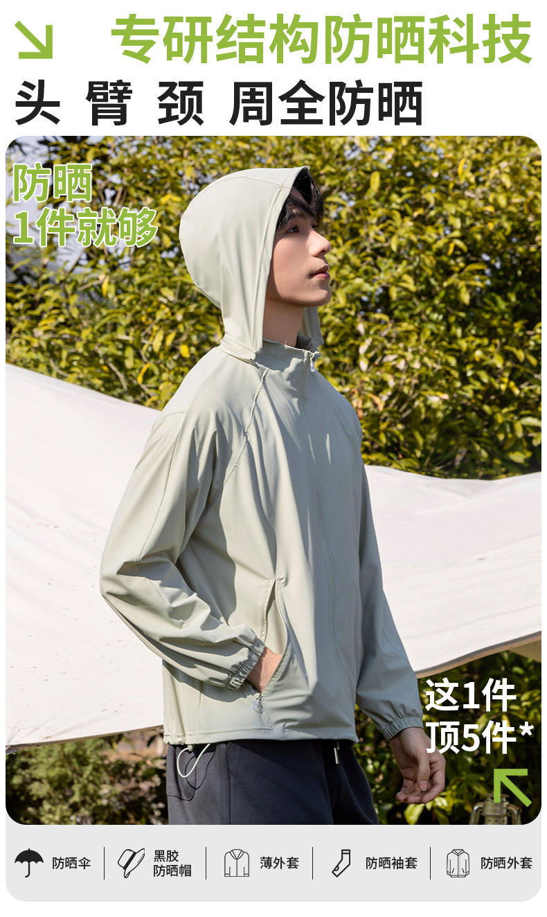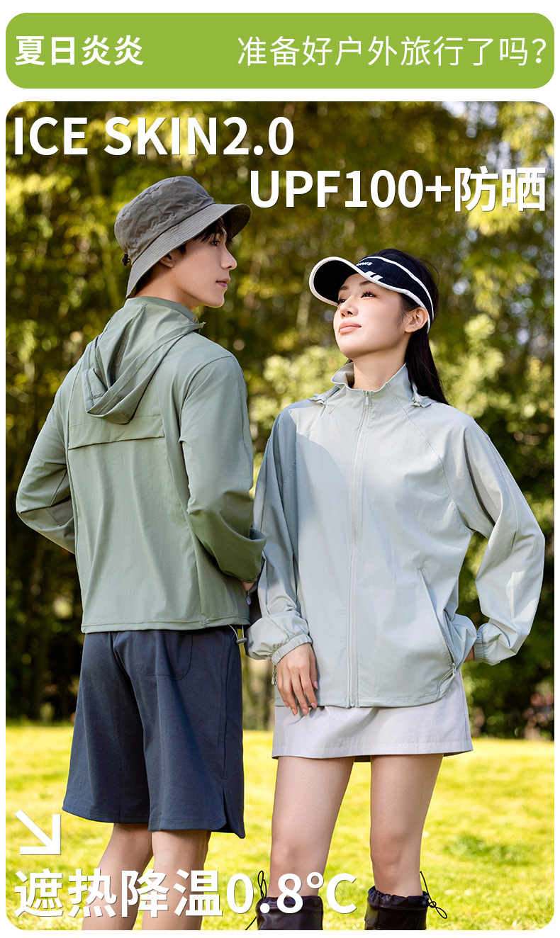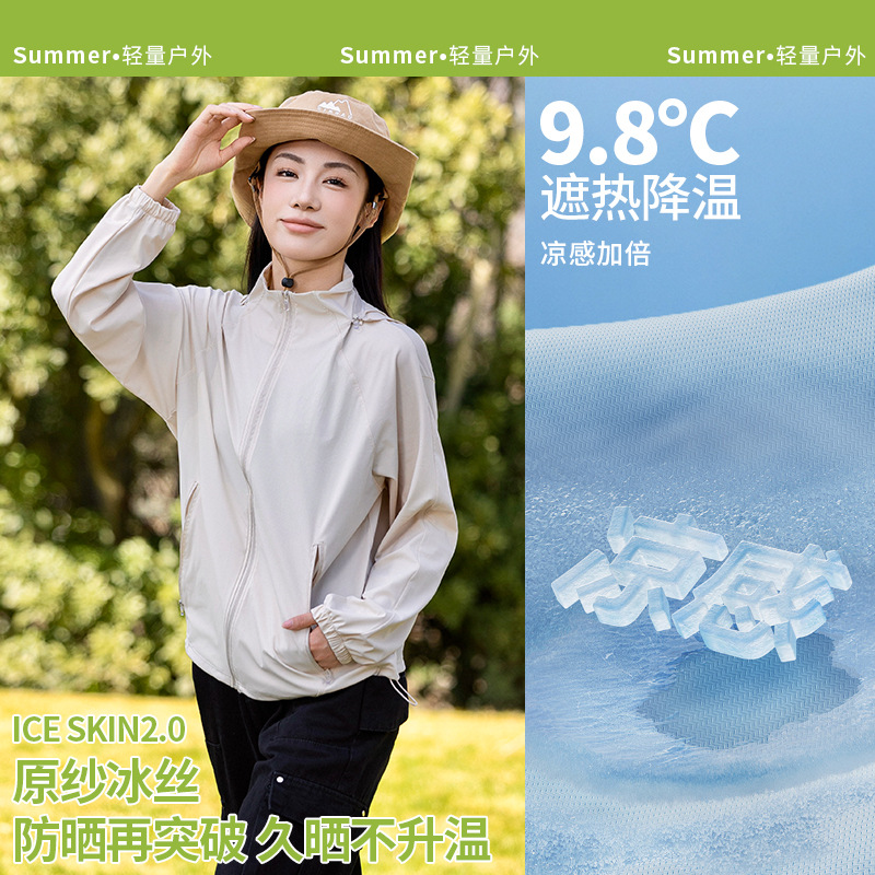 UPF100+连帽防晒服冰丝防晒上衣轻薄透气女夏季户外防紫外线外套