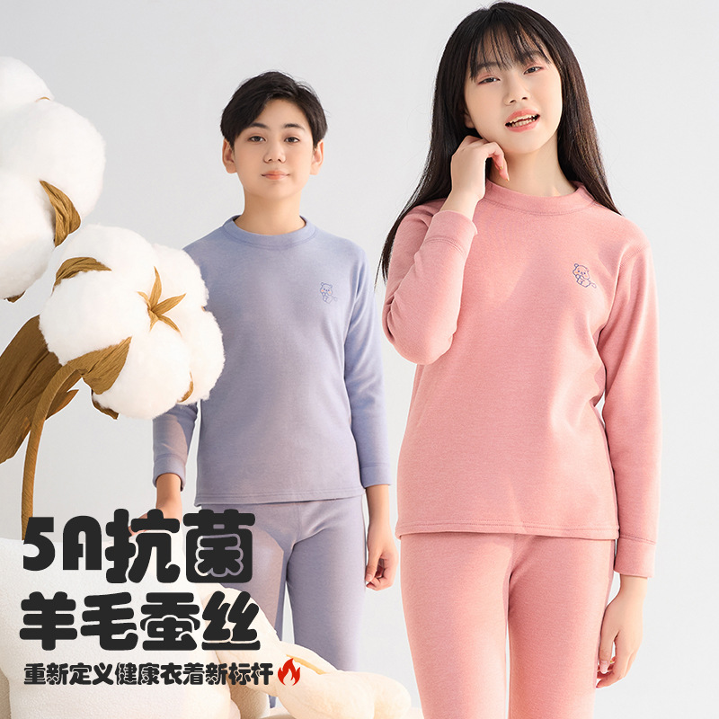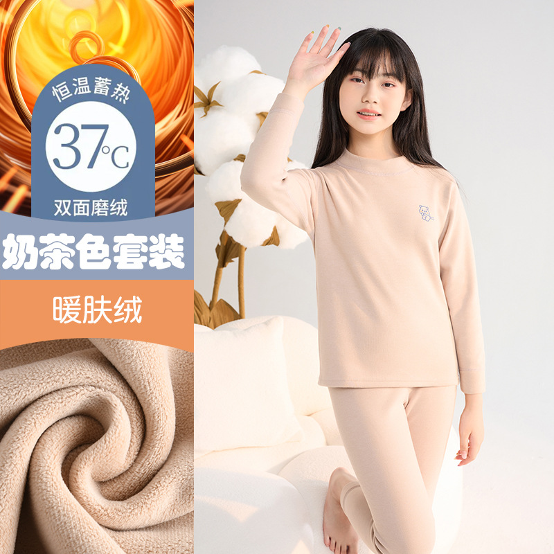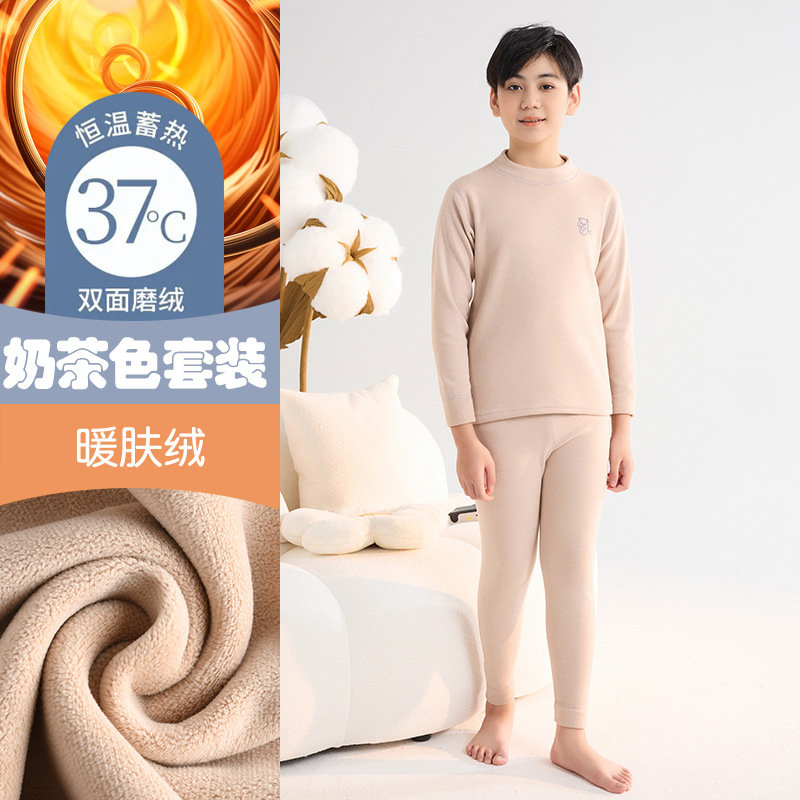 儿童保暖内衣男童套装无骨中大童秋衣秋裤女童保暖衣抗静电德绒