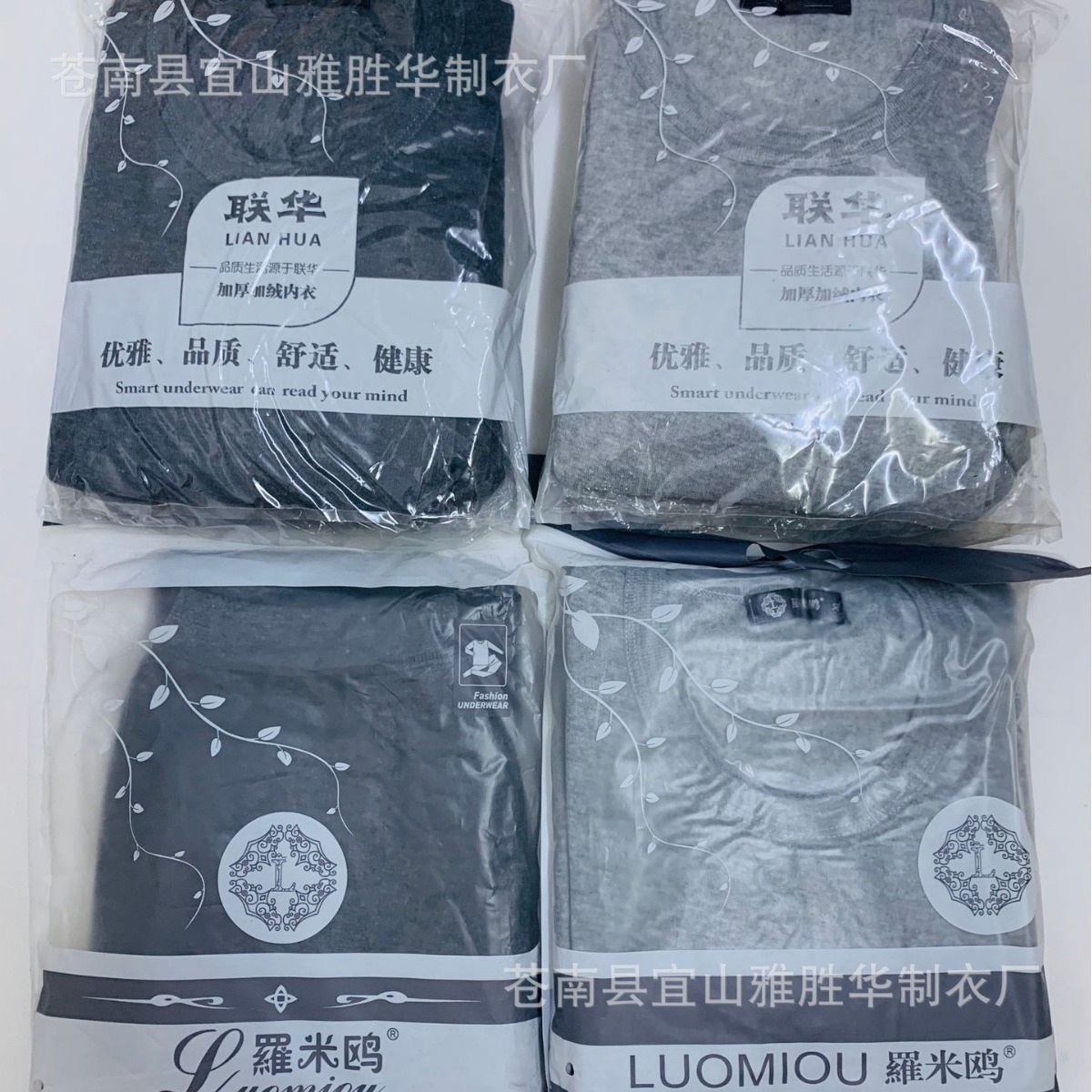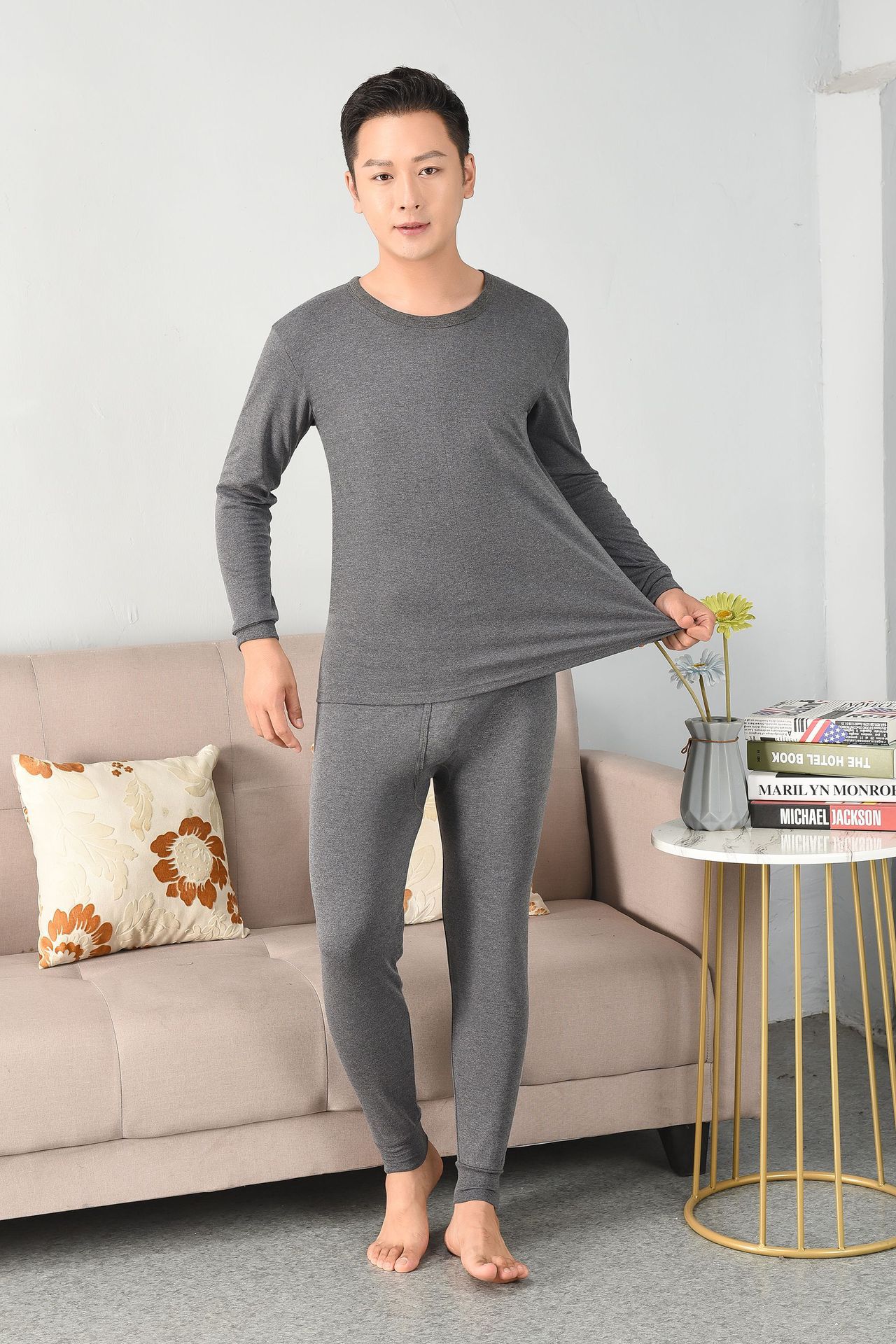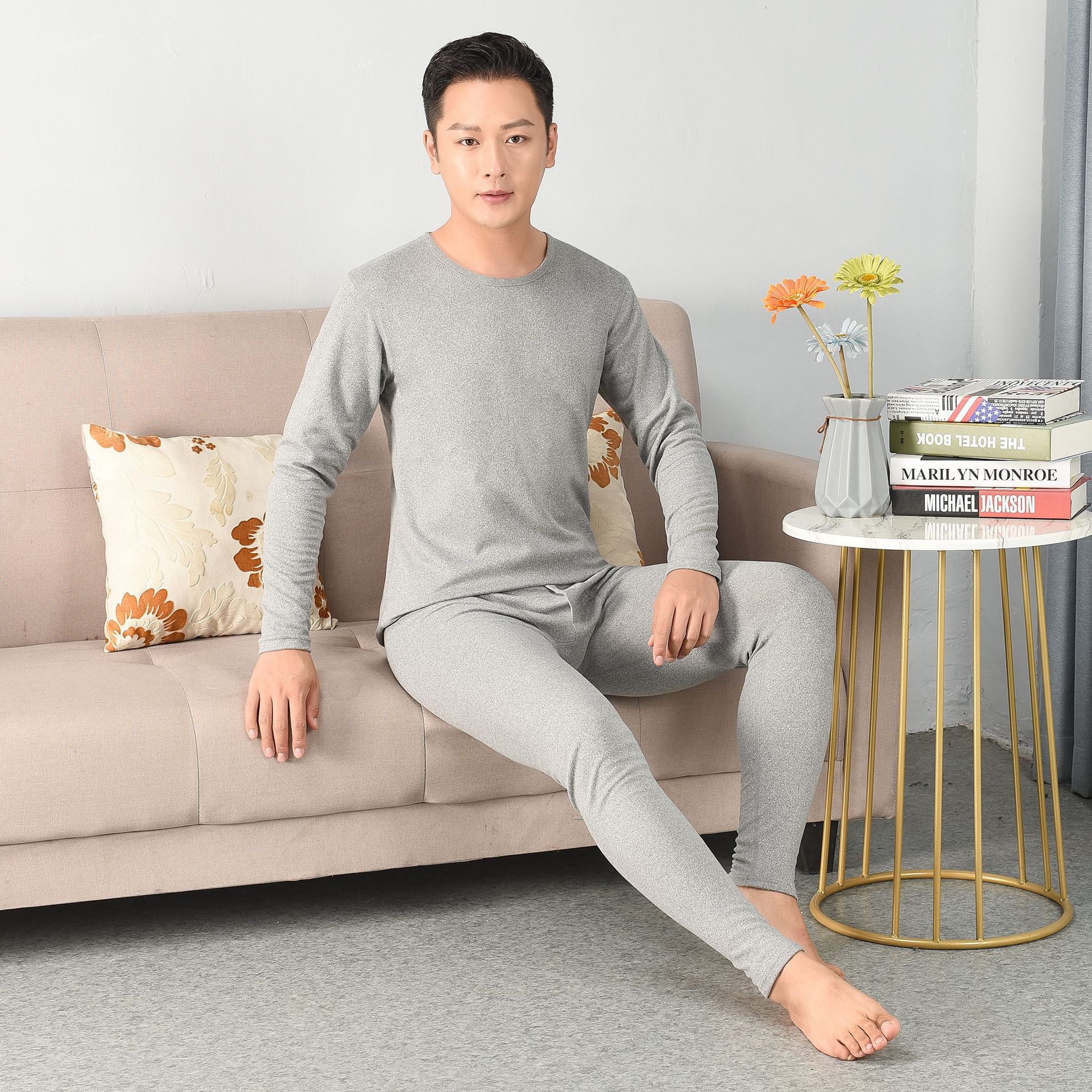 男士加绒保暖内衣套装青少年秋衣秋裤休闲加厚纯色秋冬款圆领打底