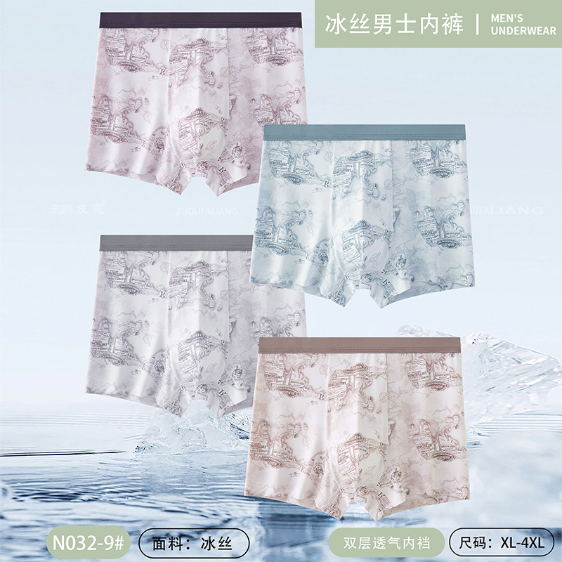 夏季冰丝男士内裤3D男士冰丝锦纶时尚平角内裤优洲正规码系列