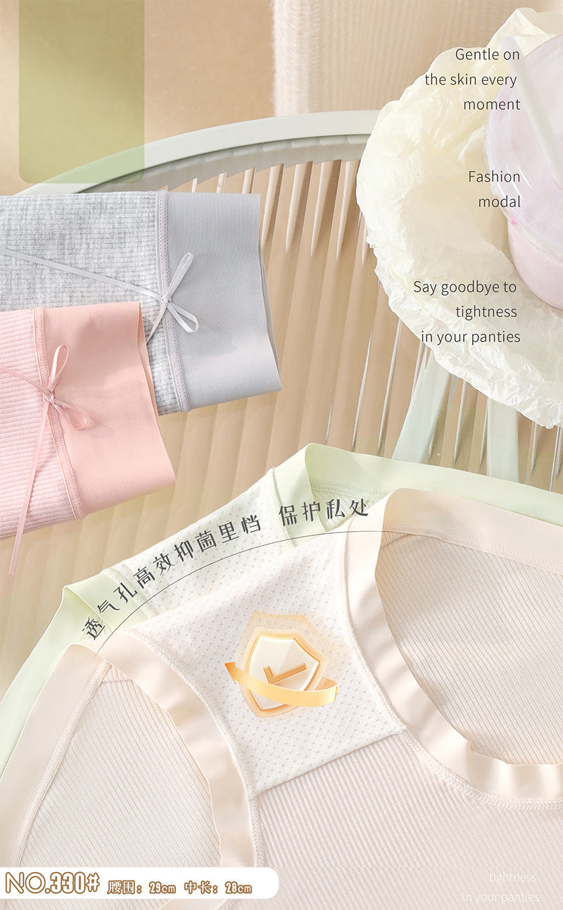 90-135少女宽腰莫代尔螺纹MD蝴蝶结装饰透气女士三角内裤330/430