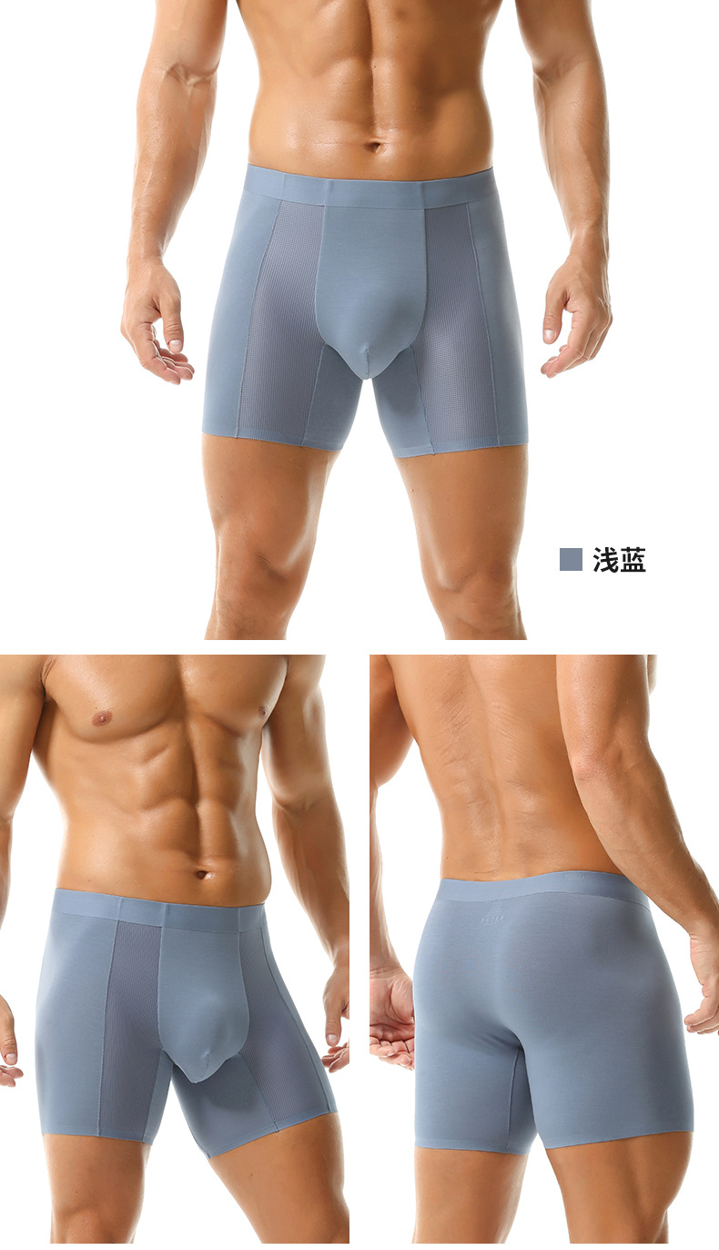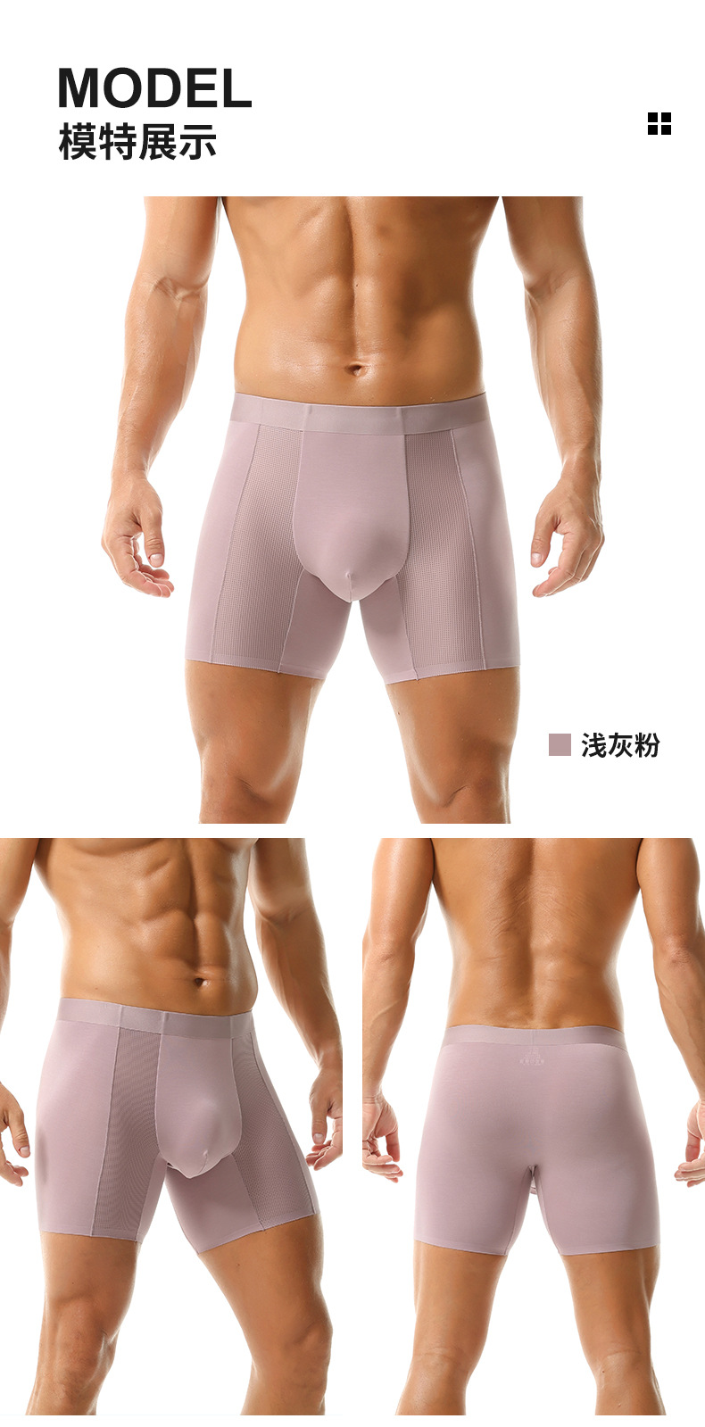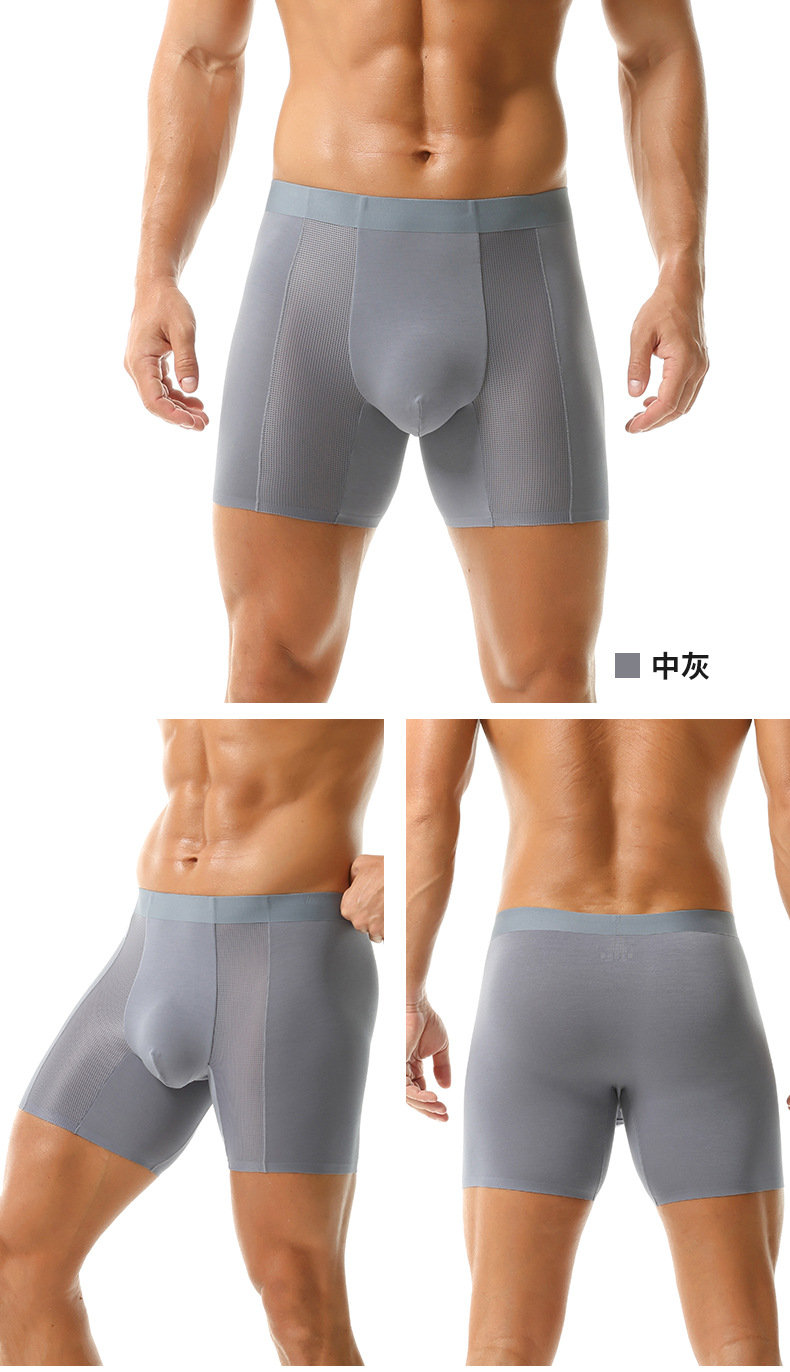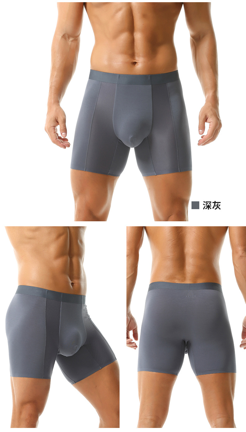 长款纯色夏季无痕男士四角短裤 运动柔软网眼透气莫代尔平角裤