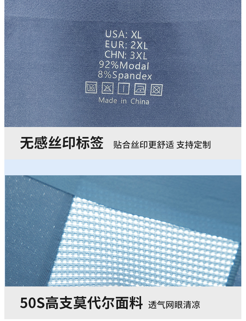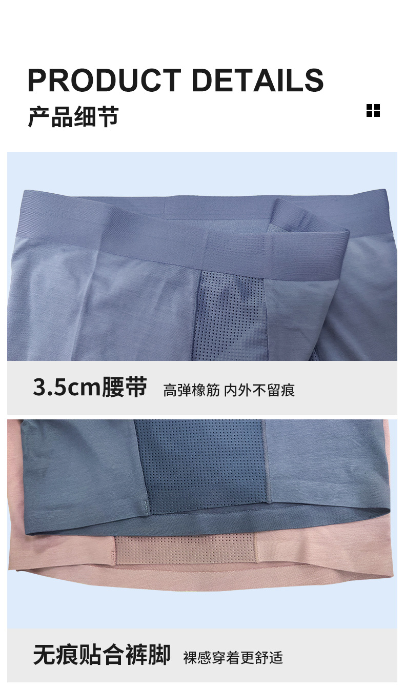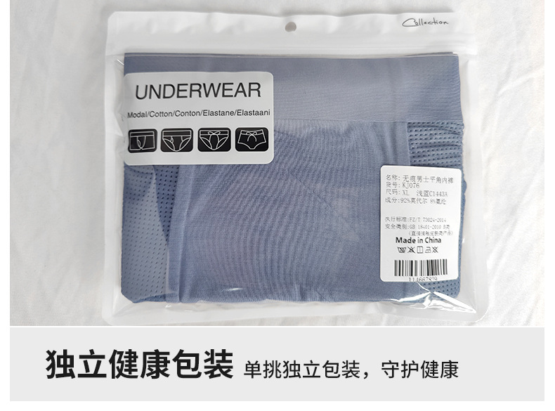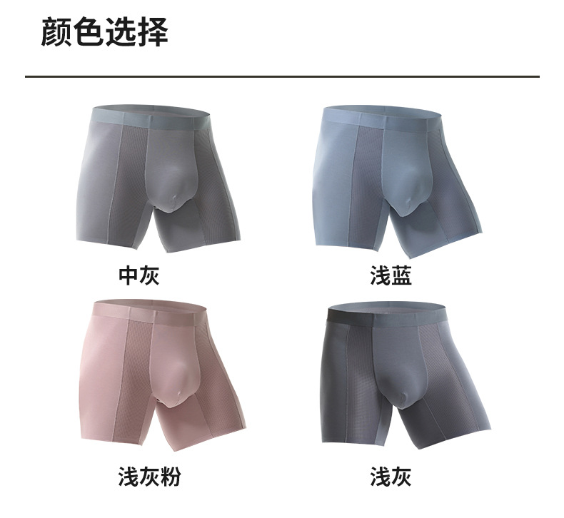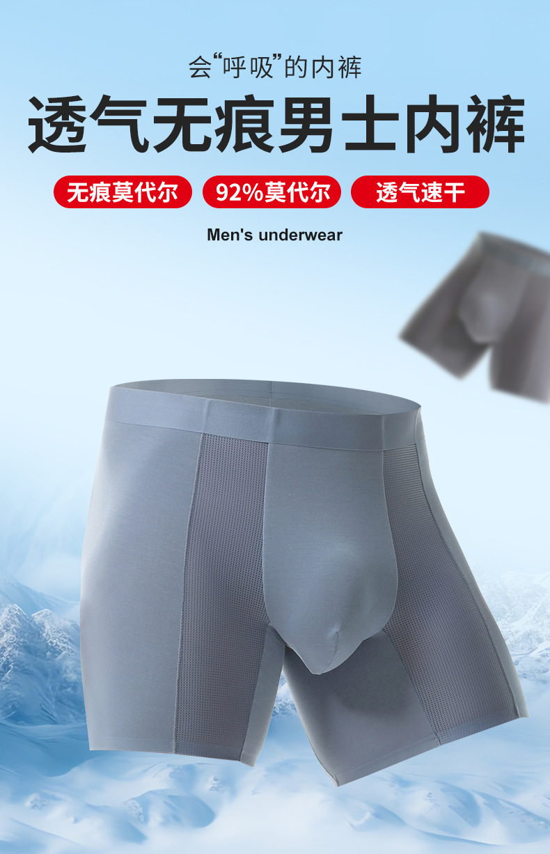 长款纯色夏季无痕男士四角短裤 运动柔软网眼透气莫代尔平角裤