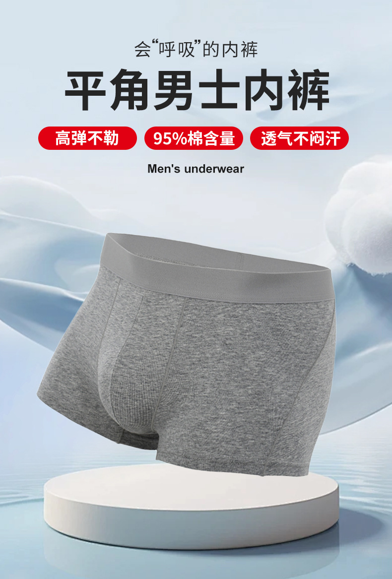 透气肥佬裤外贸高弹纯棉内裤男夏 高档吸汗平角裤大码纯棉内裤男