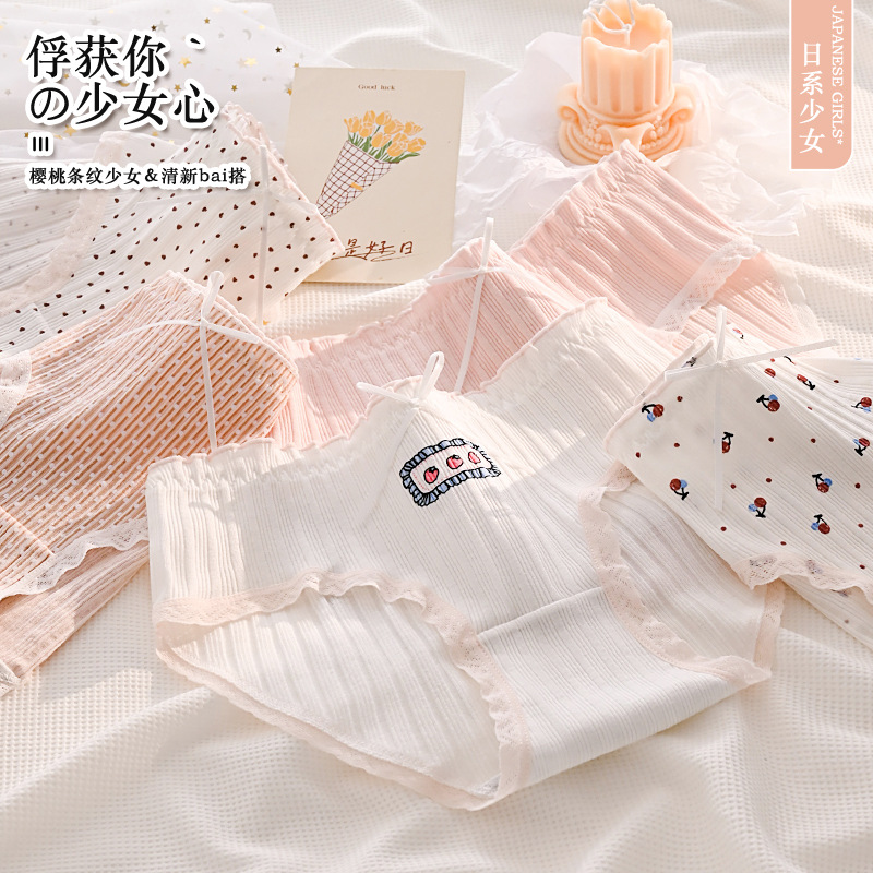 可爱草莓蝴蝶结内裤女印花中腰少女日系学生三角裤包臀薄款透气