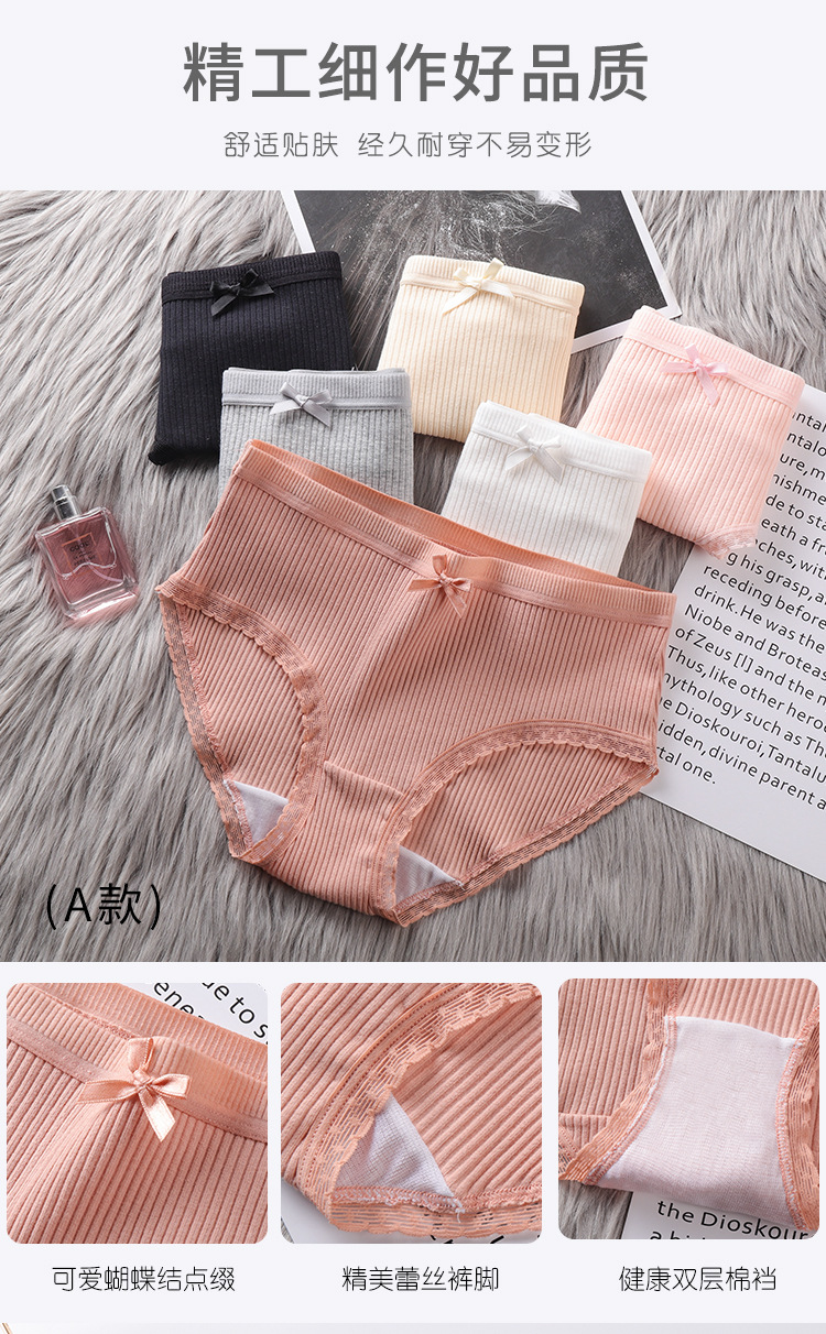 东南亚跨境电商女士内裤女学生韩版螺纹中腰少女性感可爱大码裤头