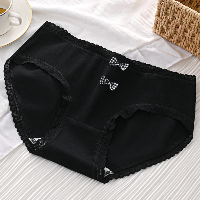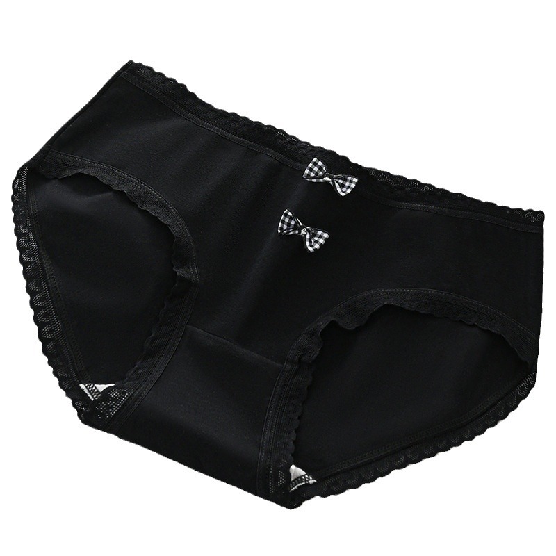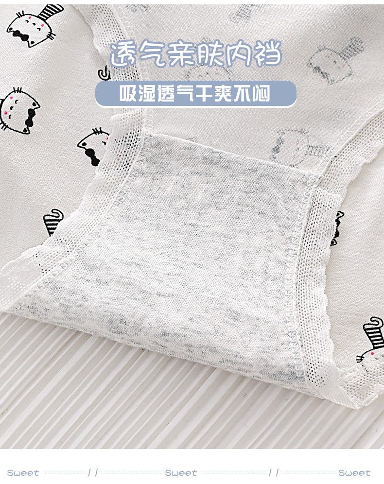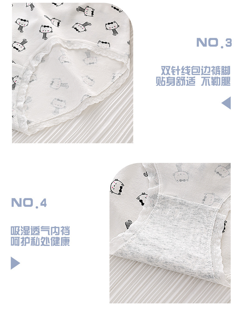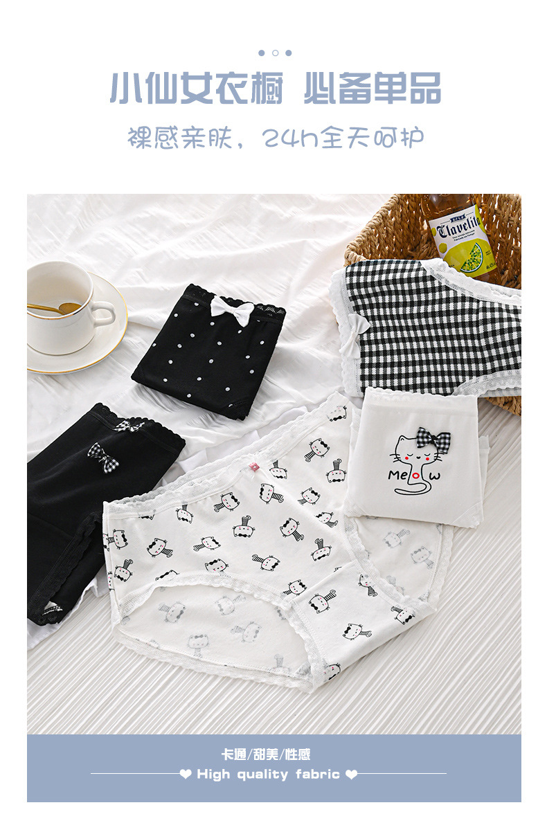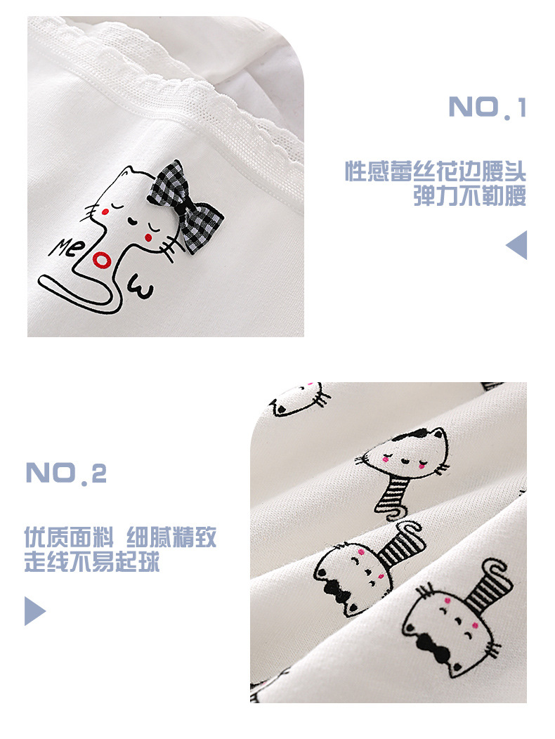 女士蕾丝边中腰透气内裤女日系可爱甜美喵咪少女学生三角短裤头