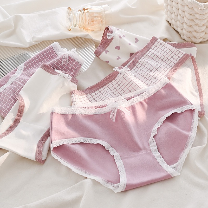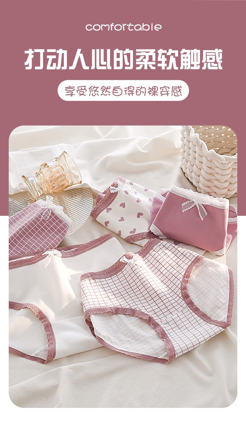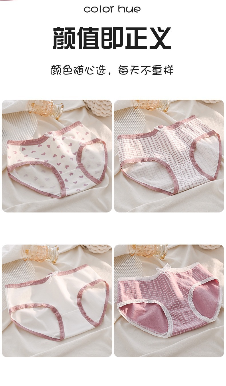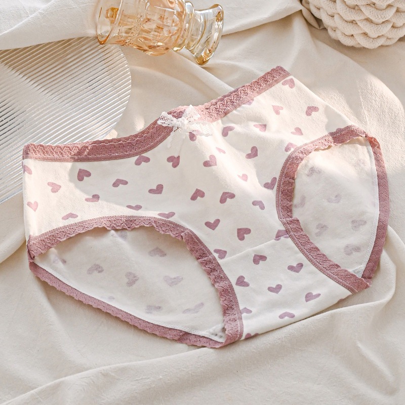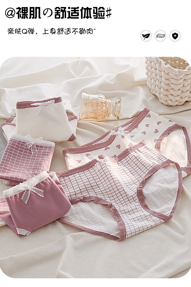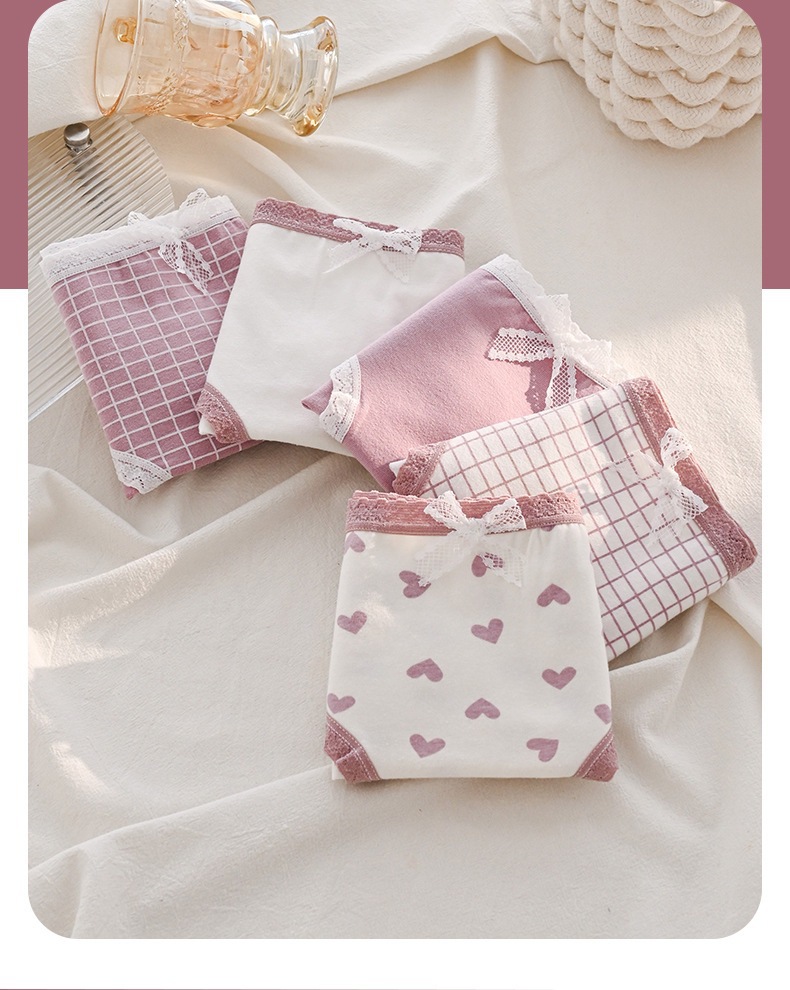 香芋紫爱心学生甜美少女内裤女日系蝴蝶结舒适透气中腰女士三角裤