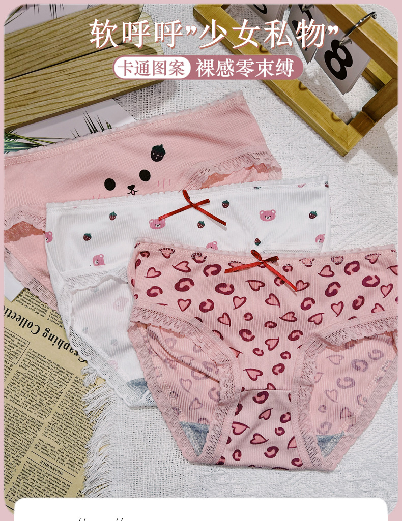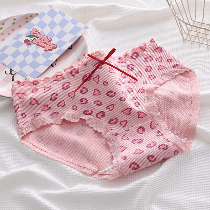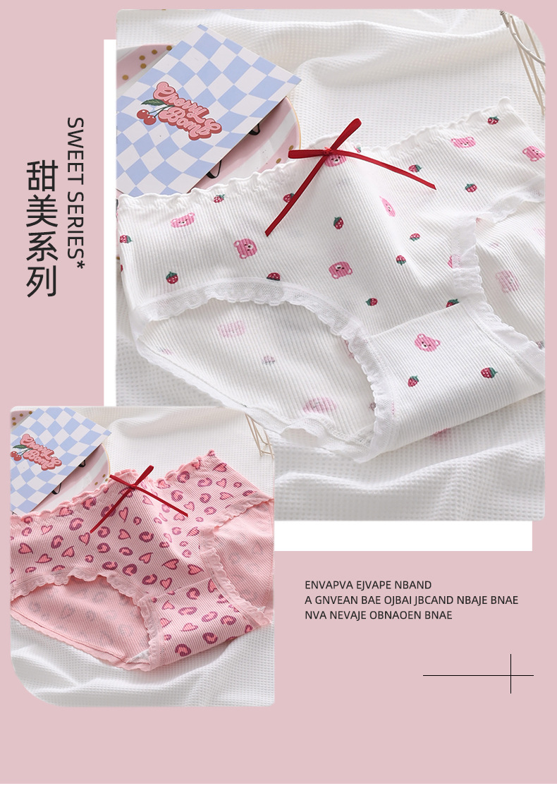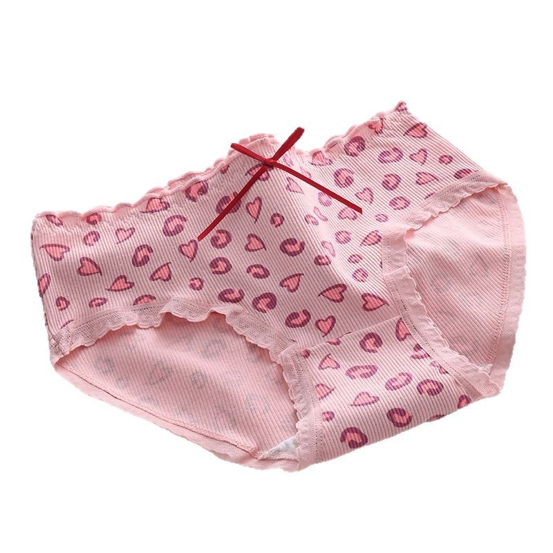 跨境粉色碎花中腰透气内裤女日系可爱甜美印花少女学生三角短裤