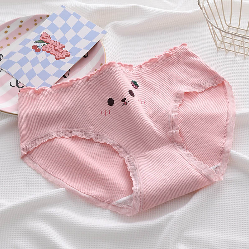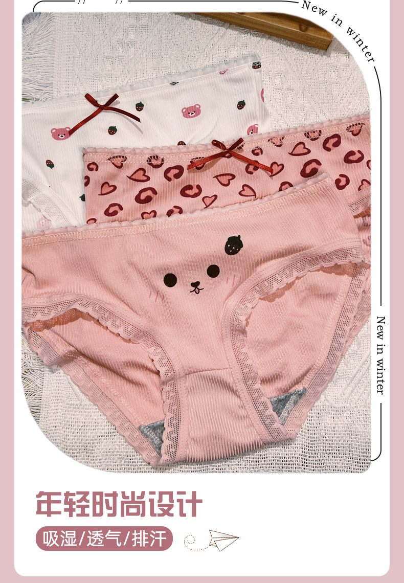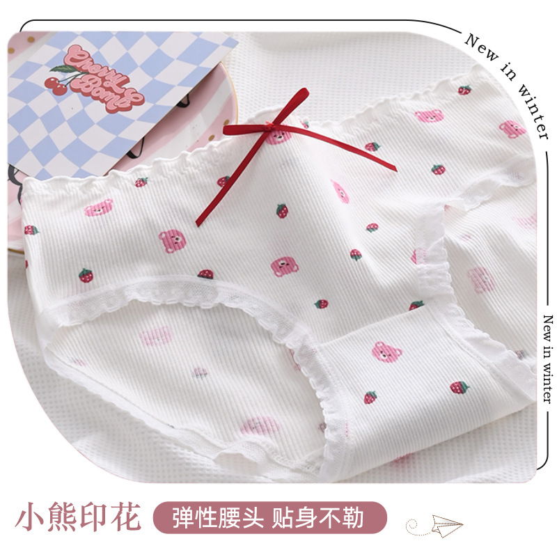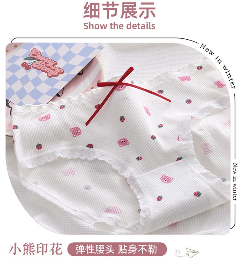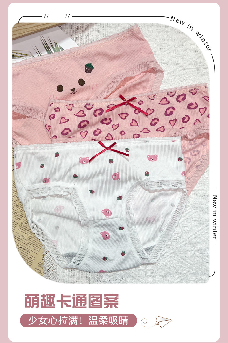 跨境粉色碎花中腰透气内裤女日系可爱甜美印花少女学生三角短裤