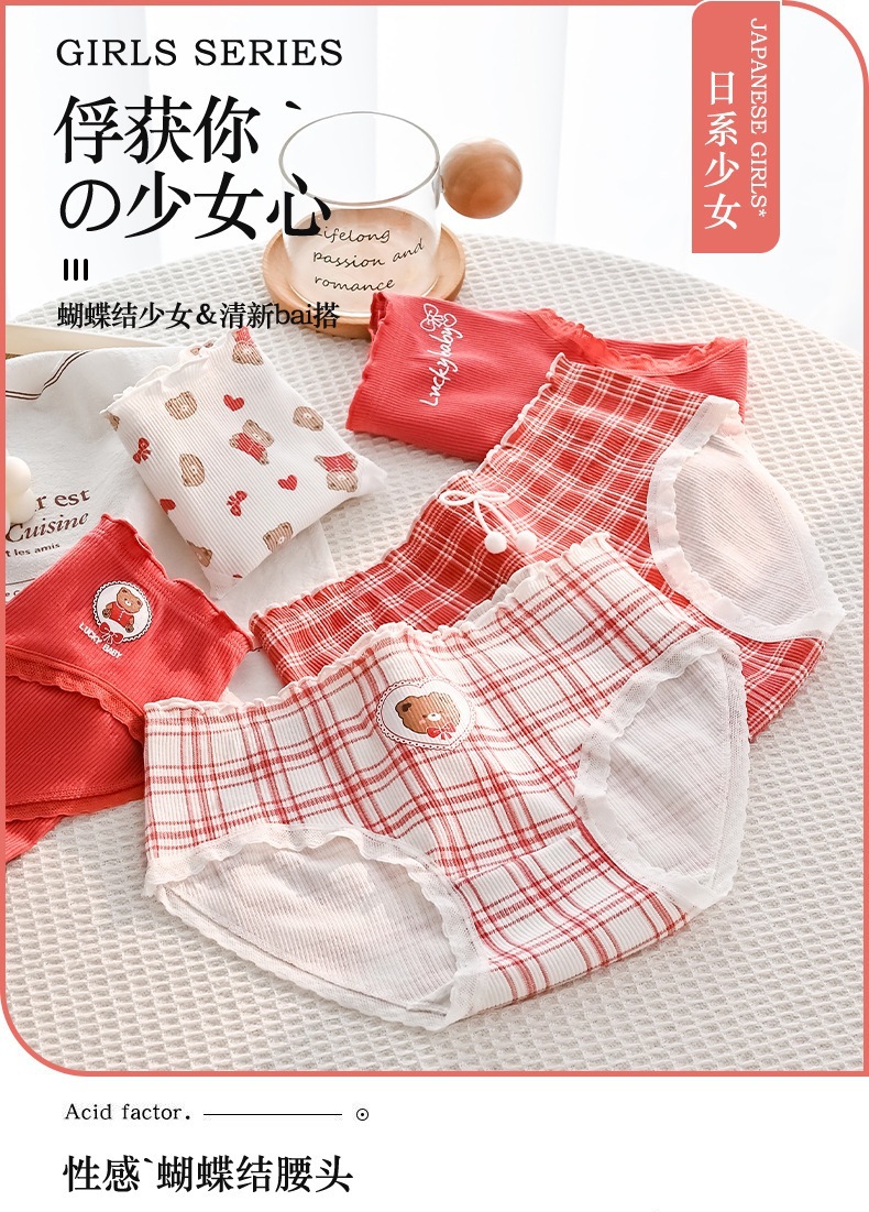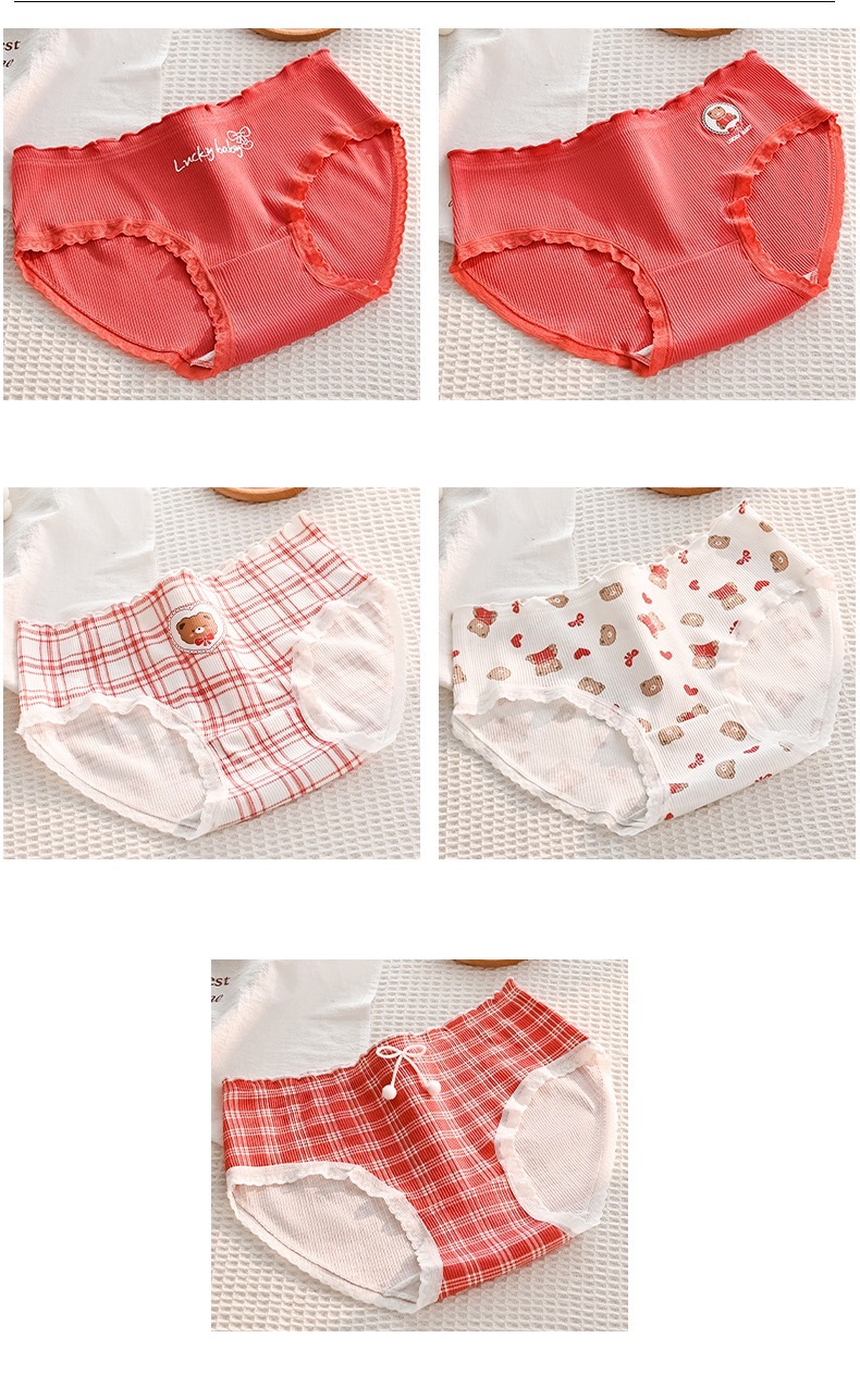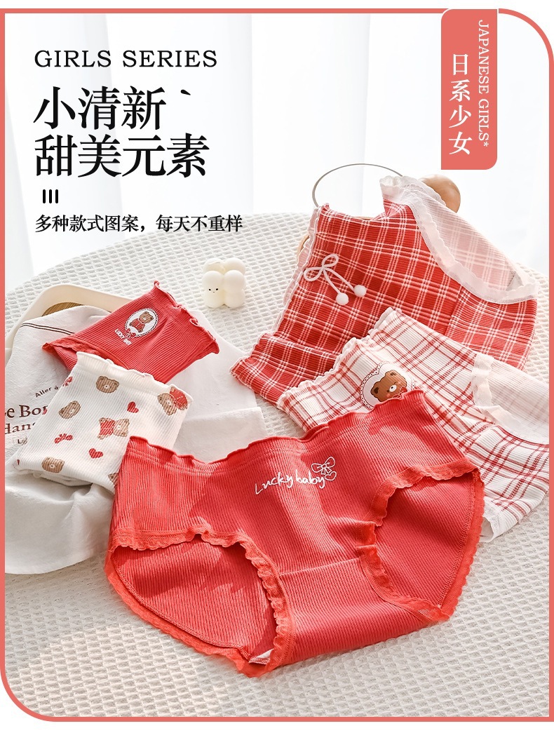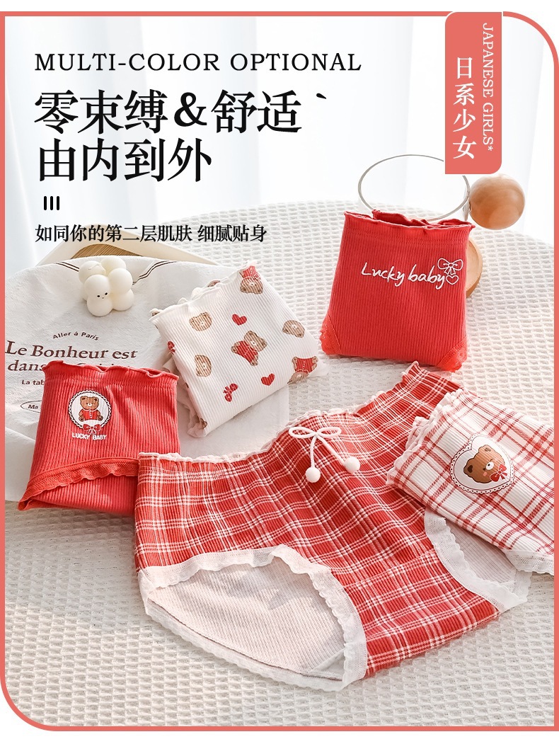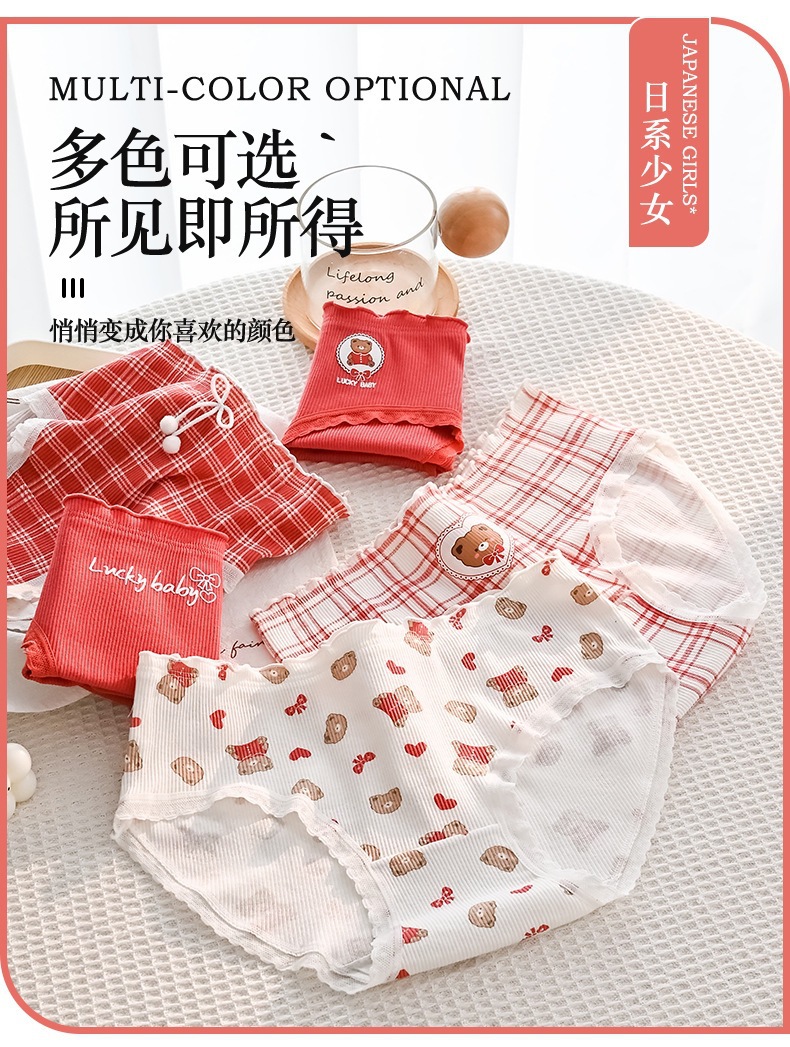 可爱幸运熊中腰少女红色喜庆本命年内裤女士亲肤透气舒适三角裤