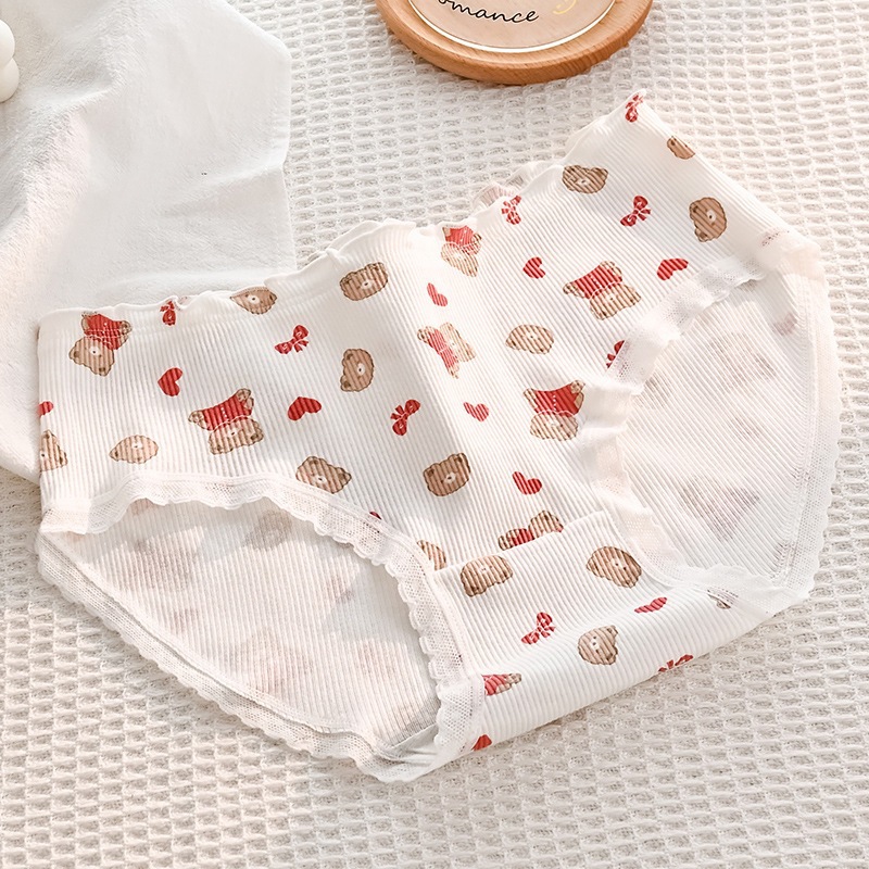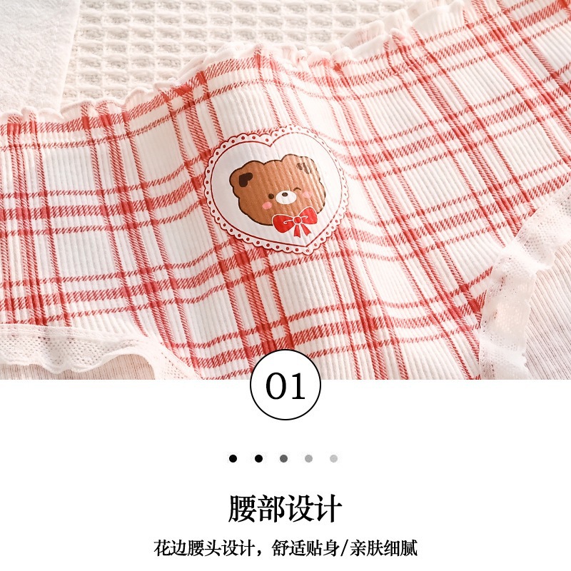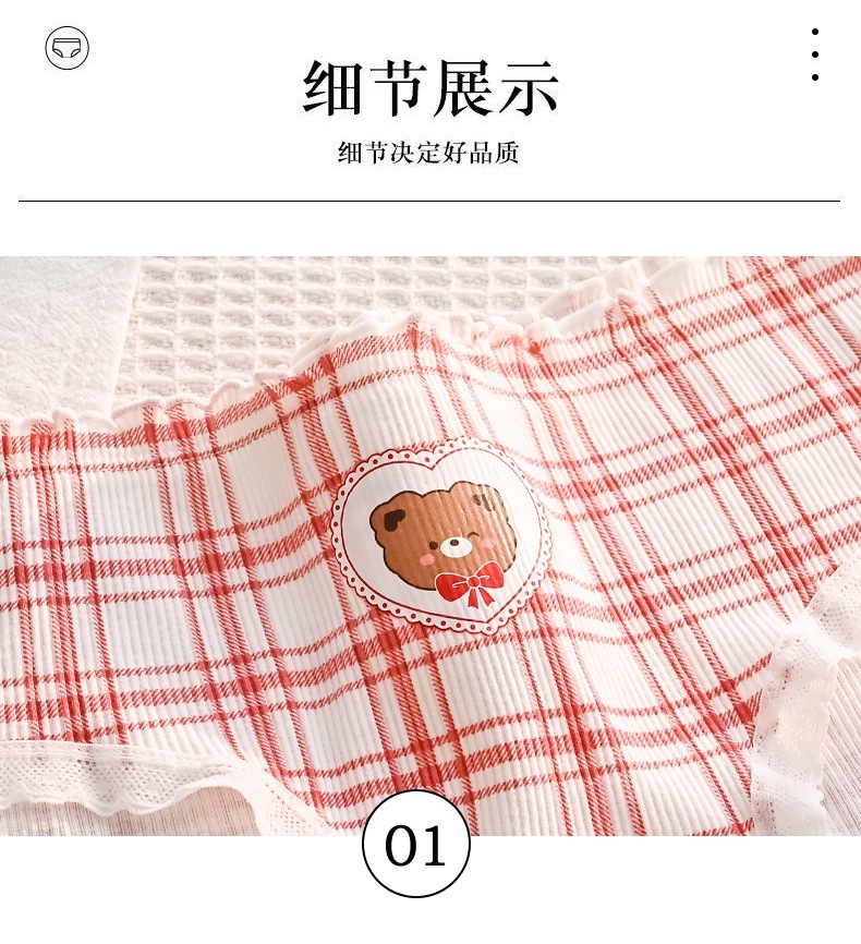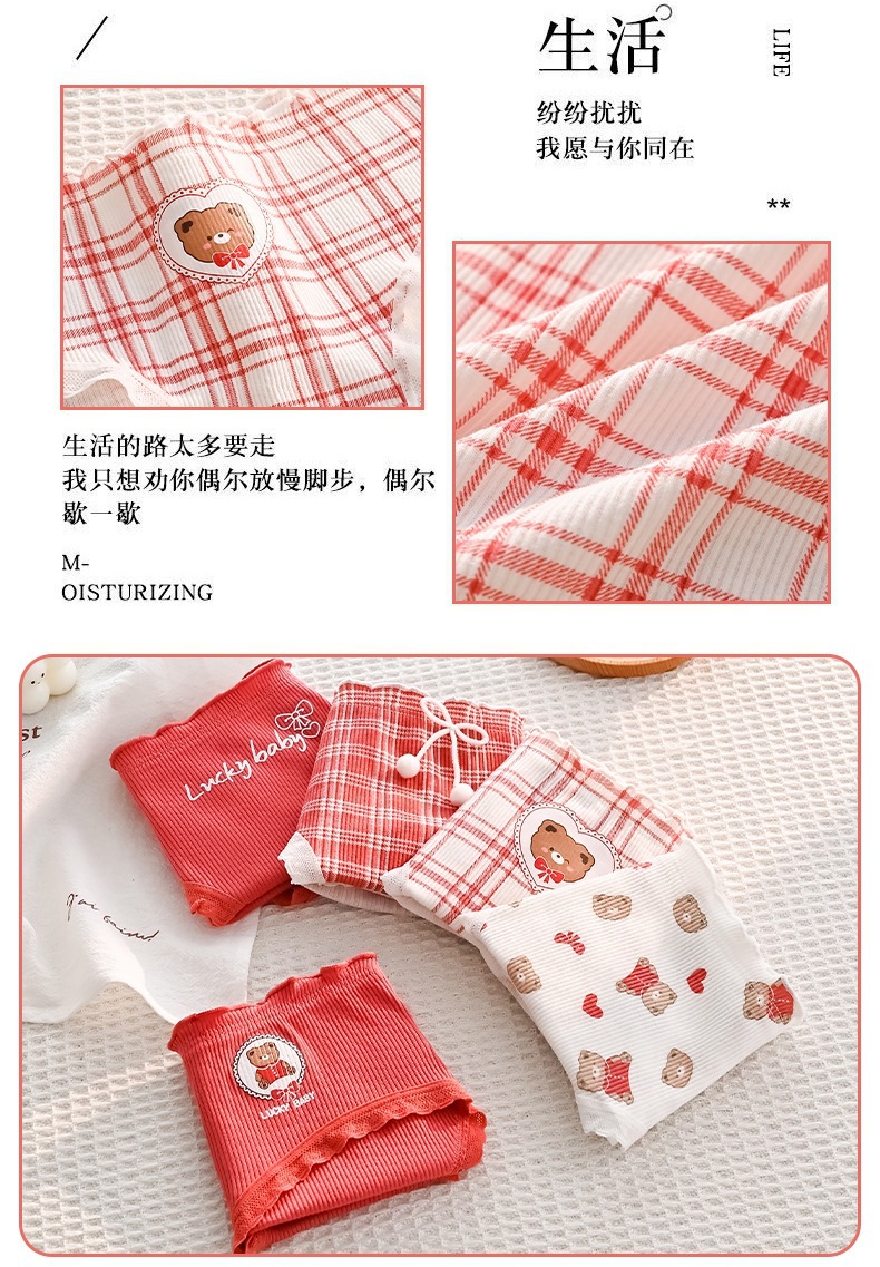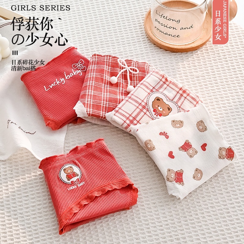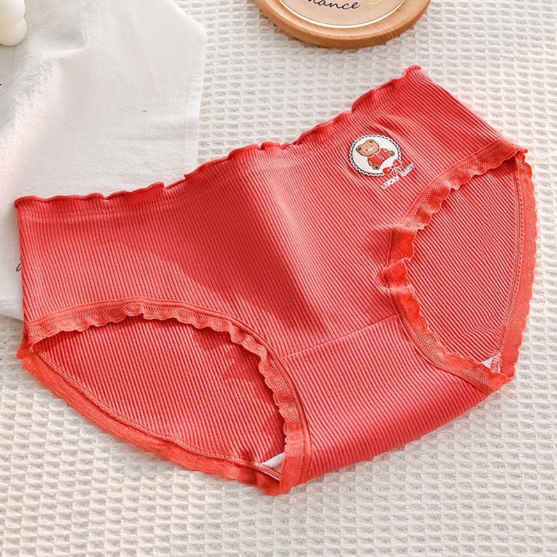 可爱幸运熊中腰少女红色喜庆本命年内裤女士亲肤透气舒适三角裤