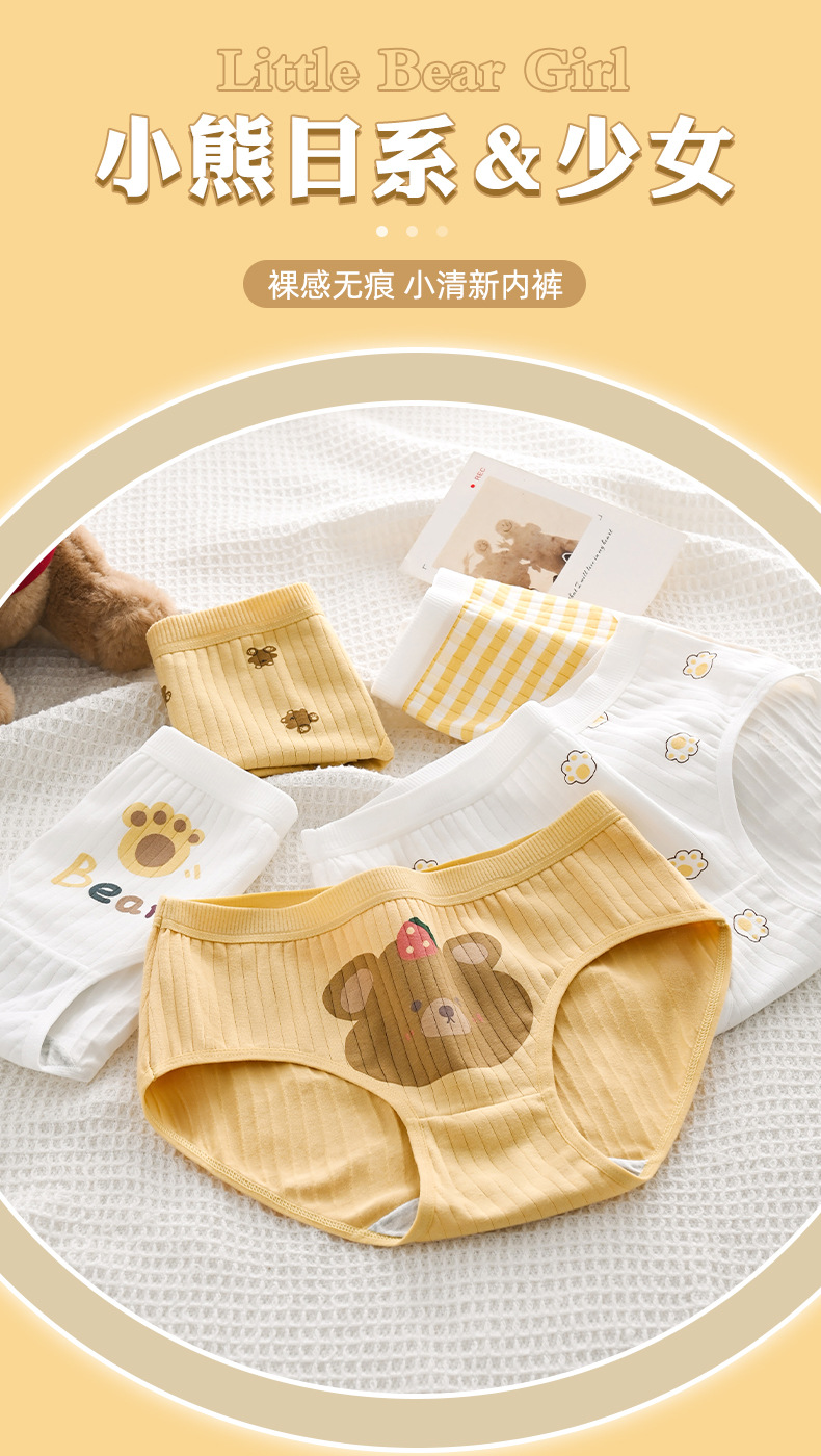 内裤女士可爱新款小熊卡通舒适透气中腰日系少女生包臀三角短裤