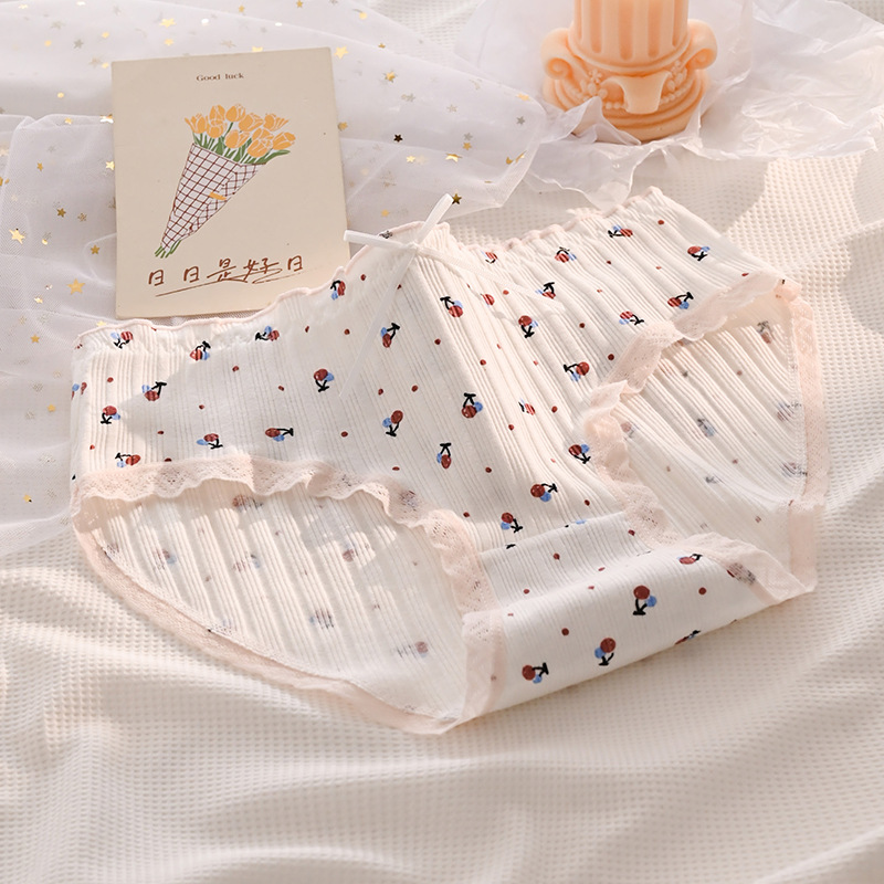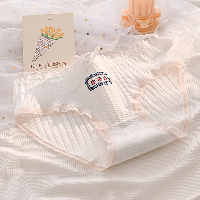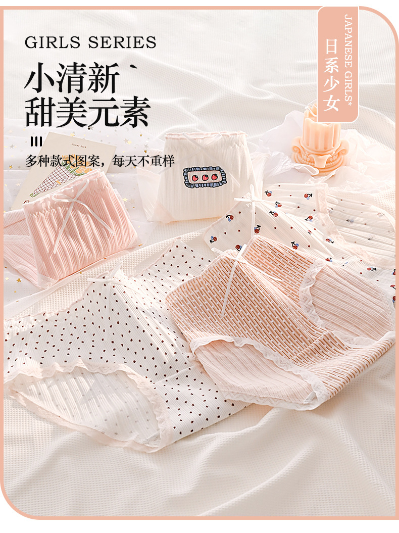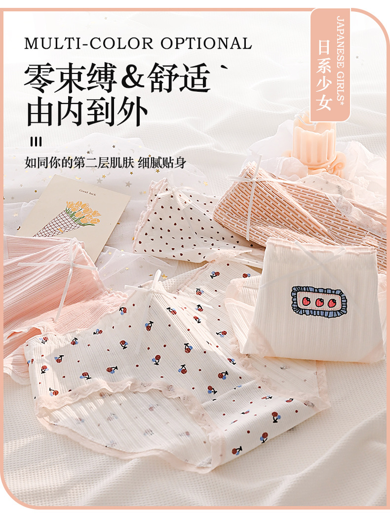 女士内裤日系透气舒适三角可爱卡通草莓蝴蝶结少女中腰学生内裤女
